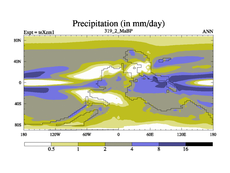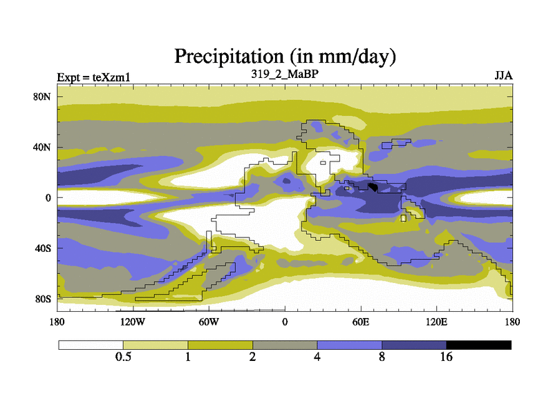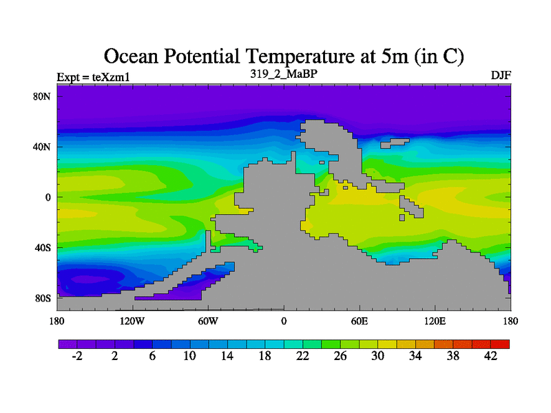 This is the 319.2 Ma simulation using the Scotese palaeogeographies. Extension of the tex[f..j] series.
