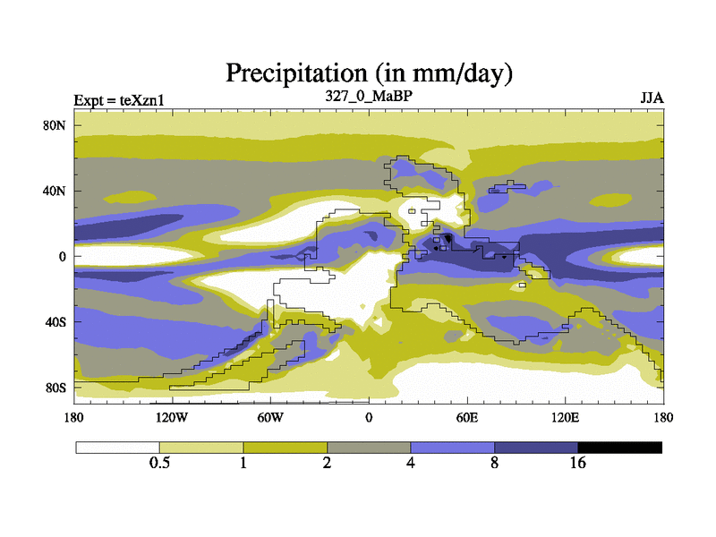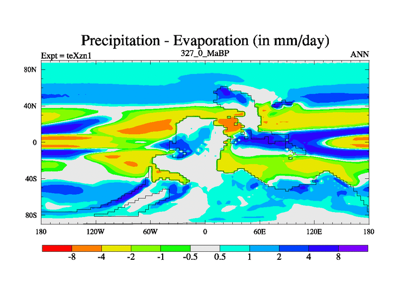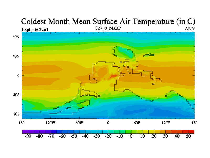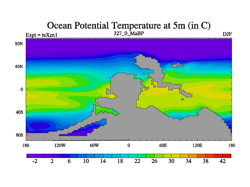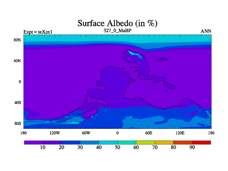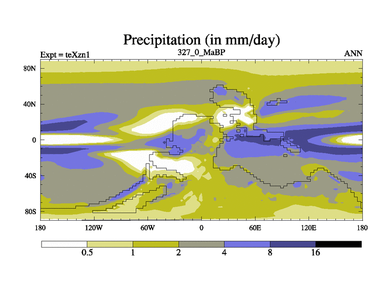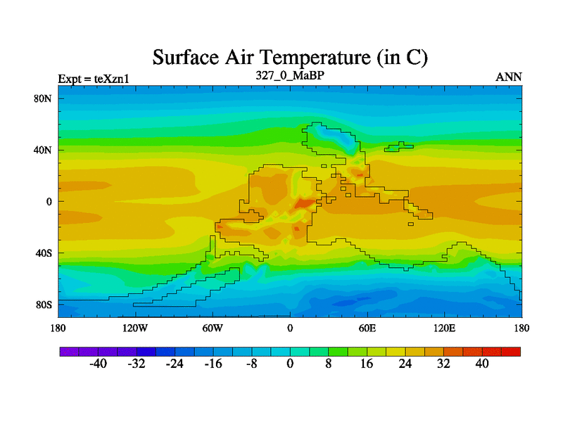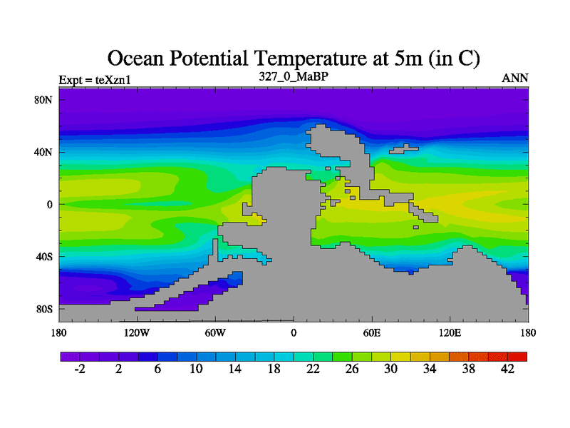 This is the 327.0 Ma simulation using the Scotese palaeogeographies. Extension of the tex[f..j] series.