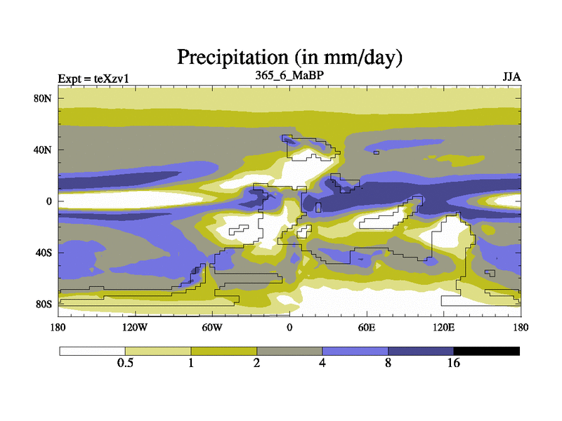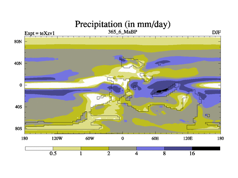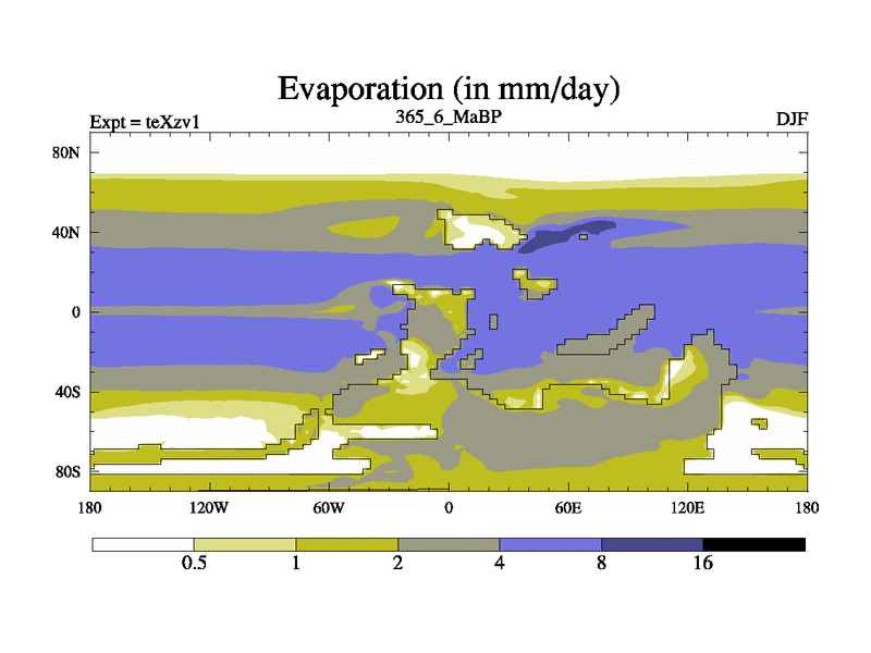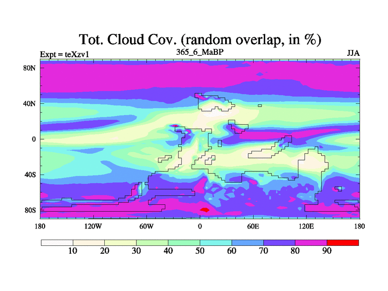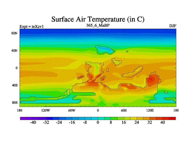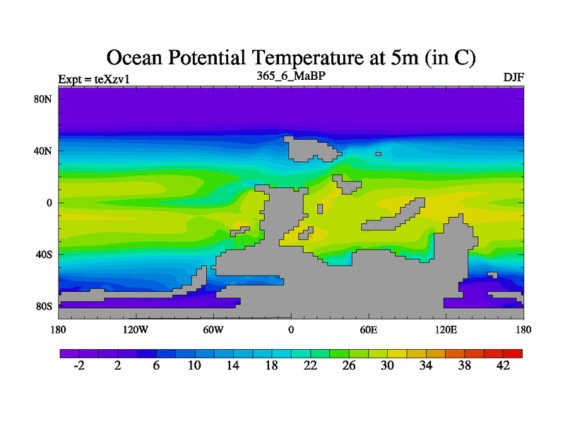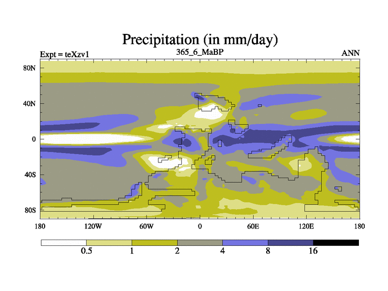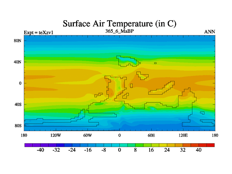 This is the 365.6 Ma simulation using the Scotese palaeogeographies. Extension of the tex[f..j] series.