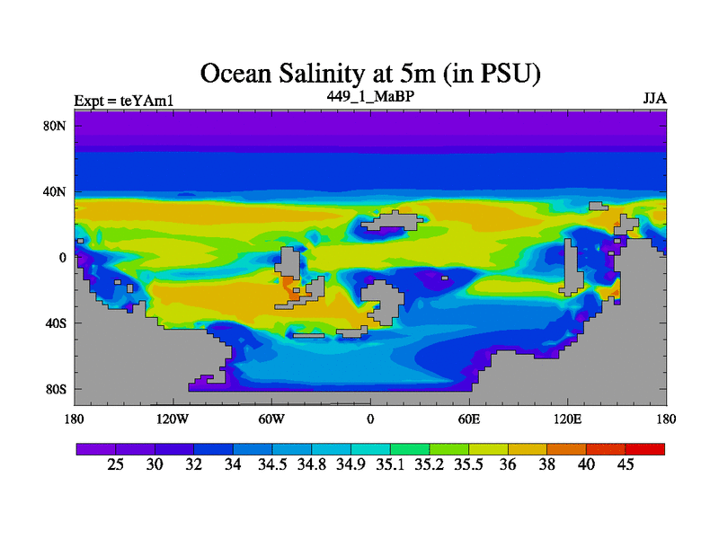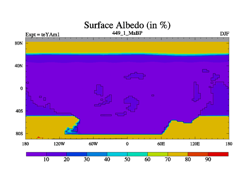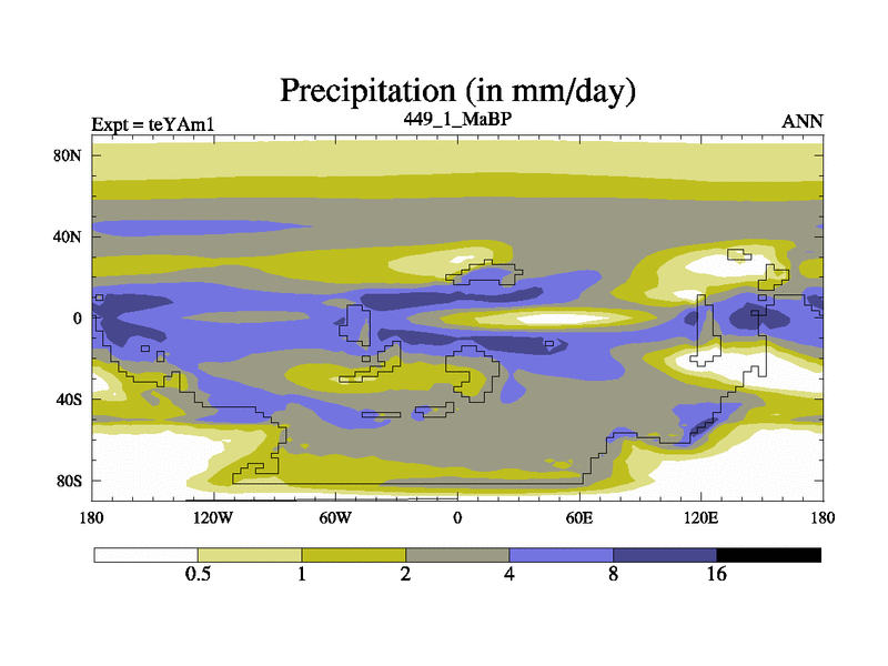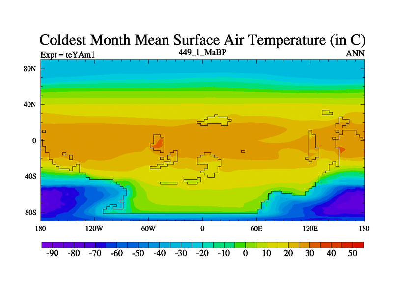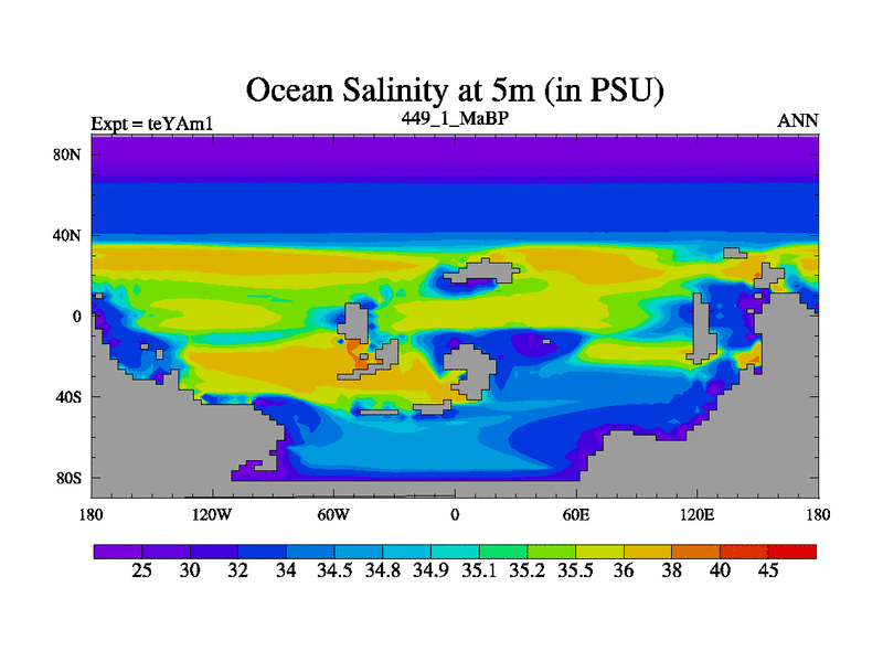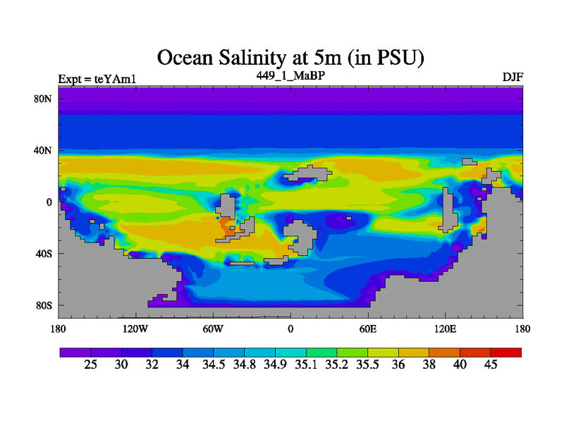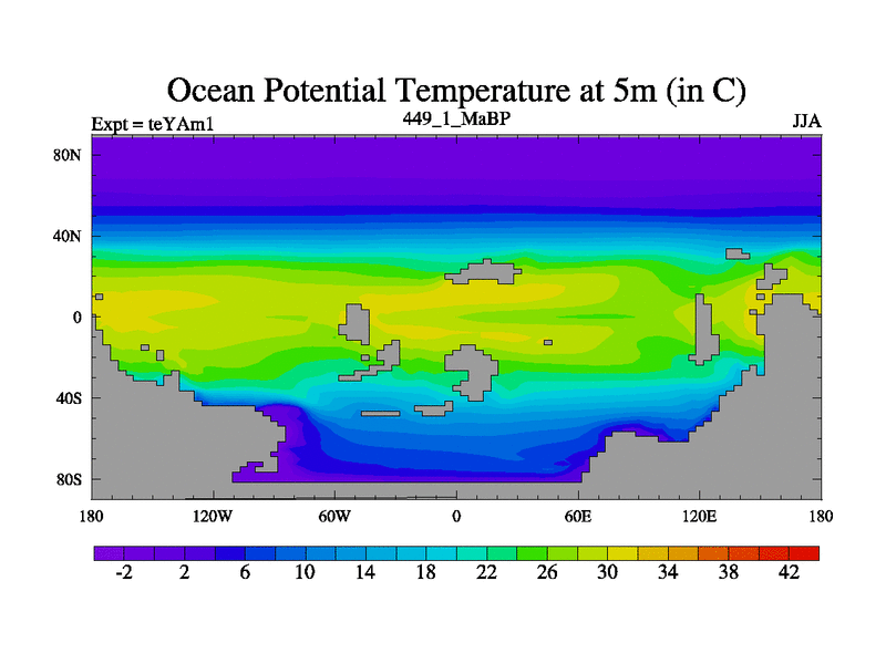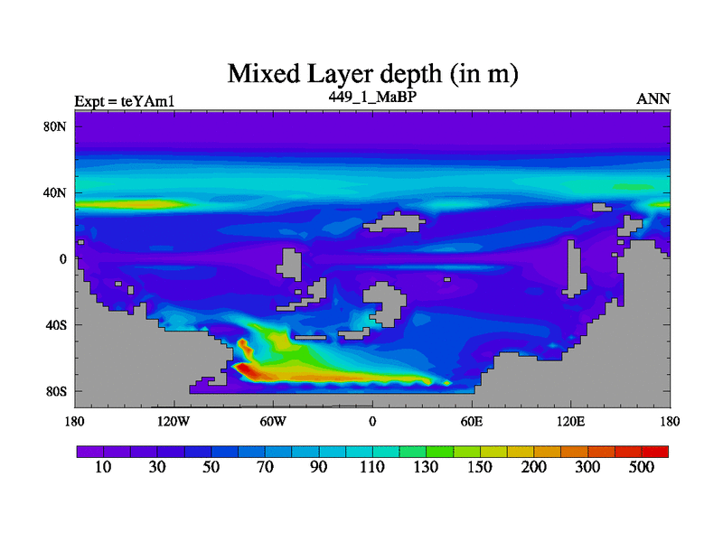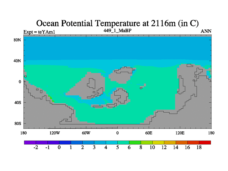 This is the 449.1 Ma simulation using the Scotese palaeogeographies. Extension of the tex[f..j] series.