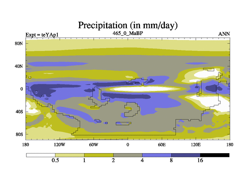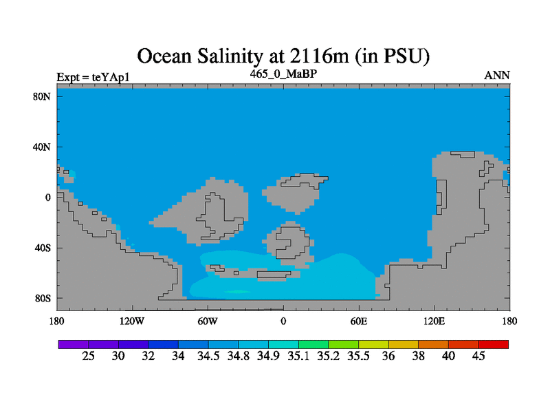 This is the 465.0 Ma simulation using the Scotese palaeogeographies. Extension of the tex[f..j] series.