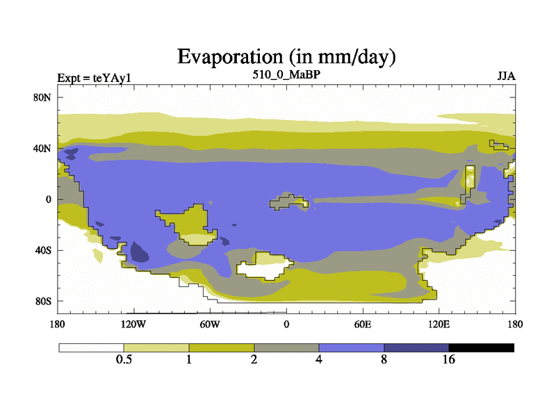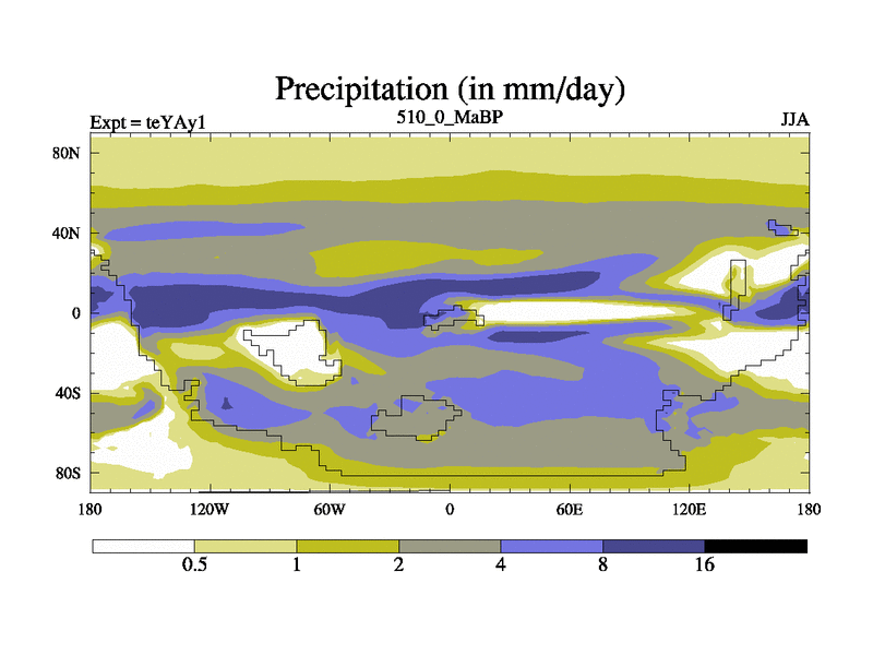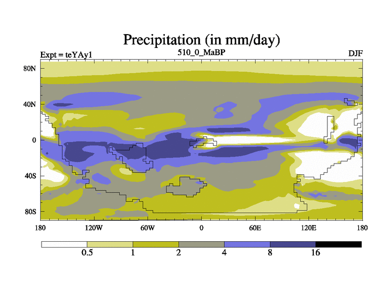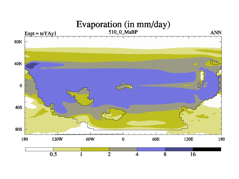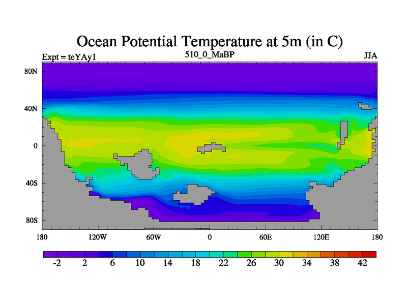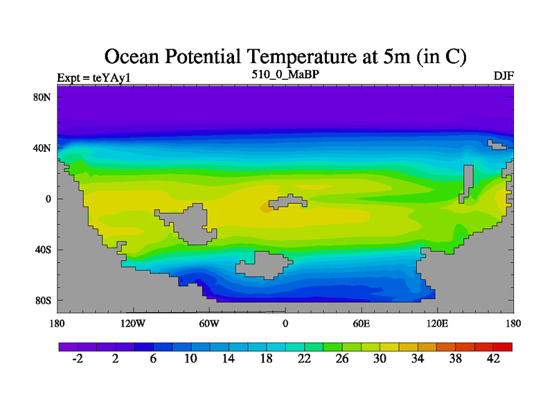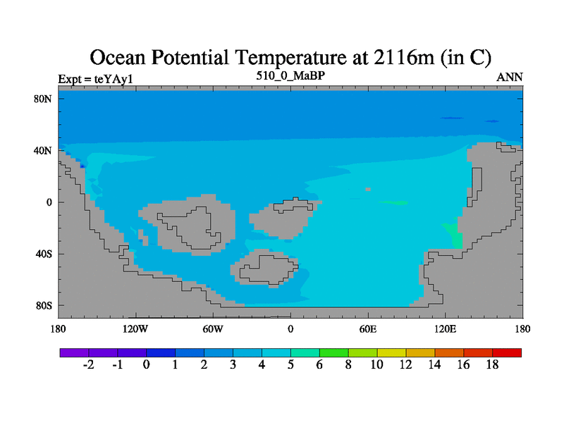 This is the 510.0 Ma simulation using the Scotese palaeogeographies. Extension of the tex[f..j] series.