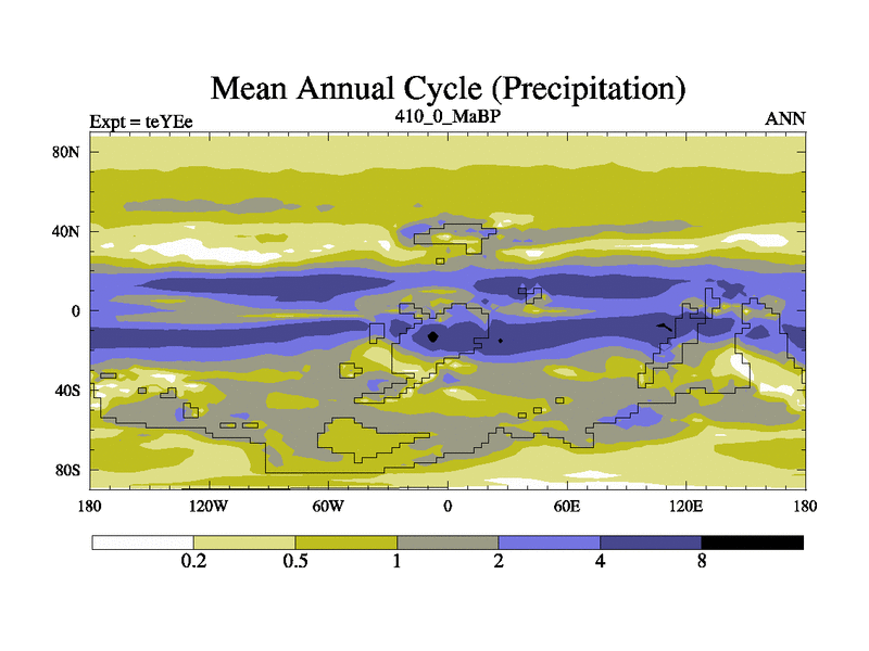 This is the 410.0 Ma simulation using the Scotese palaeogeographies and revised CCN etc.