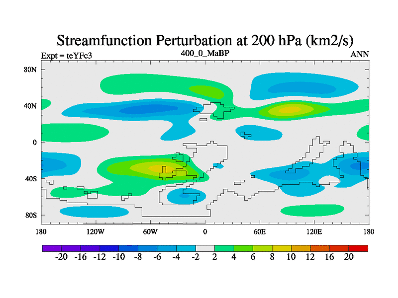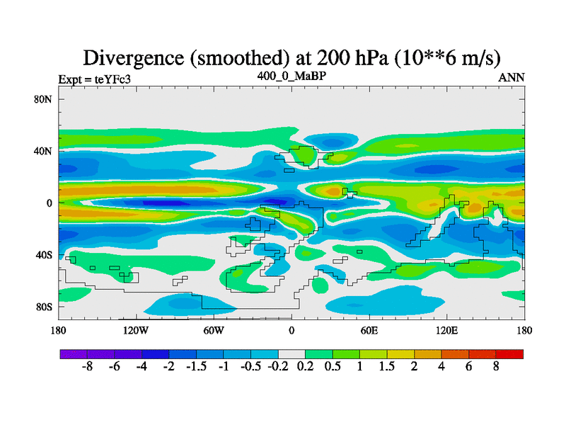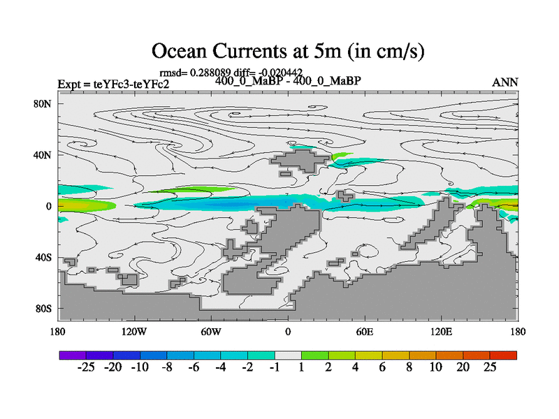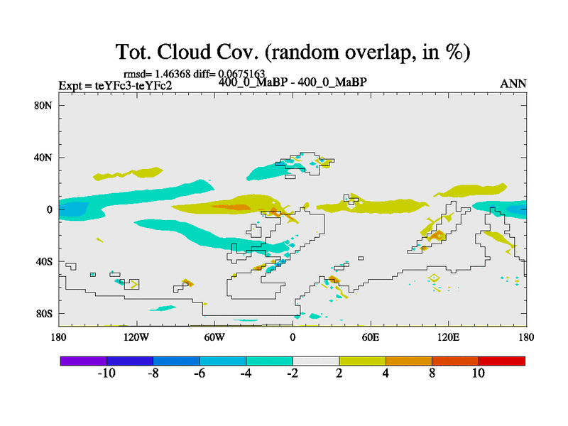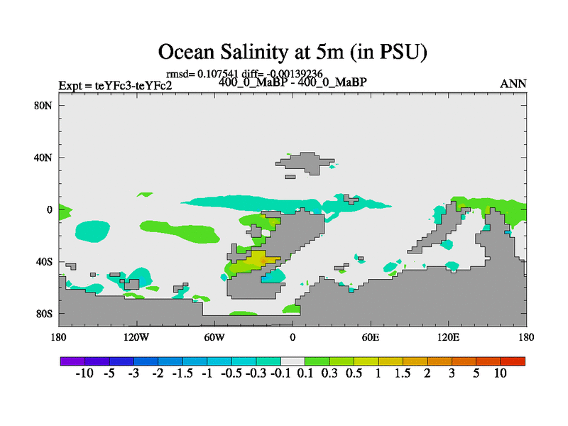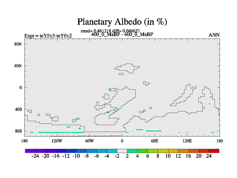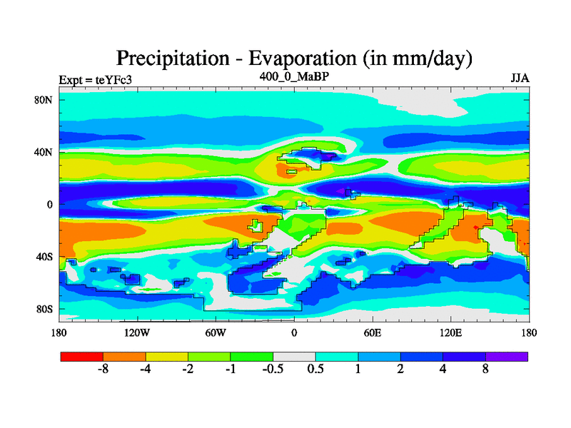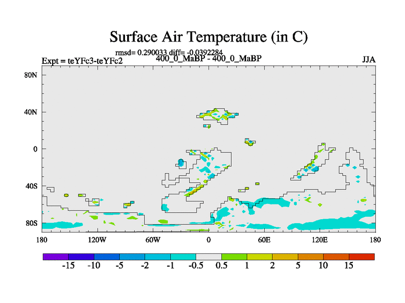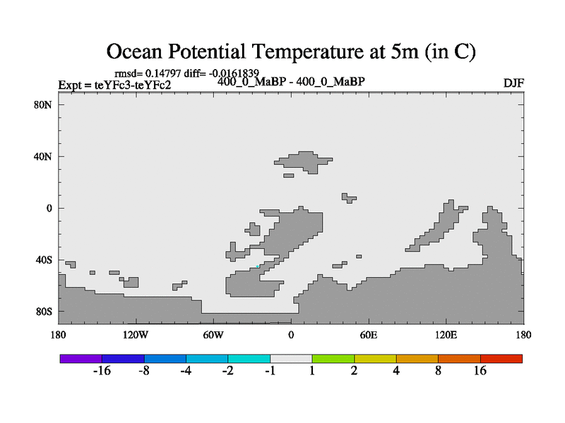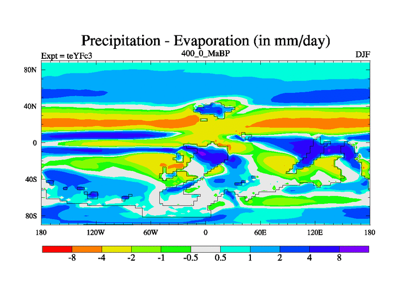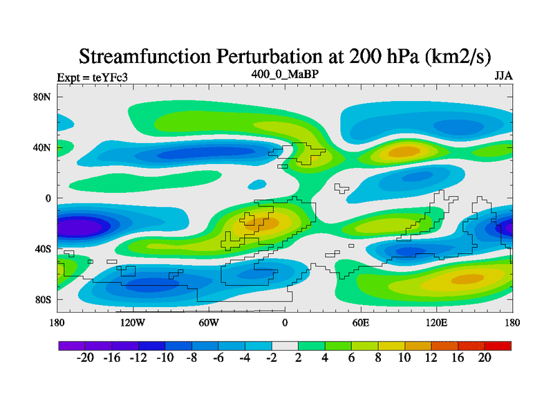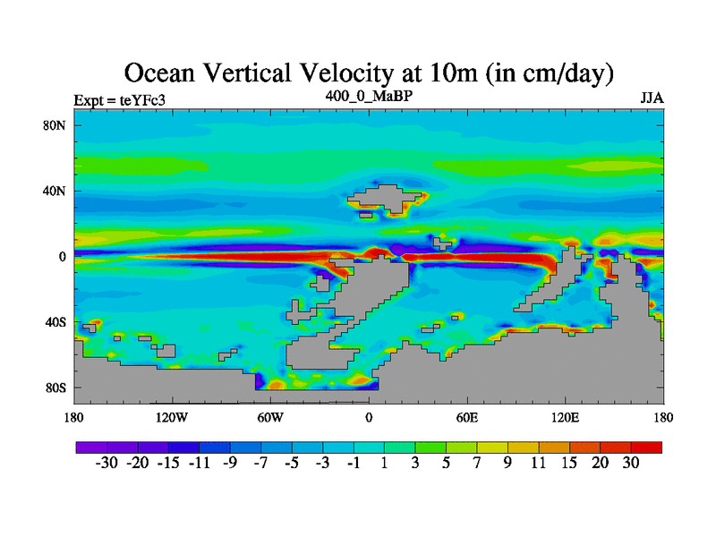 This is the 400.0 Ma simulation using the Scotese palaeogeographies and revised CCN etc. Updated HadCM3L ocean parameters and soil parameters. Also made sure orography gravity wave drag was consistent.