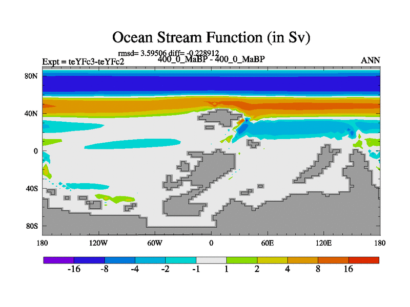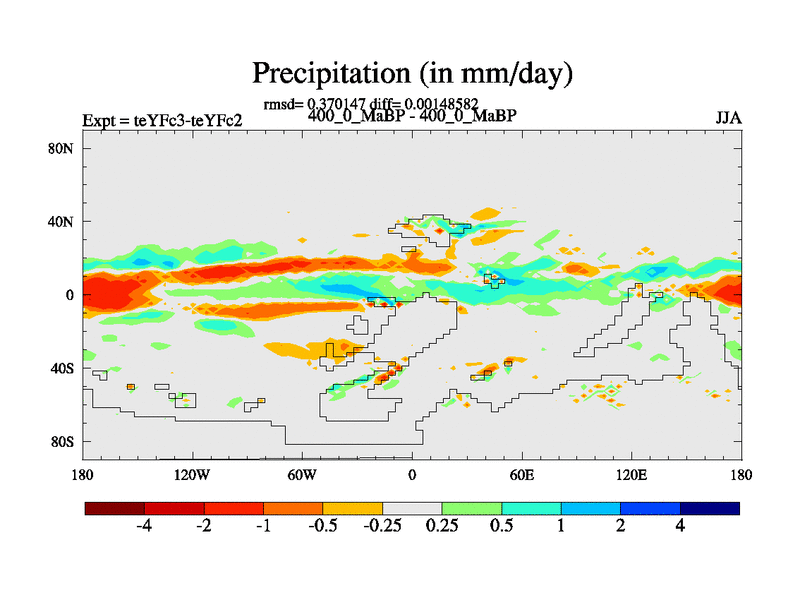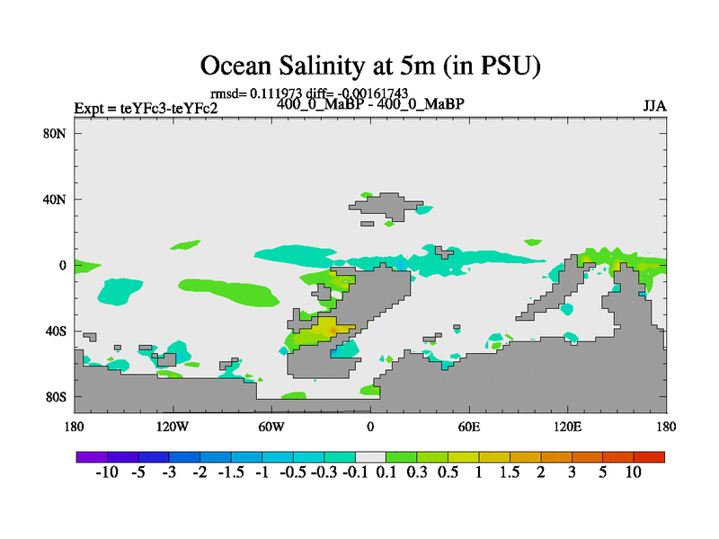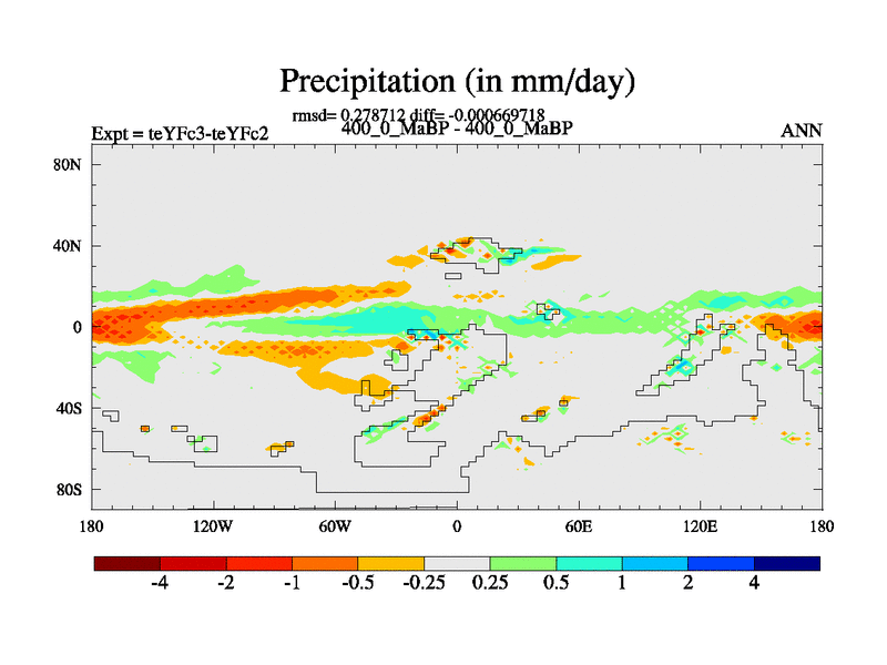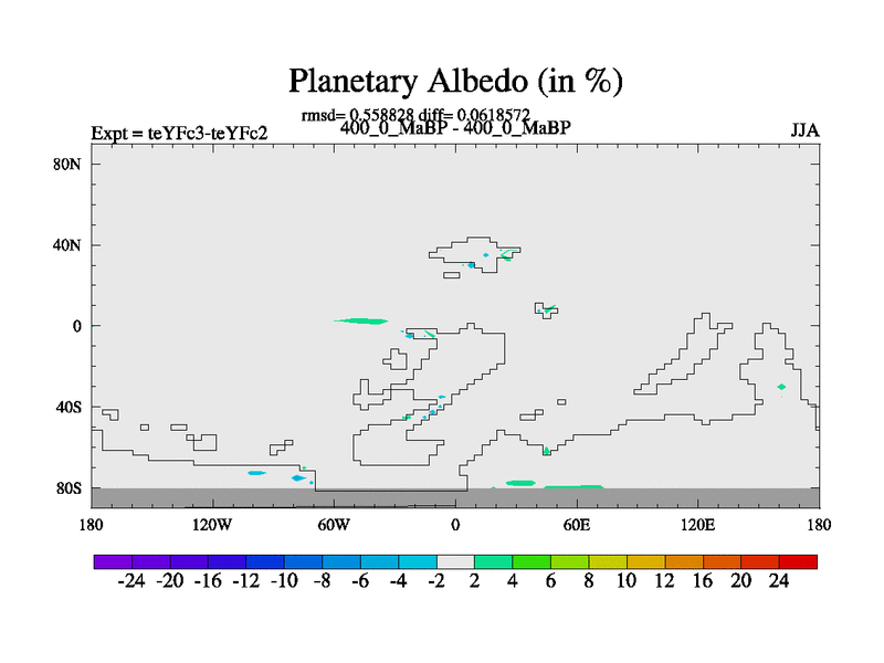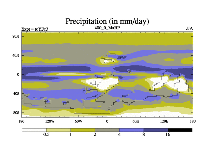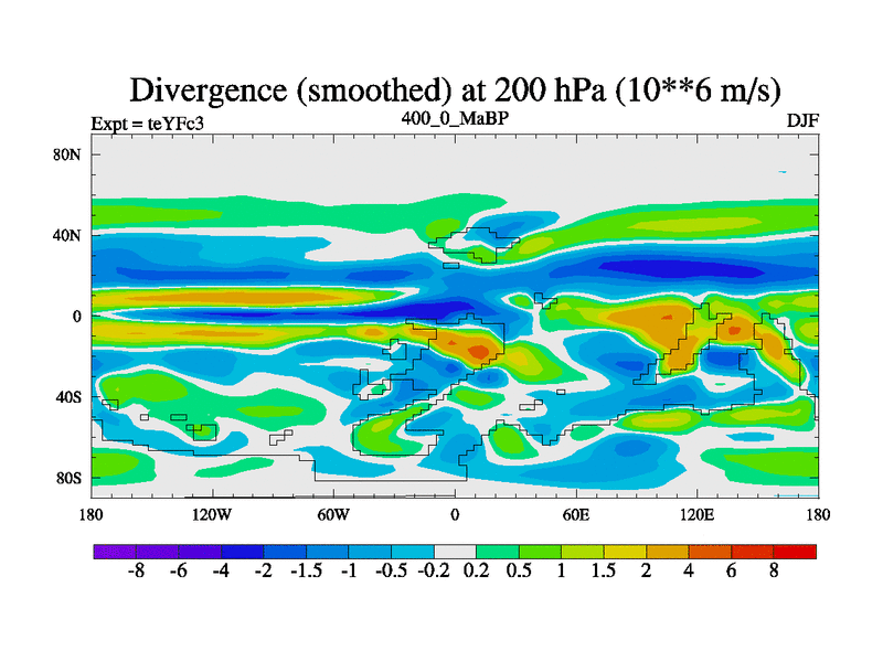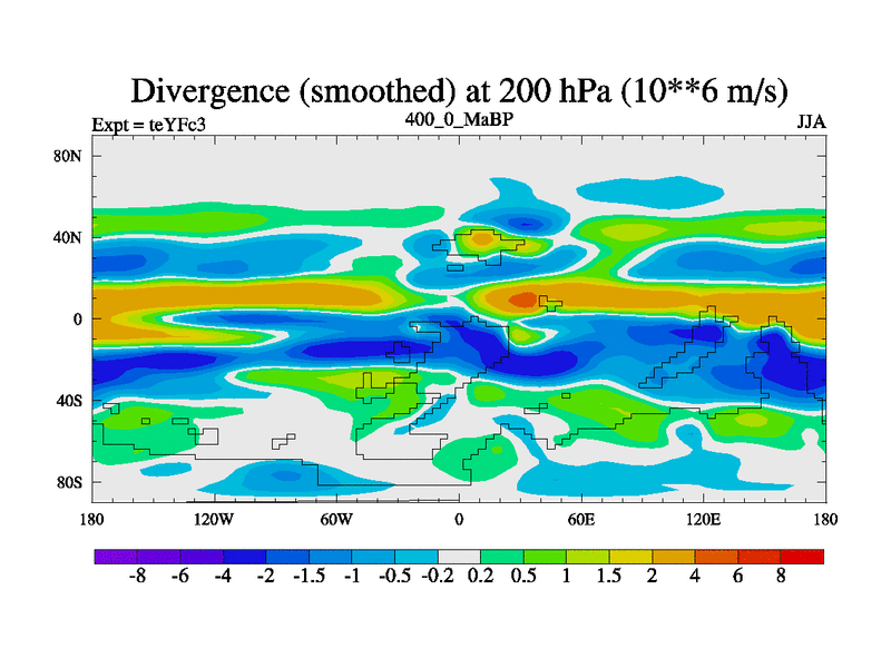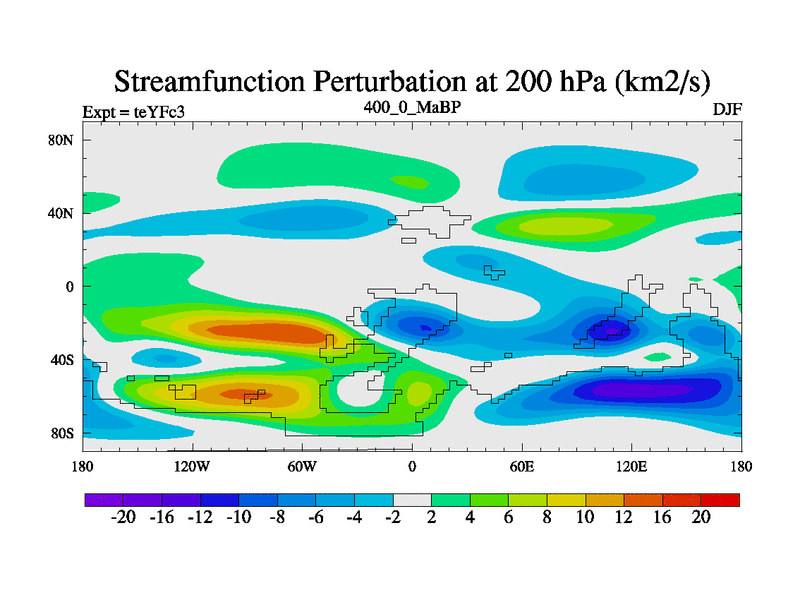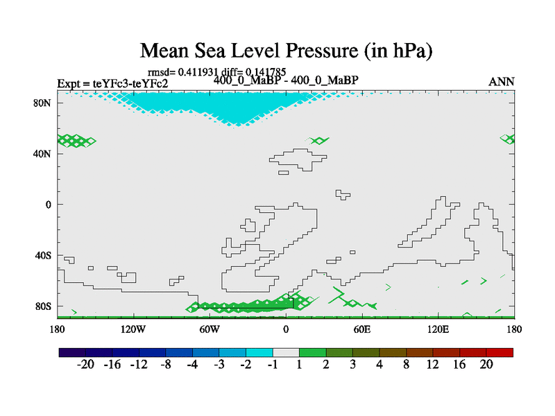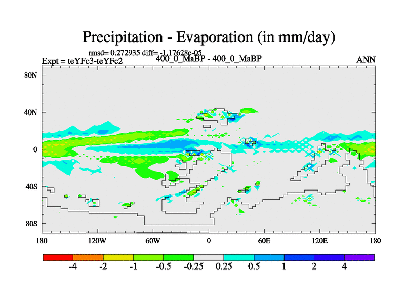 This is the 400.0 Ma simulation using the Scotese palaeogeographies and revised CCN etc. Updated HadCM3L ocean parameters and soil parameters. Also made sure orography gravity wave drag was consistent.