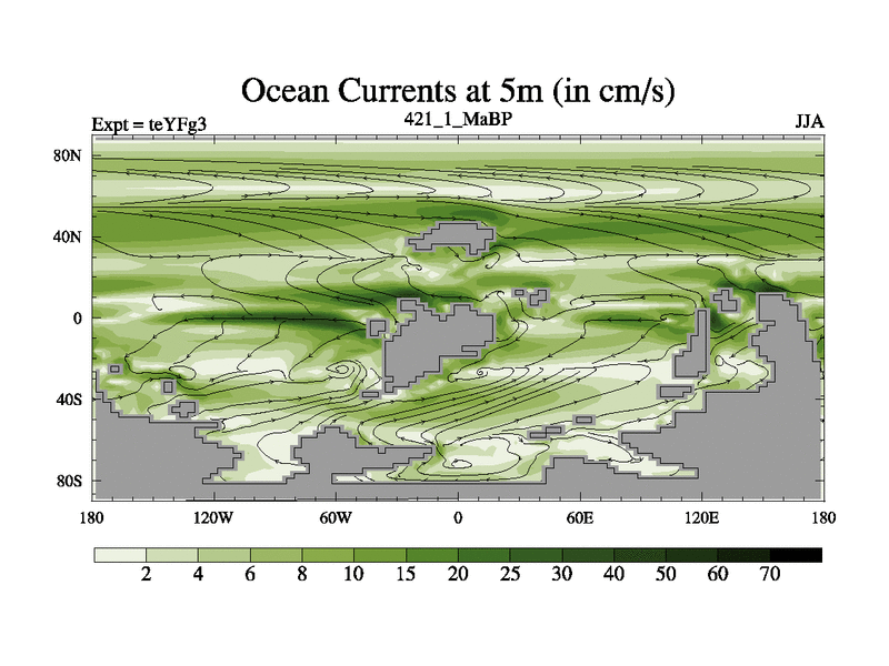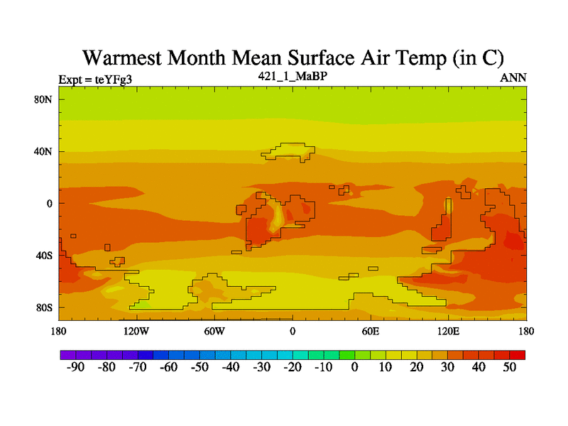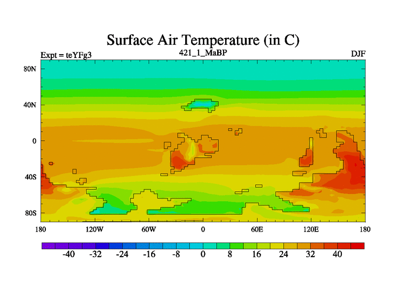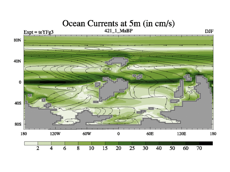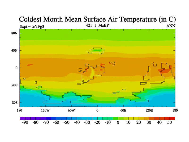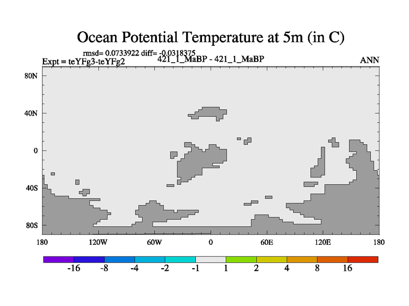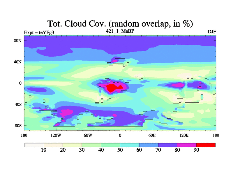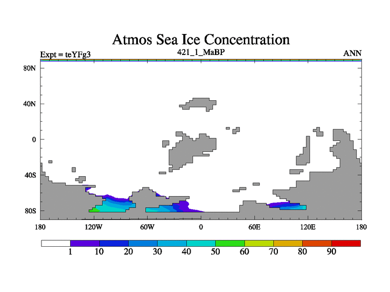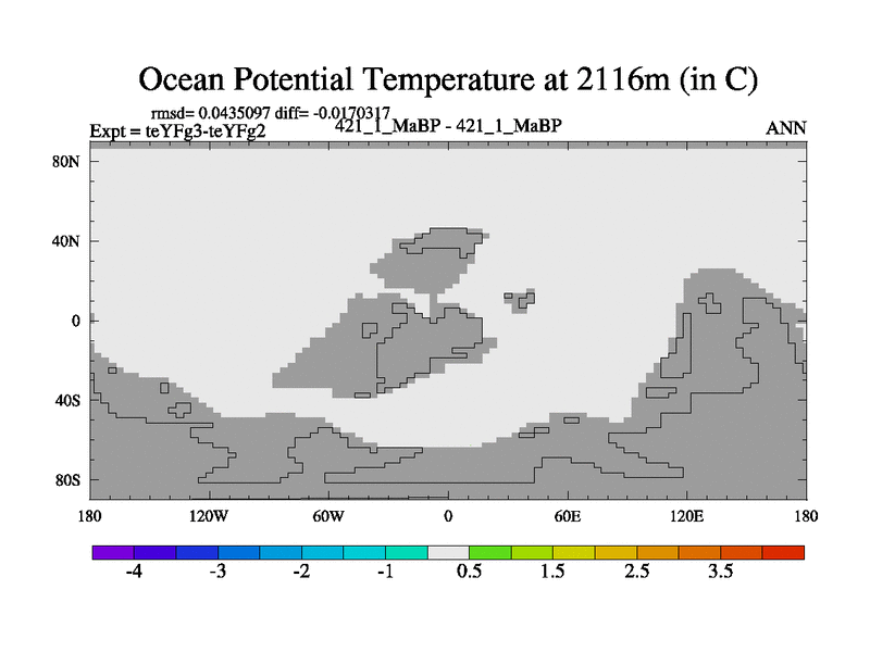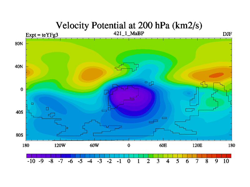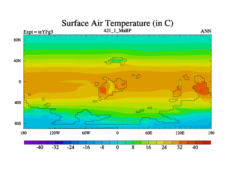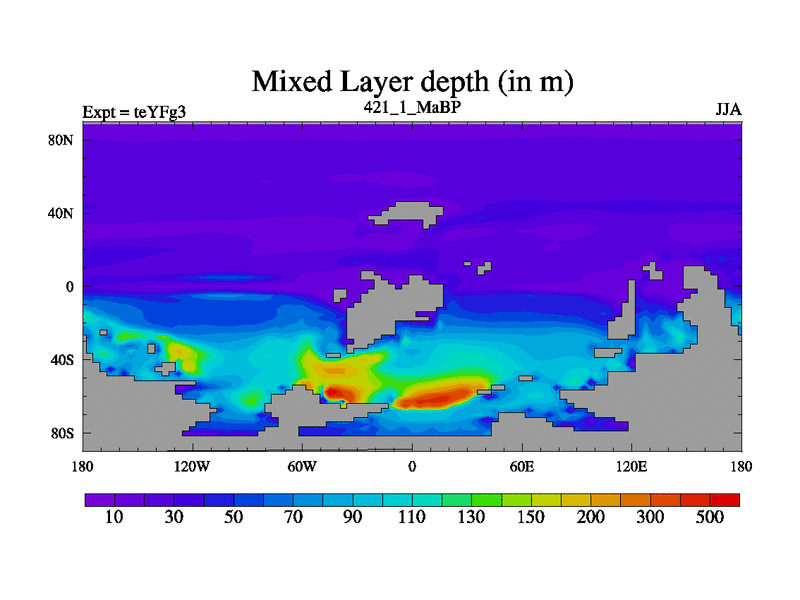 This is the 421.1 Ma simulation using the Scotese palaeogeographies and revised CCN etc. Updated HadCM3L ocean parameters and soil parameters. Also made sure orography gravity wave drag was consistent.