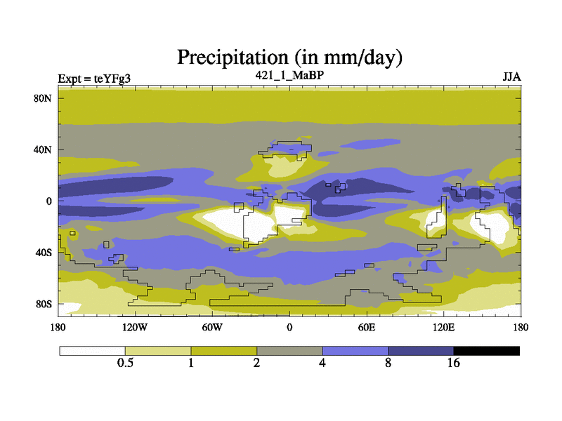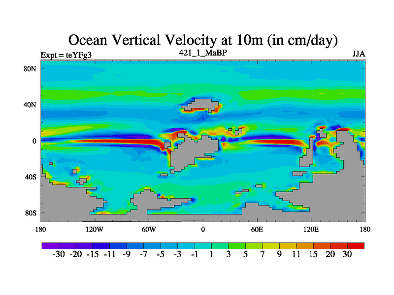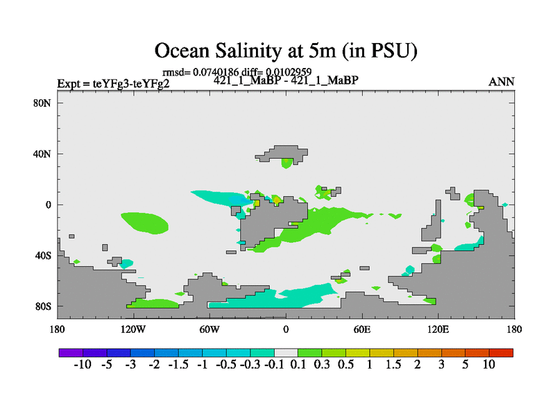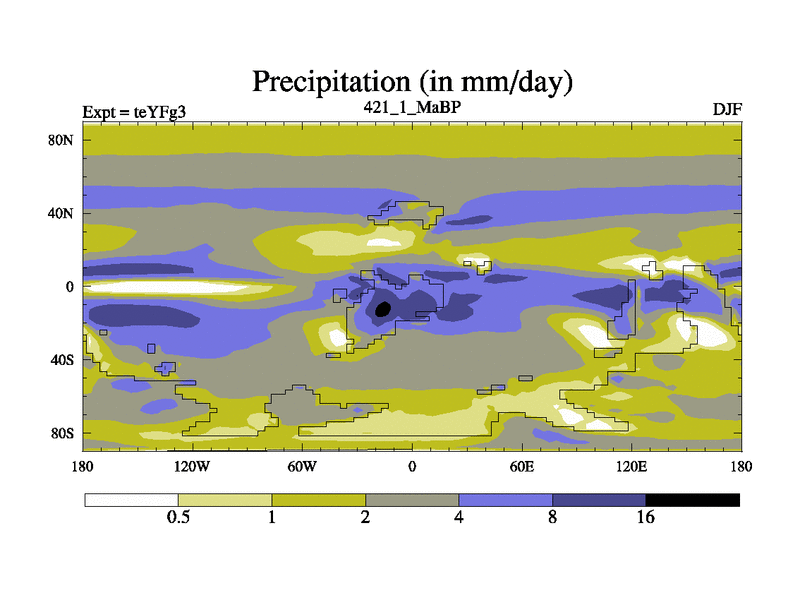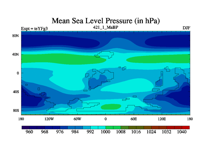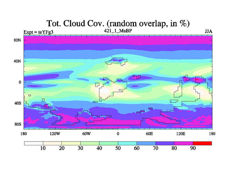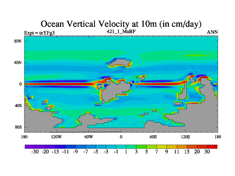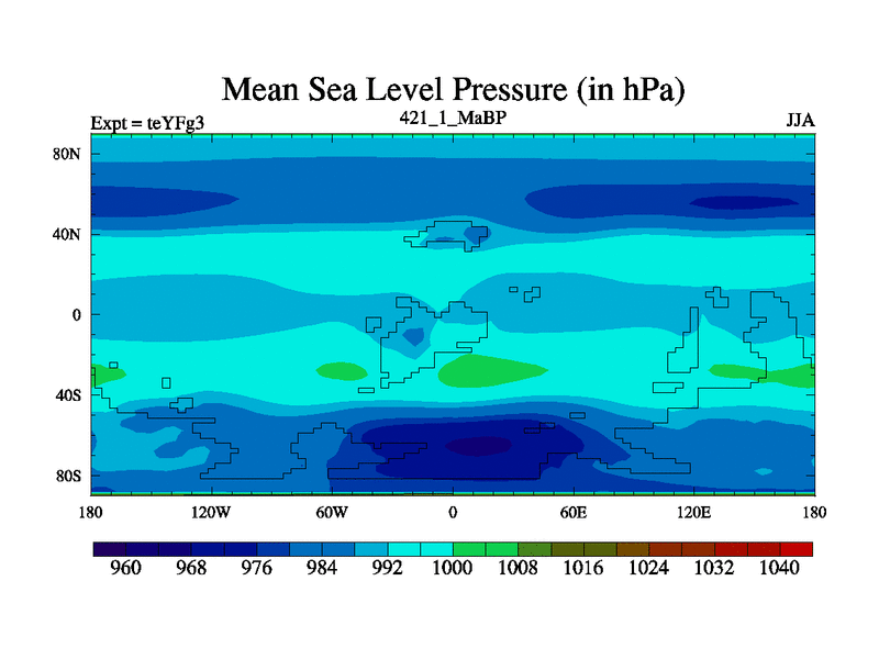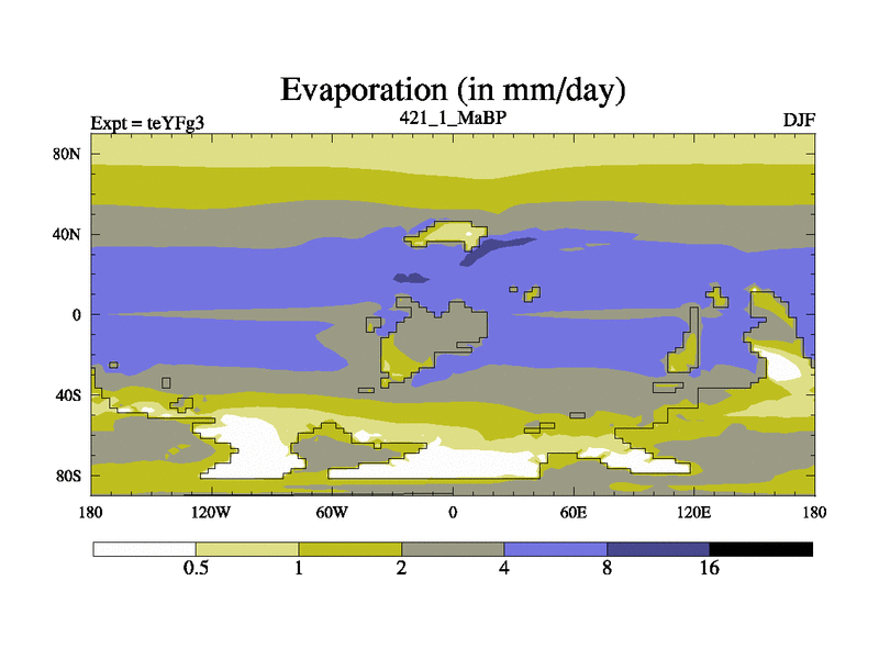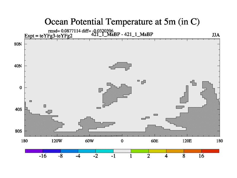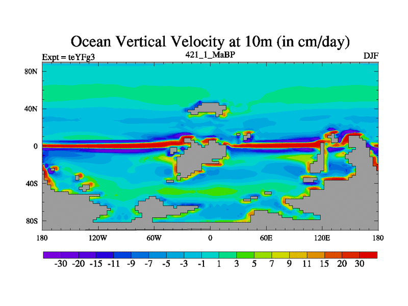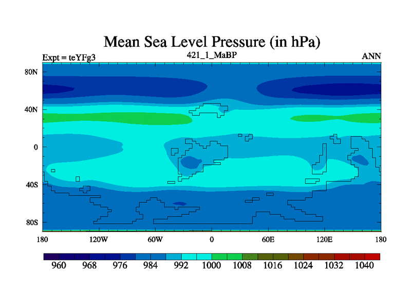 This is the 421.1 Ma simulation using the Scotese palaeogeographies and revised CCN etc. Updated HadCM3L ocean parameters and soil parameters. Also made sure orography gravity wave drag was consistent.
