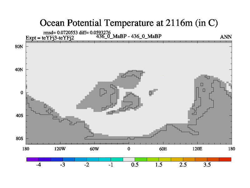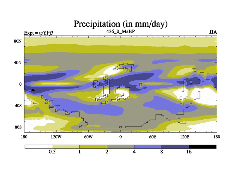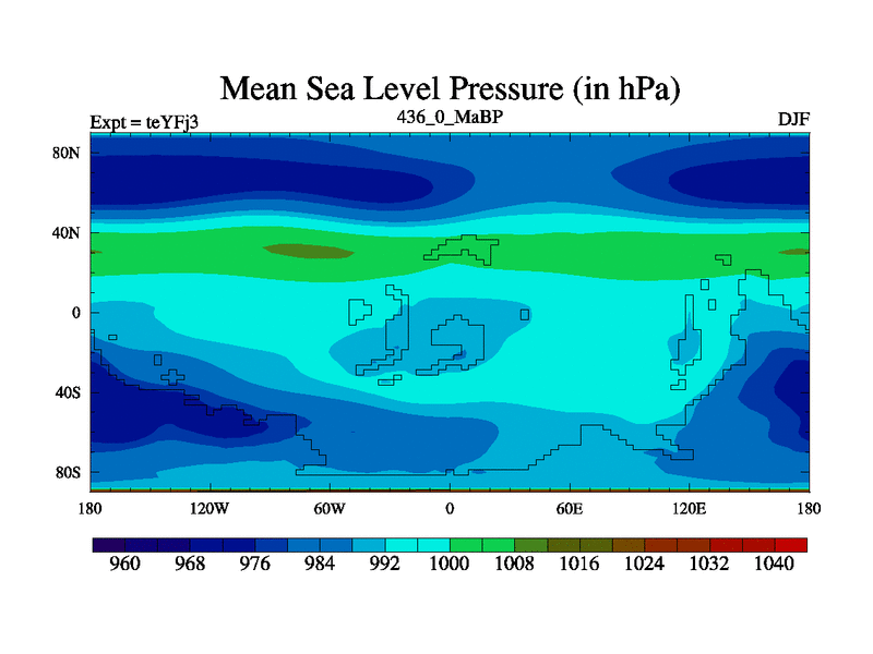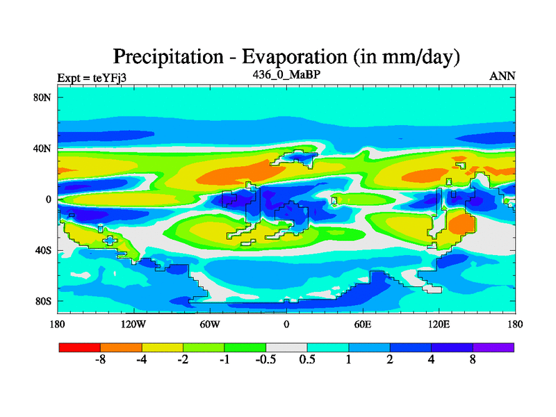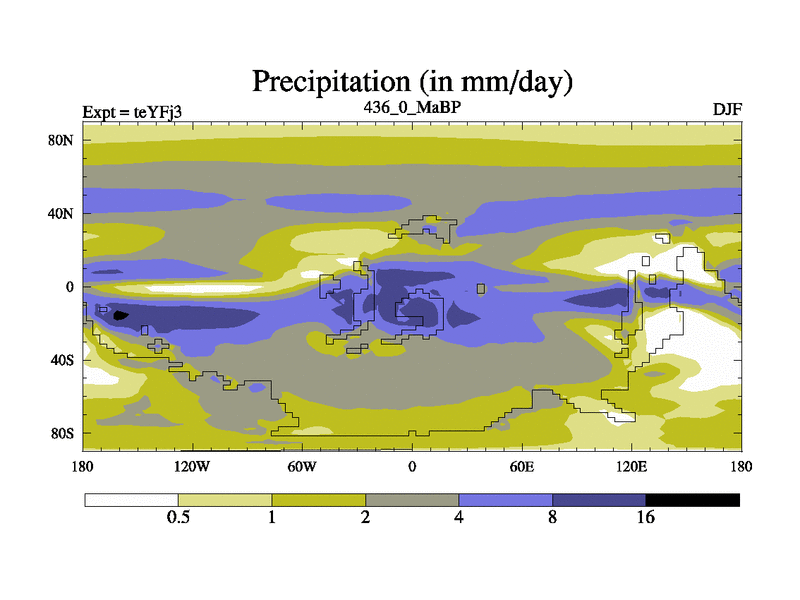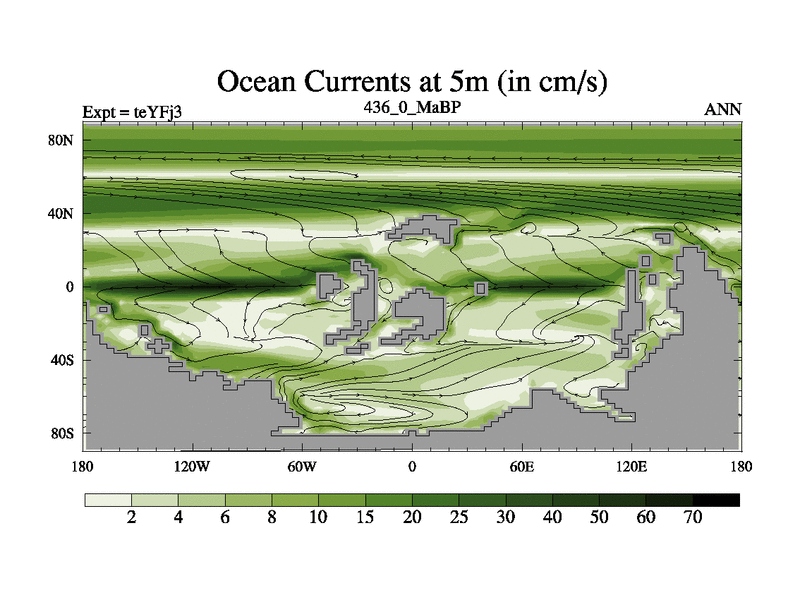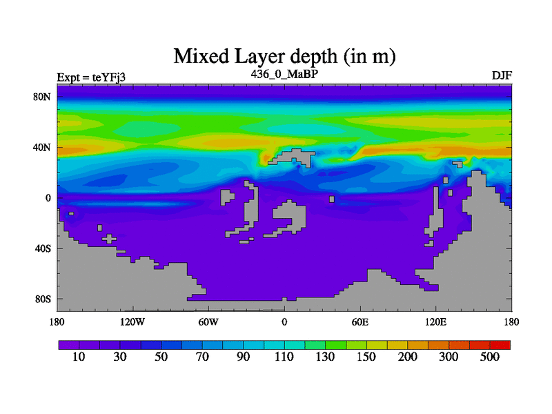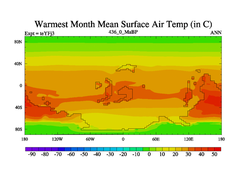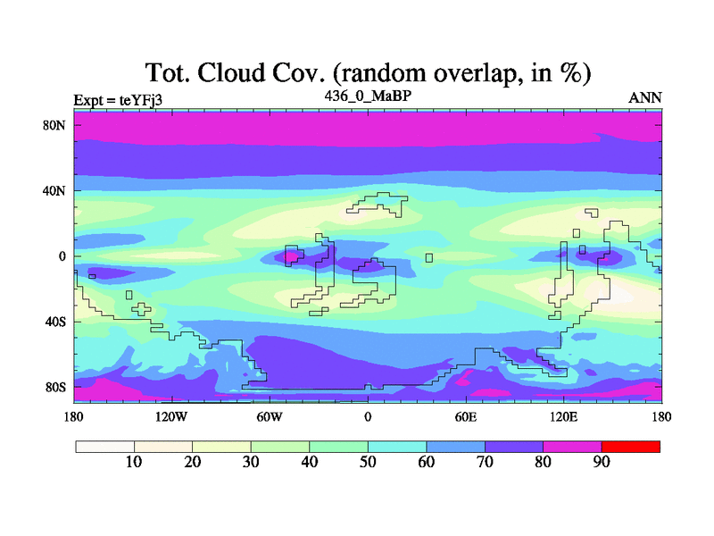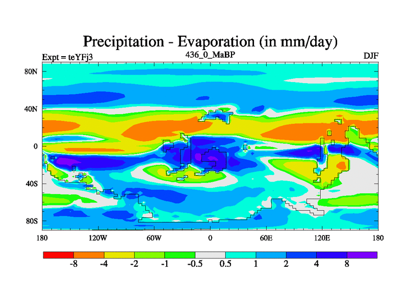 This is the 436.0 Ma simulation using the Scotese palaeogeographies and revised CCN etc. Updated HadCM3L ocean parameters and soil parameters. Also made sure orography gravity wave drag was consistent.