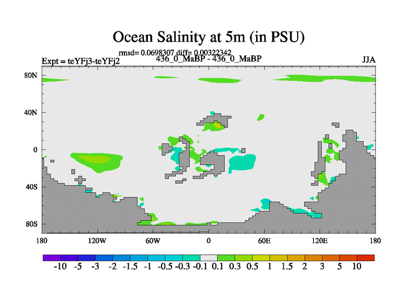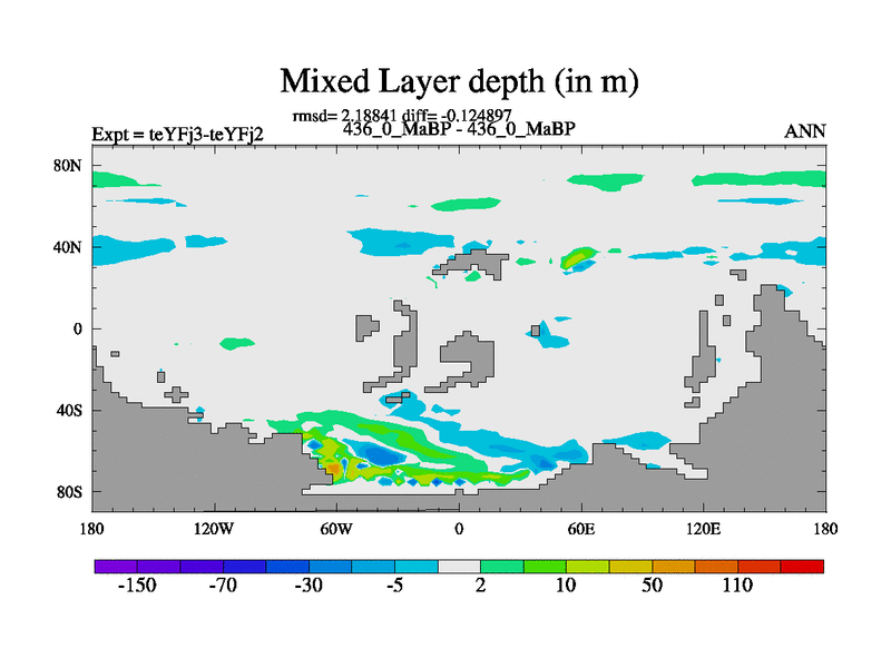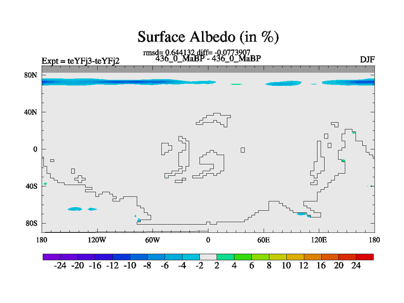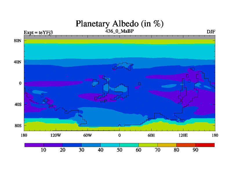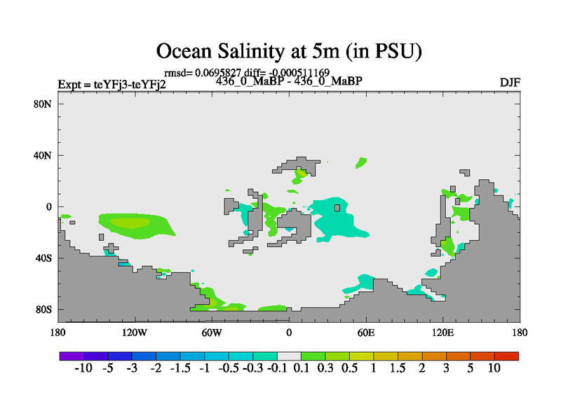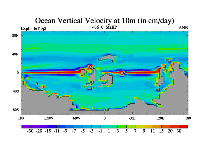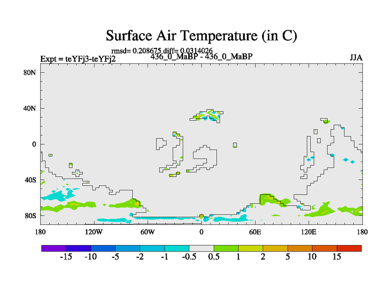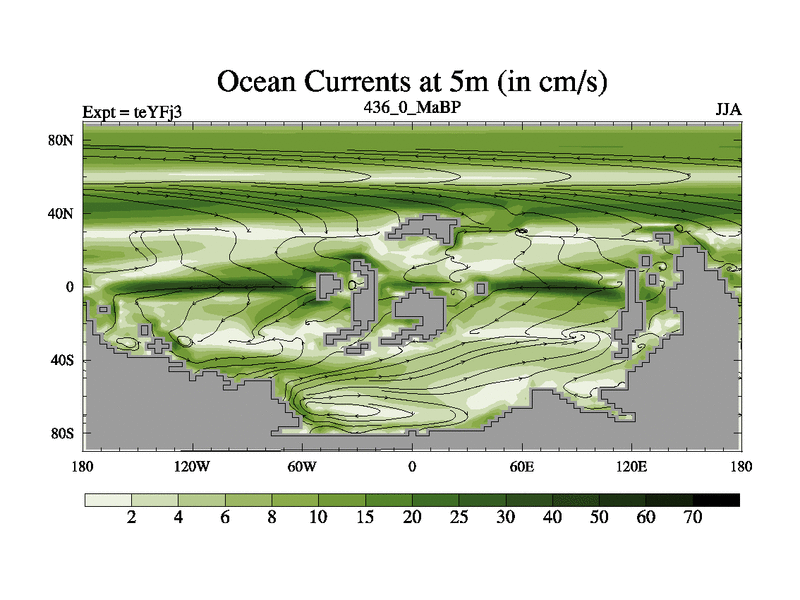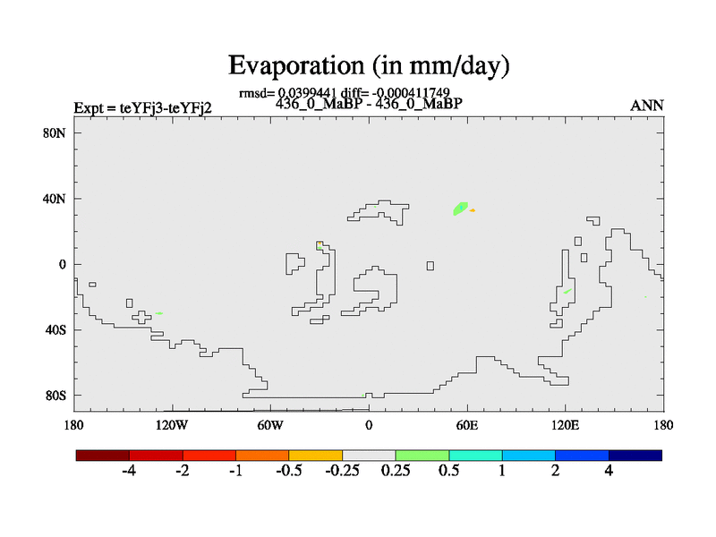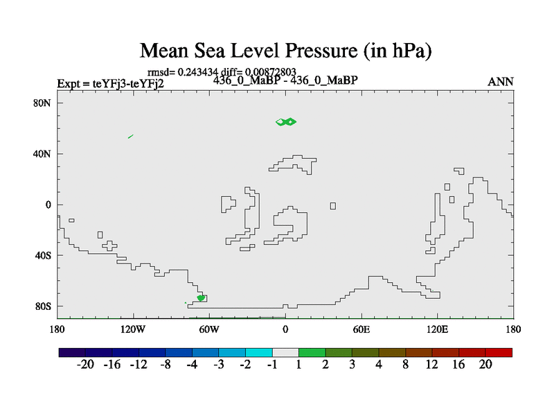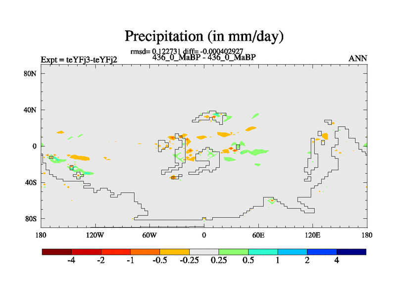 This is the 436.0 Ma simulation using the Scotese palaeogeographies and revised CCN etc. Updated HadCM3L ocean parameters and soil parameters. Also made sure orography gravity wave drag was consistent.