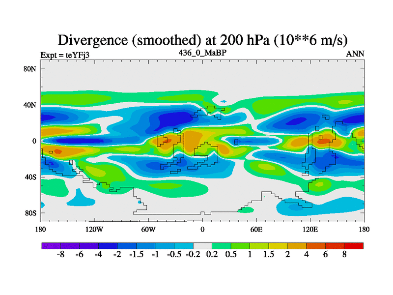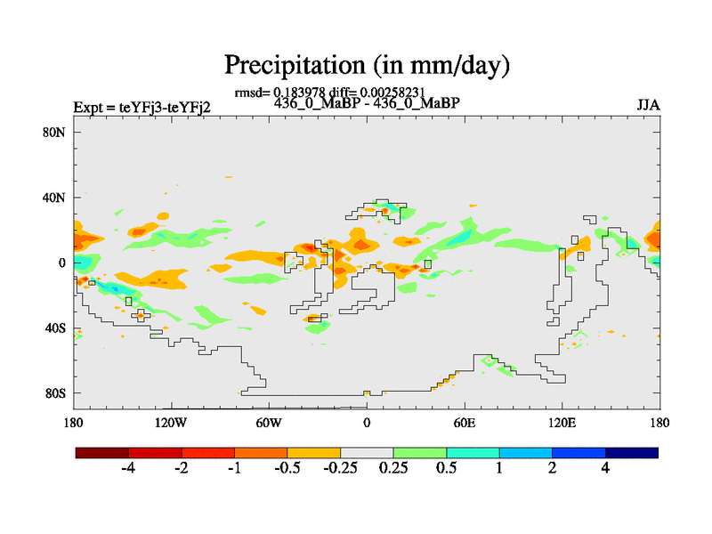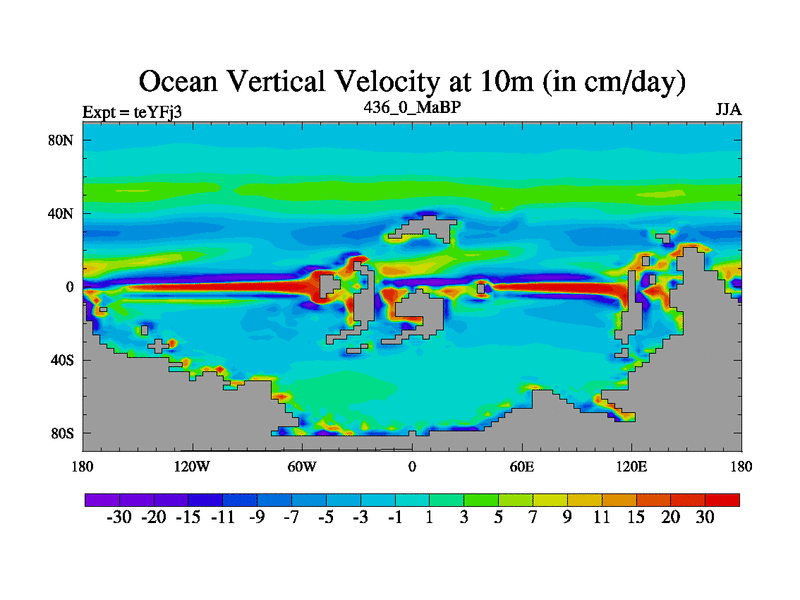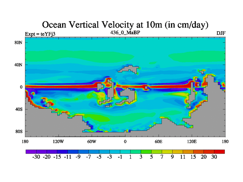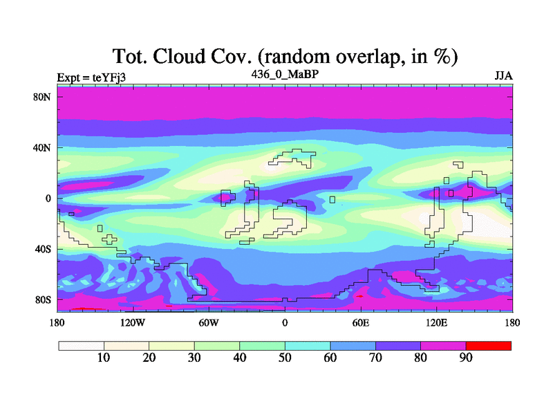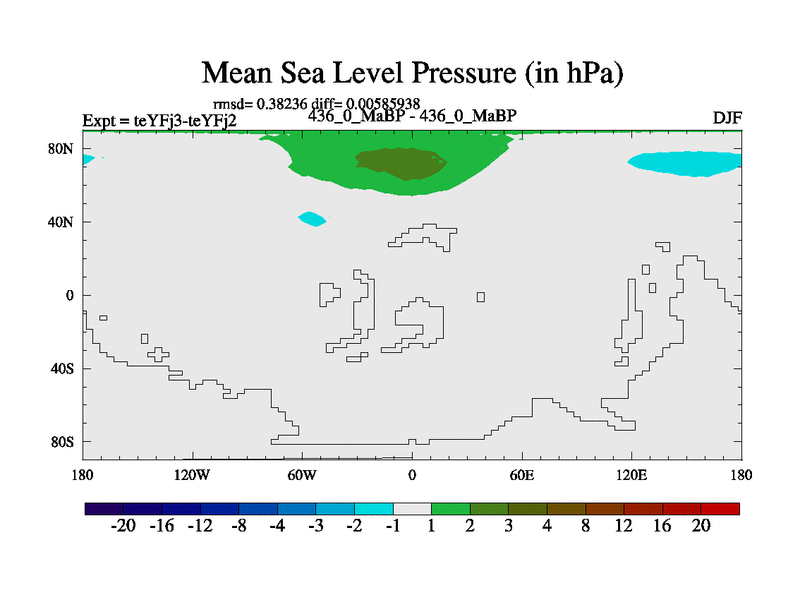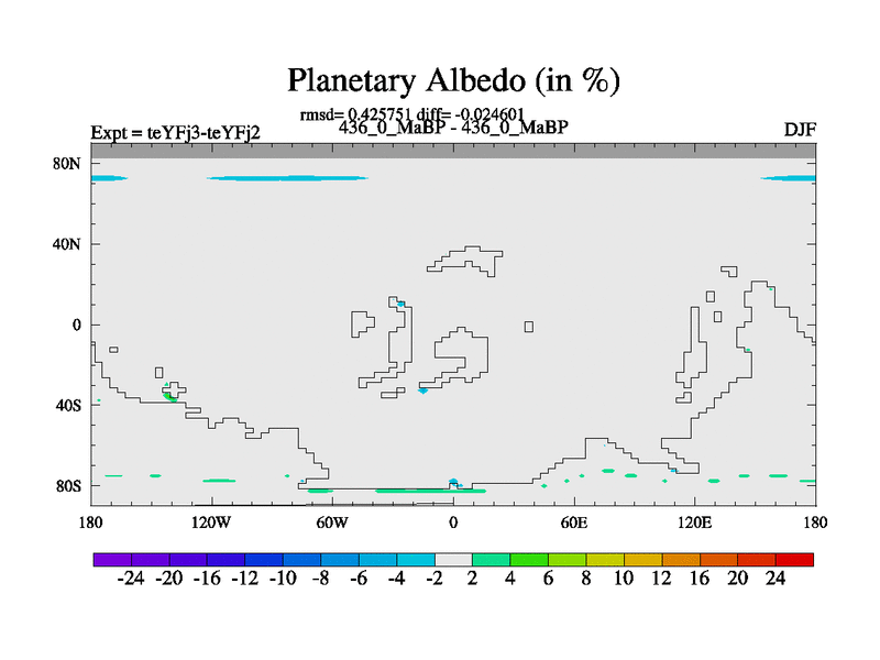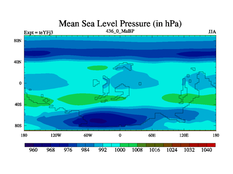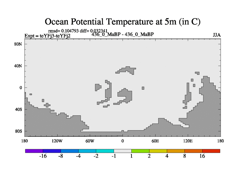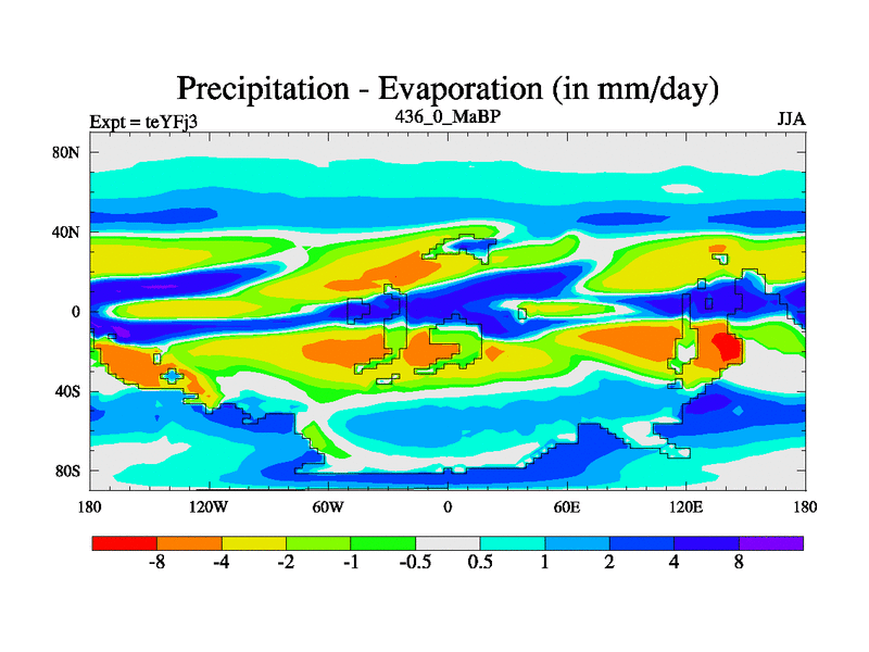 This is the 436.0 Ma simulation using the Scotese palaeogeographies and revised CCN etc. Updated HadCM3L ocean parameters and soil parameters. Also made sure orography gravity wave drag was consistent.