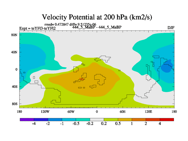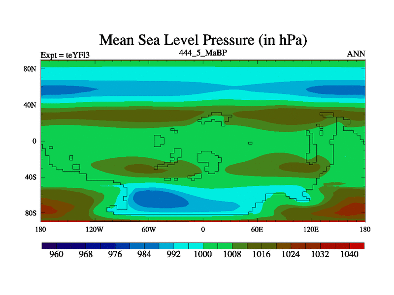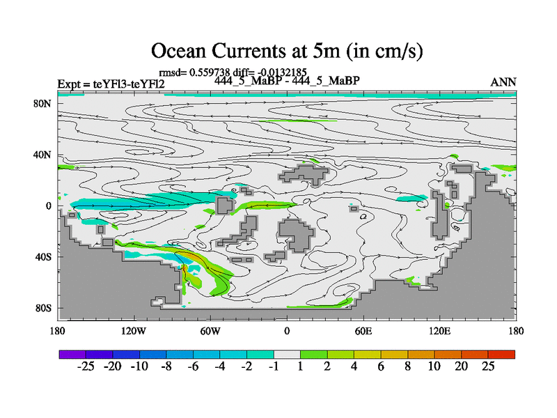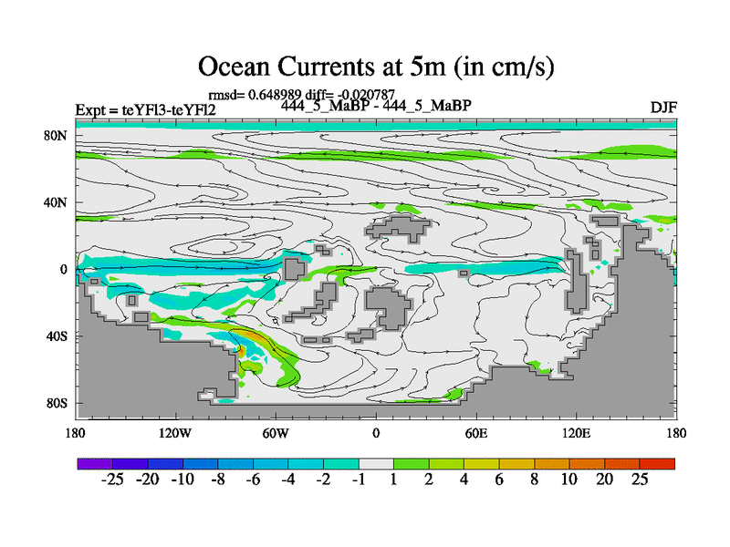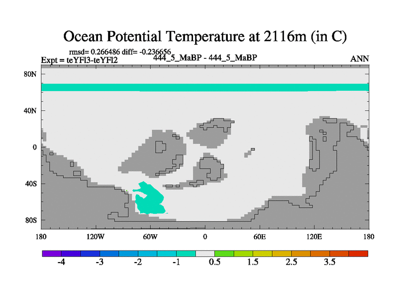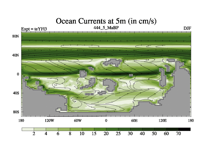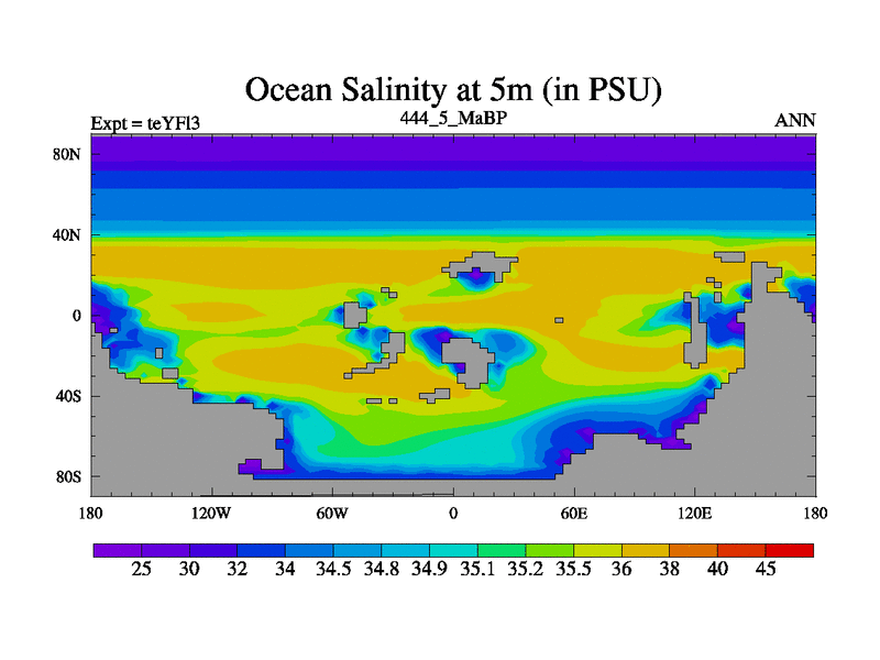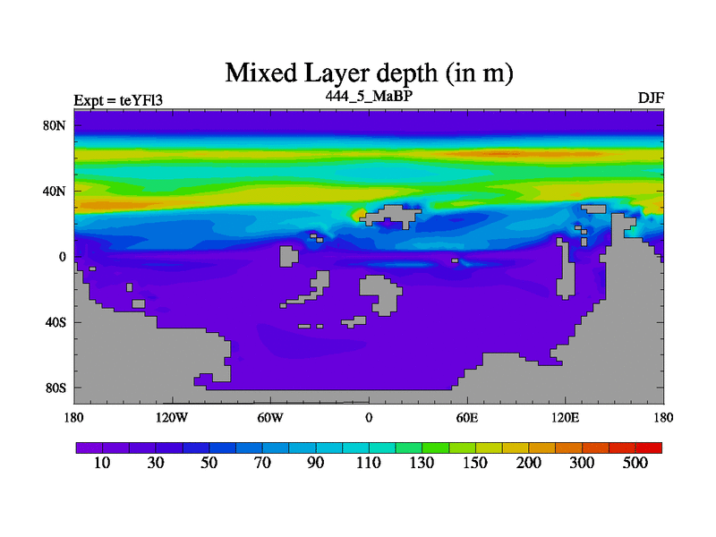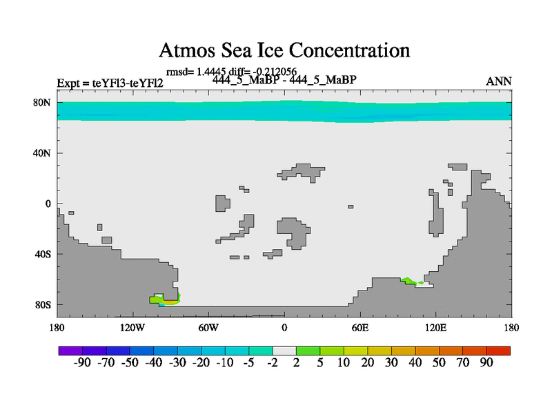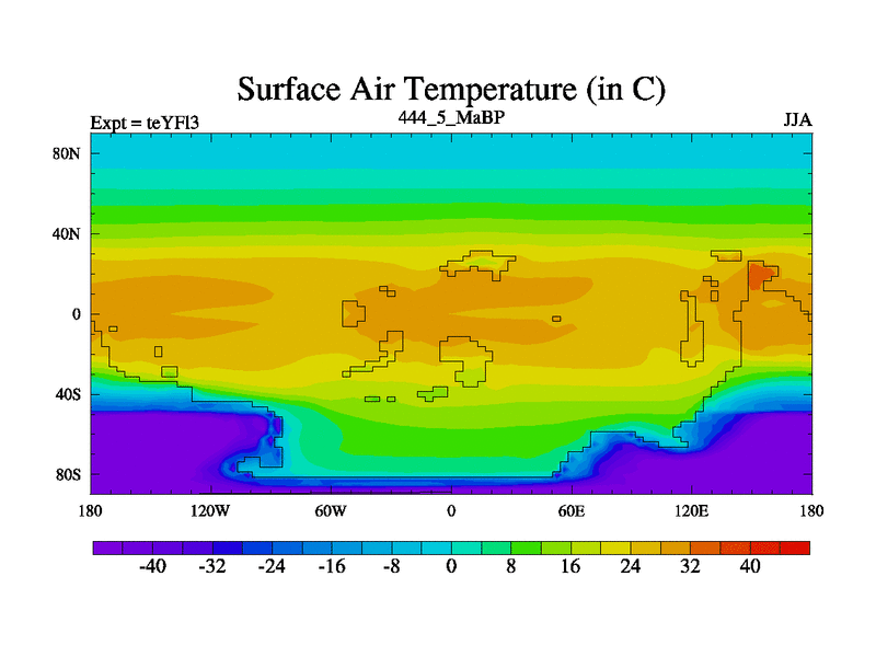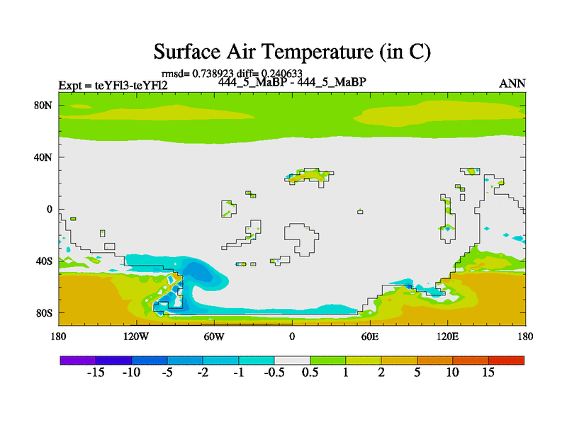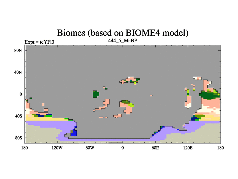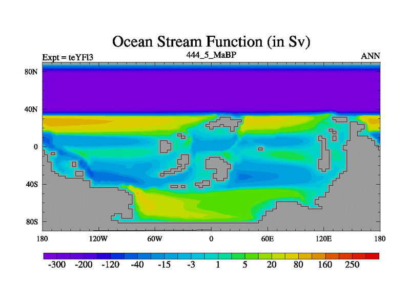 This is the 444.5 Ma simulation using the Scotese palaeogeographies and revised CCN etc. Updated HadCM3L ocean parameters and soil parameters. Also made sure orography gravity wave drag was consistent.