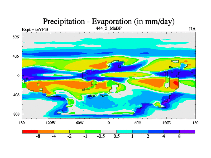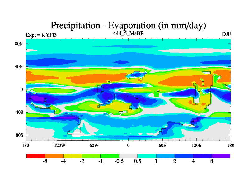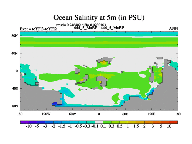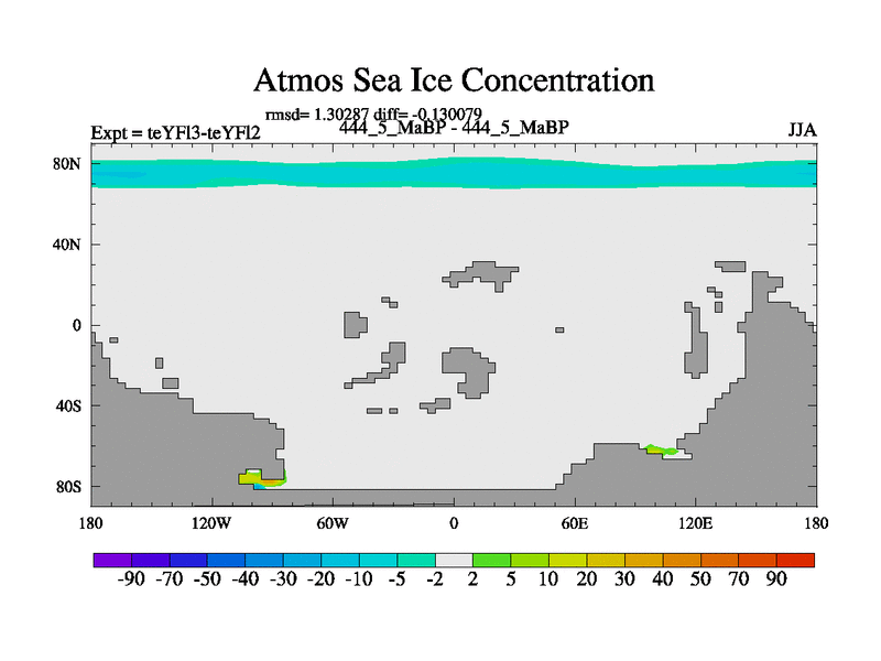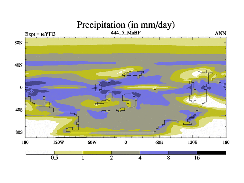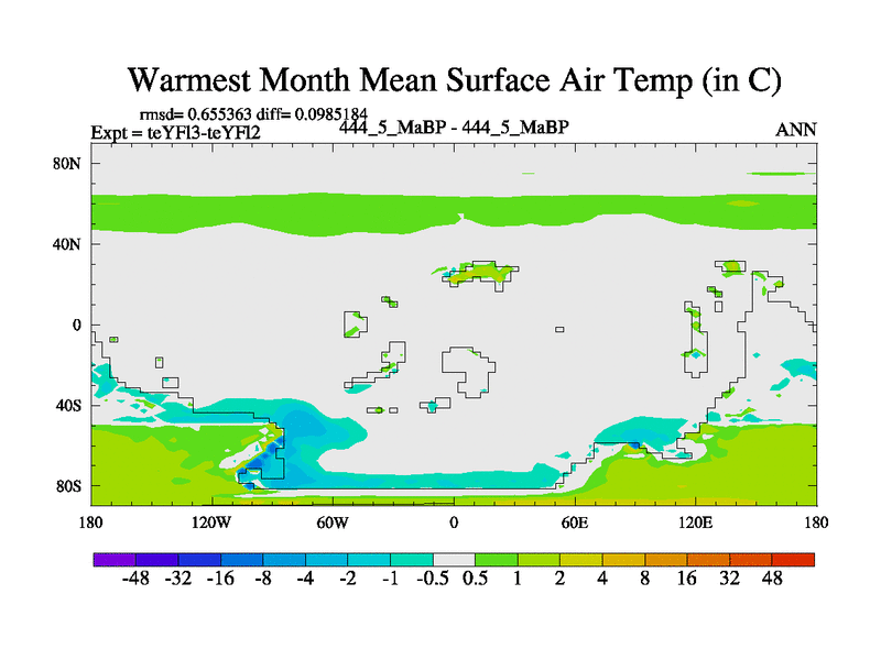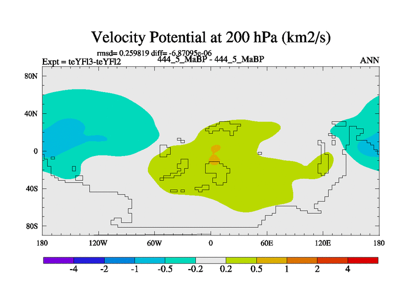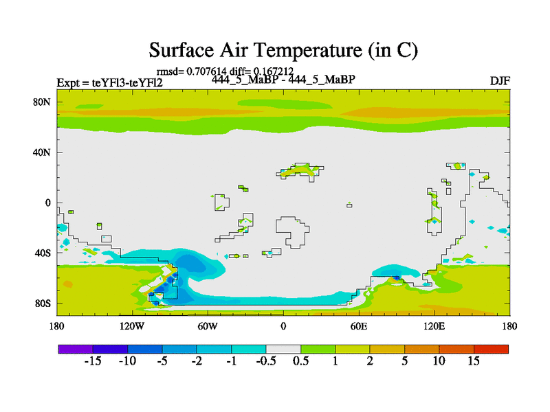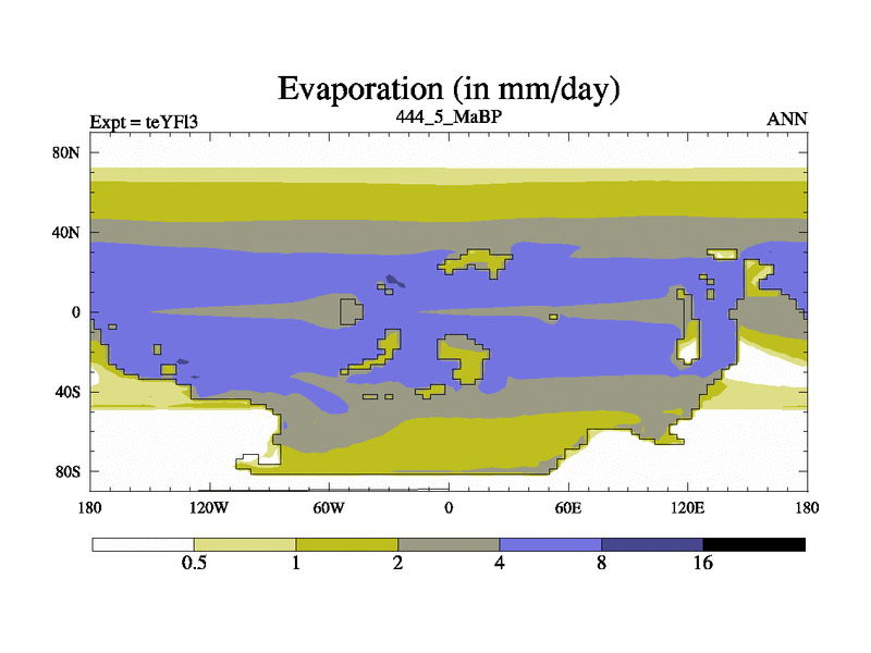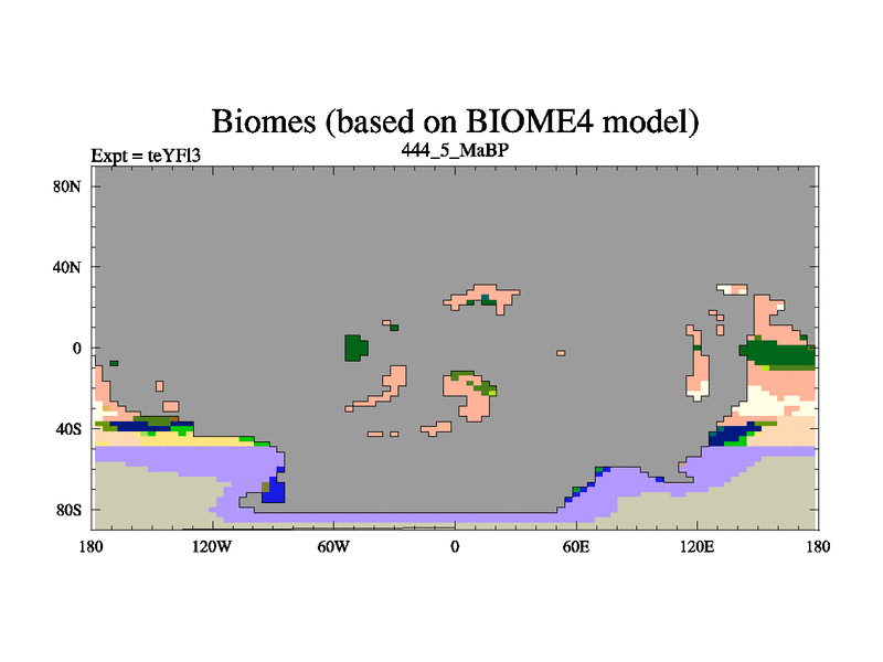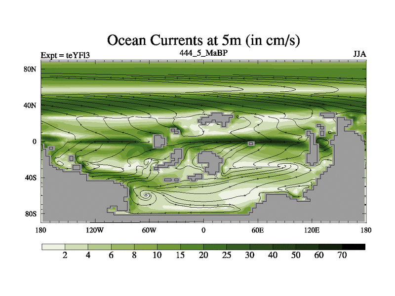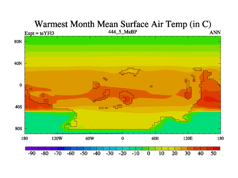 This is the 444.5 Ma simulation using the Scotese palaeogeographies and revised CCN etc. Updated HadCM3L ocean parameters and soil parameters. Also made sure orography gravity wave drag was consistent.