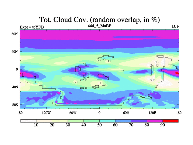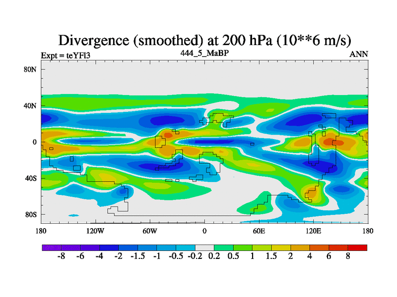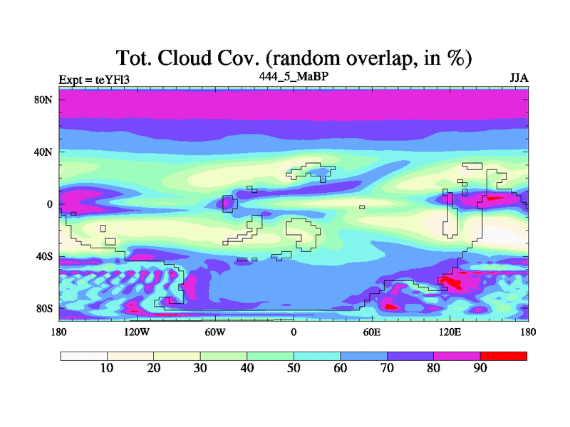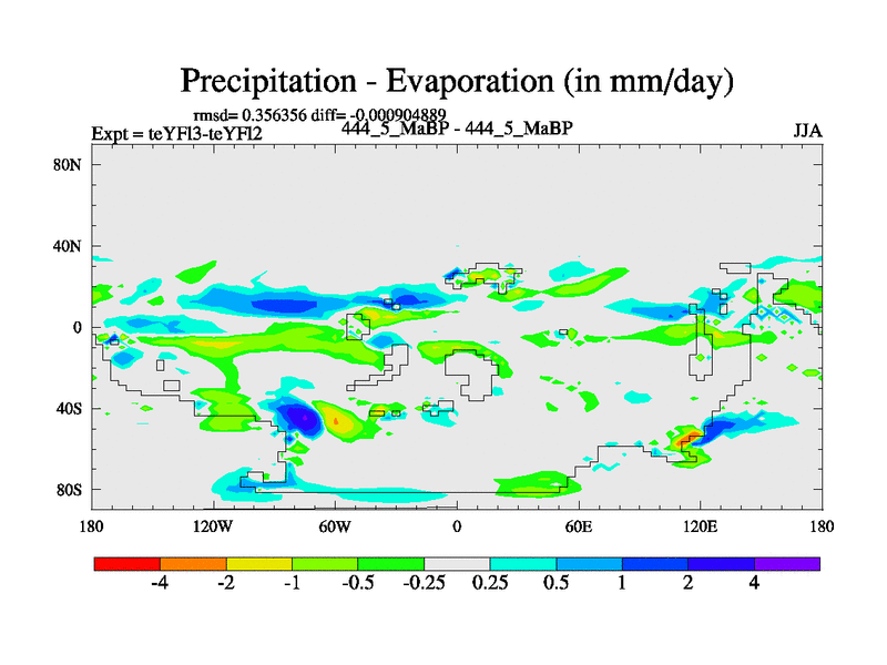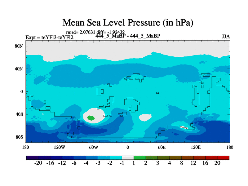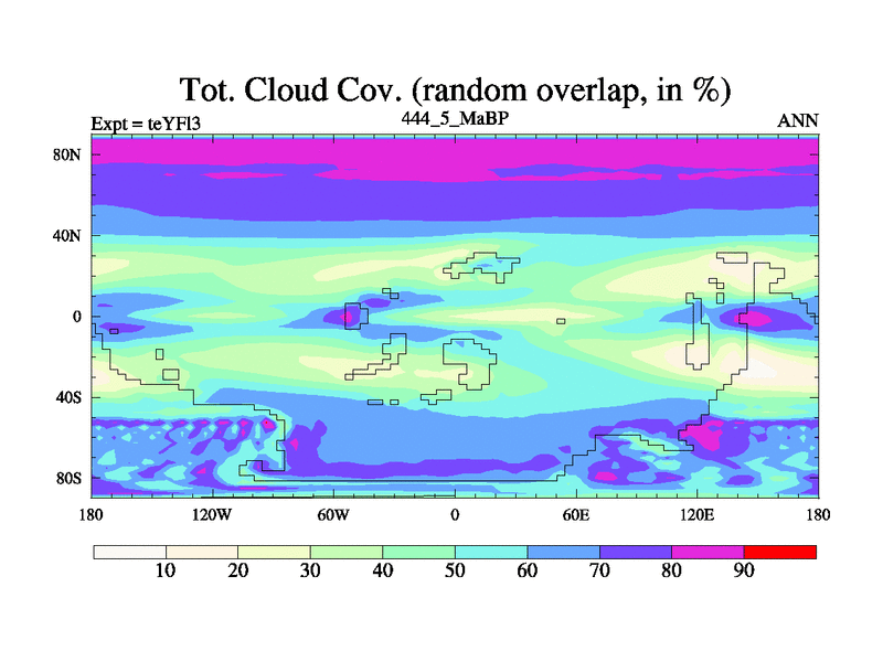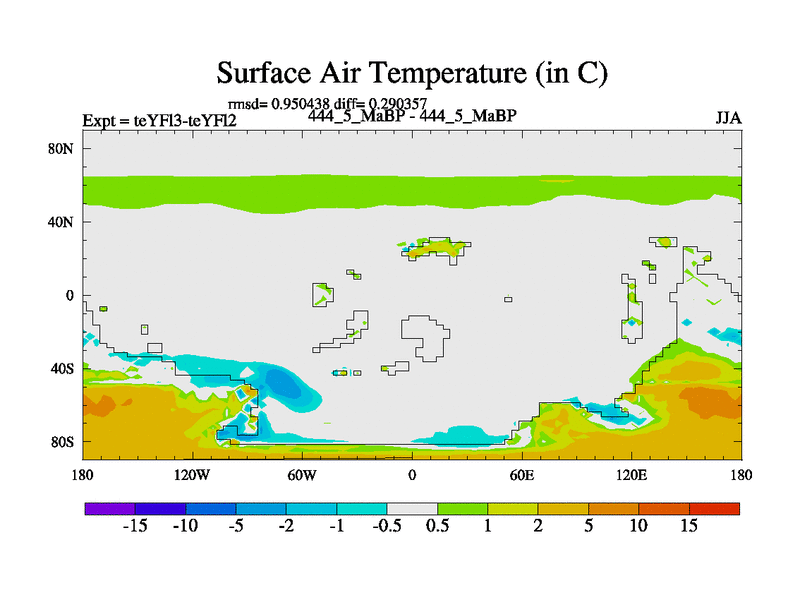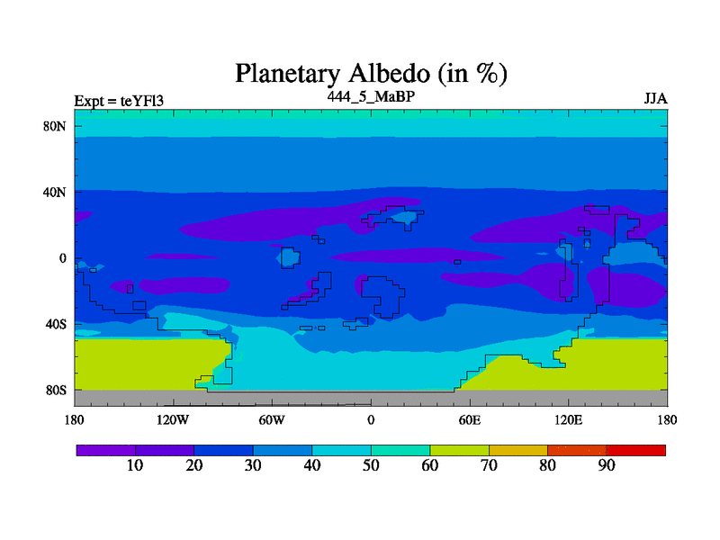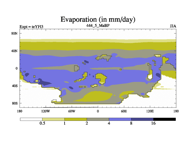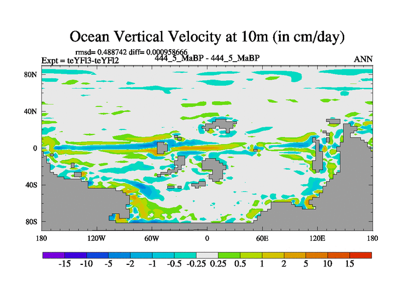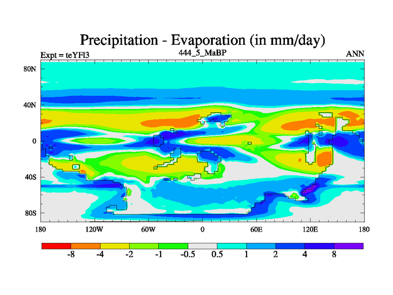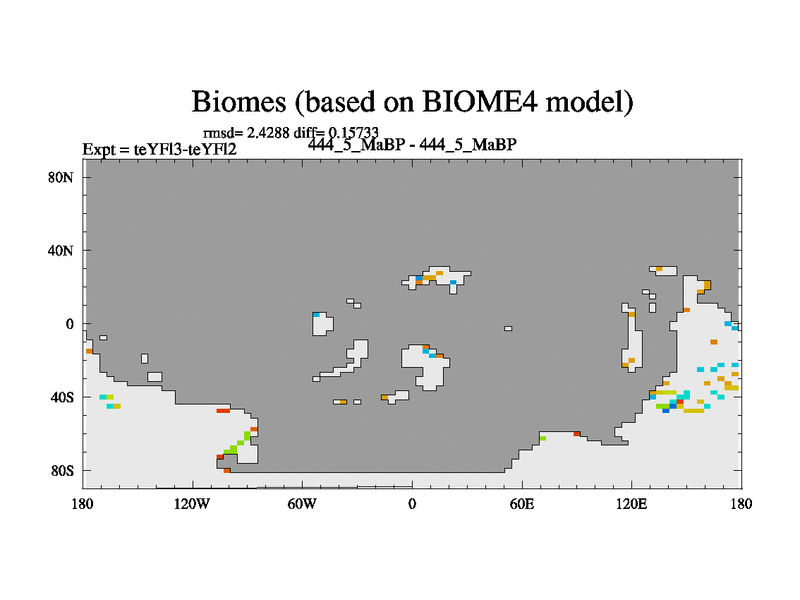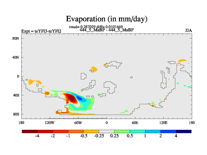 This is the 444.5 Ma simulation using the Scotese palaeogeographies and revised CCN etc. Updated HadCM3L ocean parameters and soil parameters. Also made sure orography gravity wave drag was consistent.