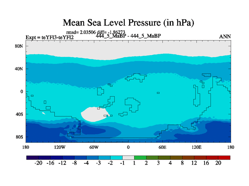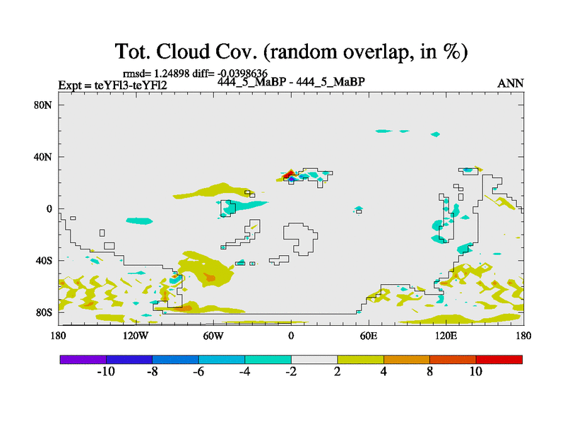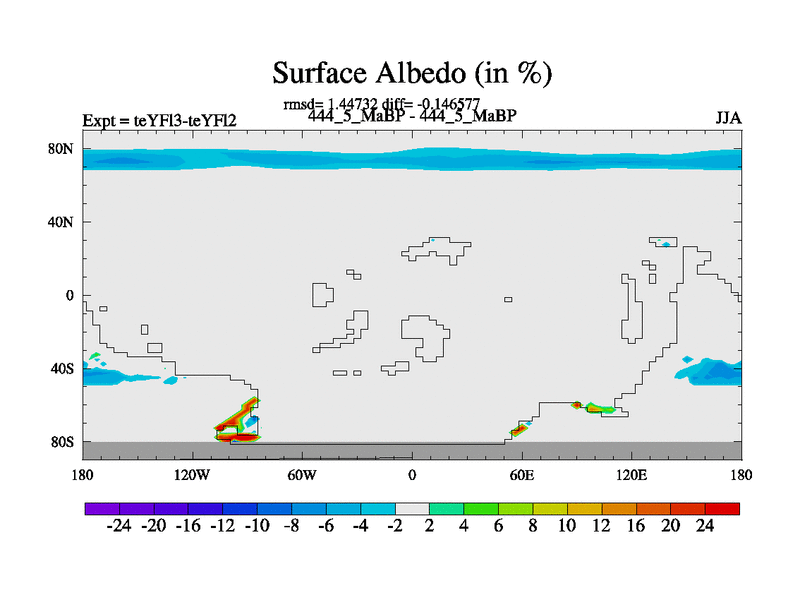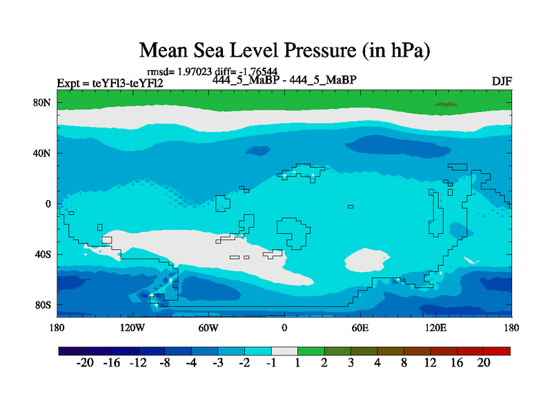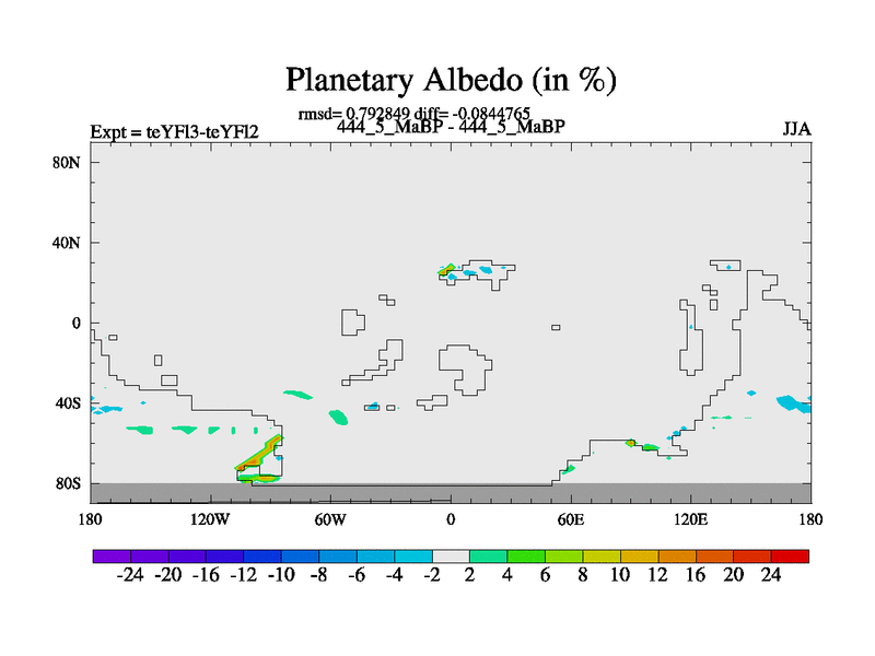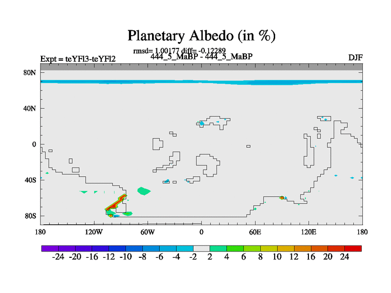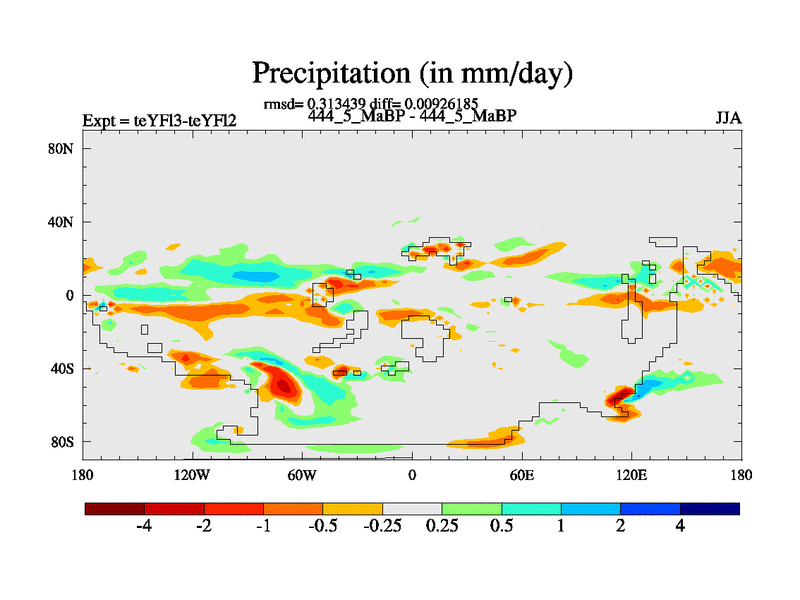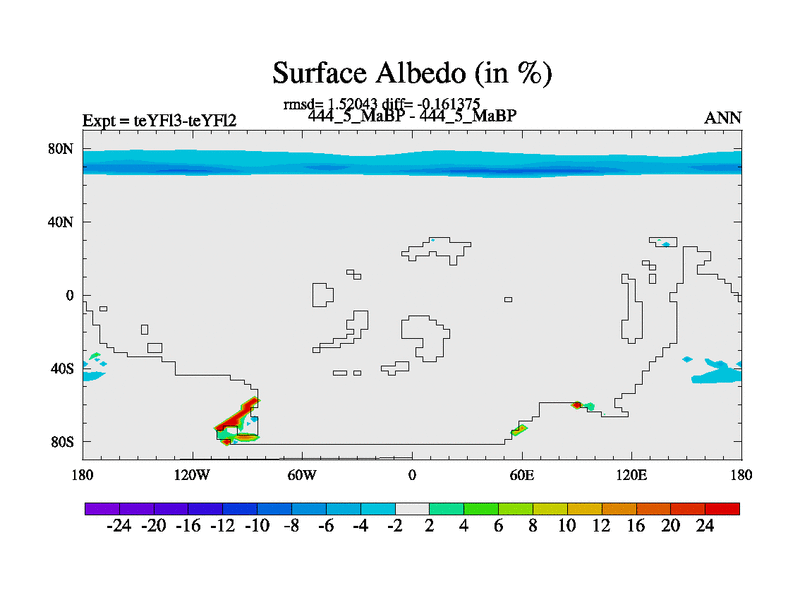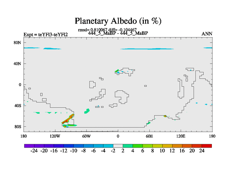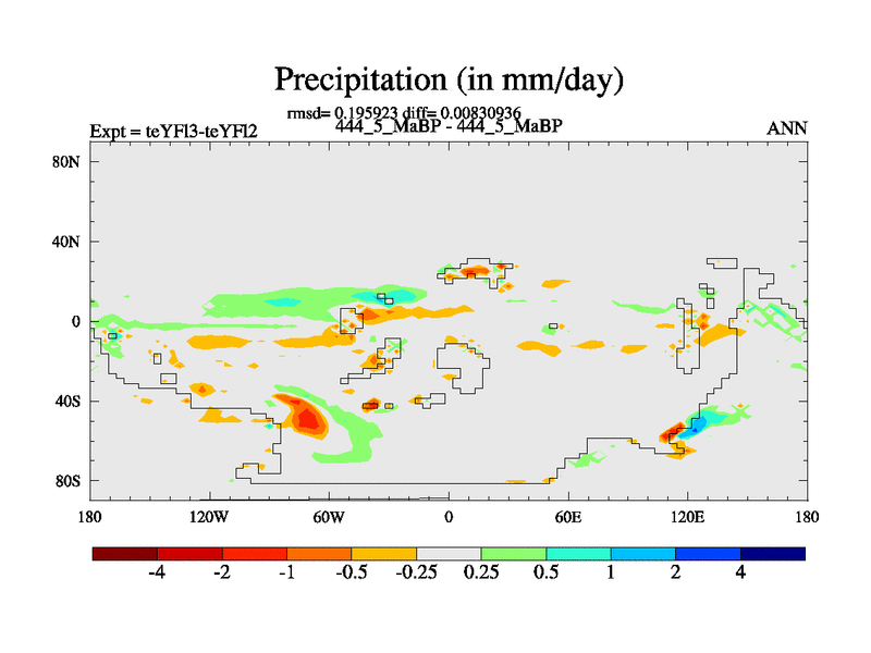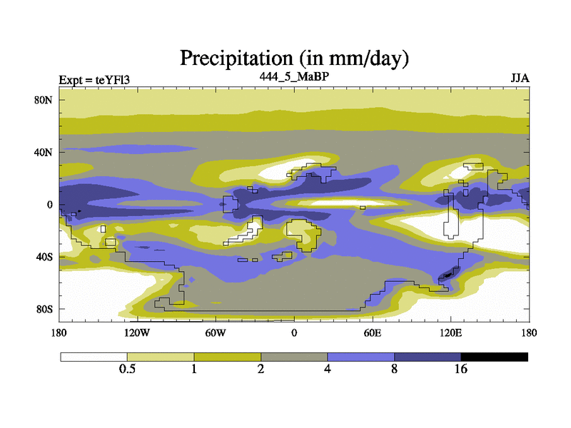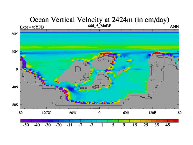 This is the 444.5 Ma simulation using the Scotese palaeogeographies and revised CCN etc. Updated HadCM3L ocean parameters and soil parameters. Also made sure orography gravity wave drag was consistent.