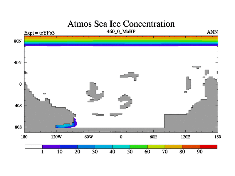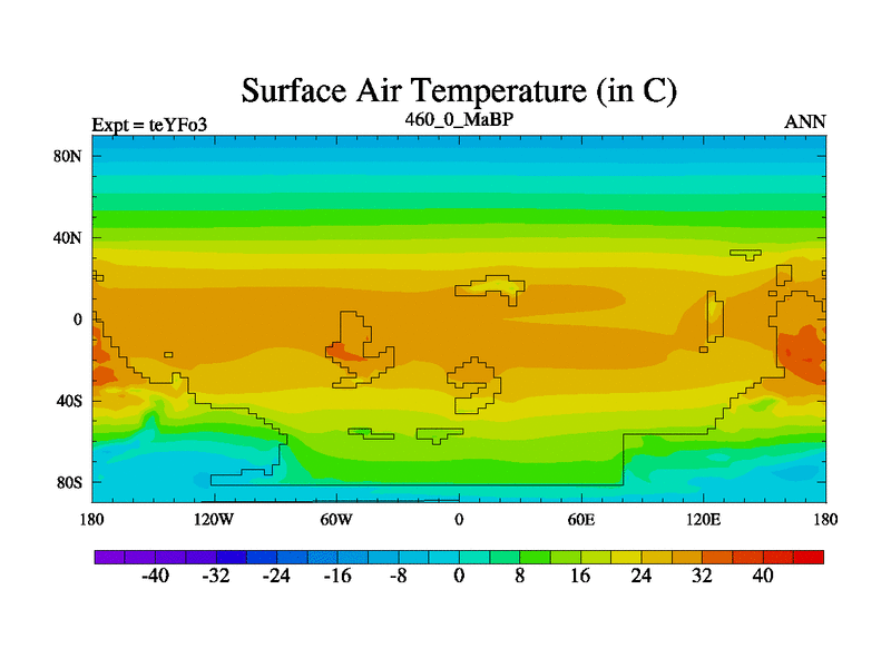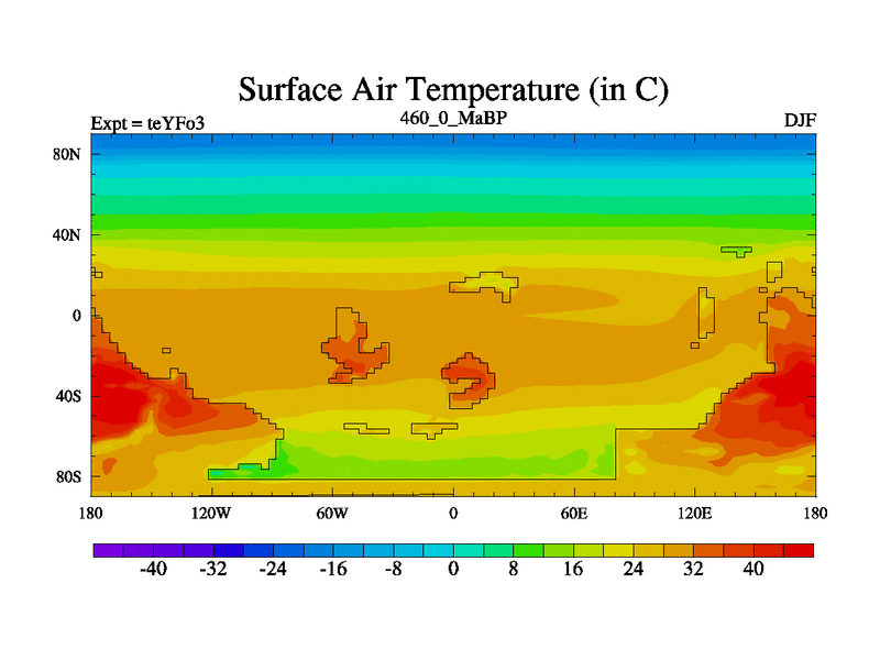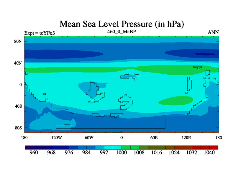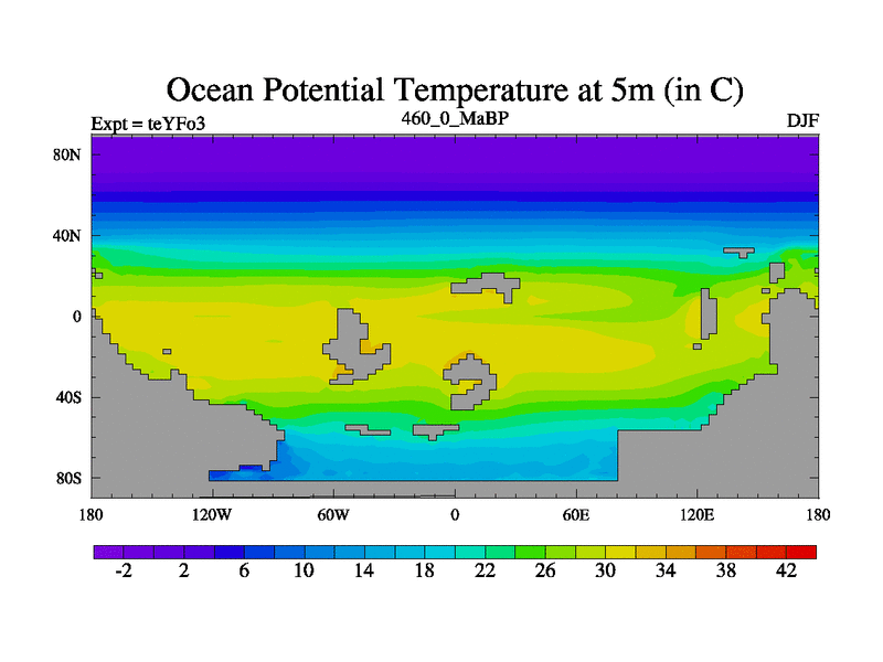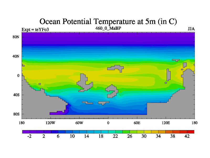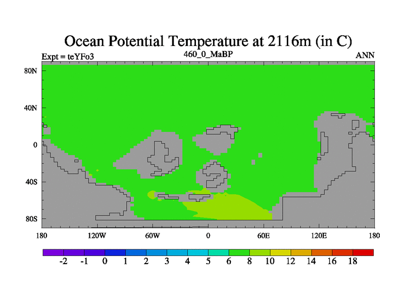 This is the 460.0 Ma simulation using the Scotese palaeogeographies and revised CCN etc. Updated HadCM3L ocean parameters and soil parameters. Also made sure orography gravity wave drag was consistent.