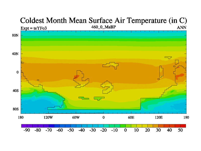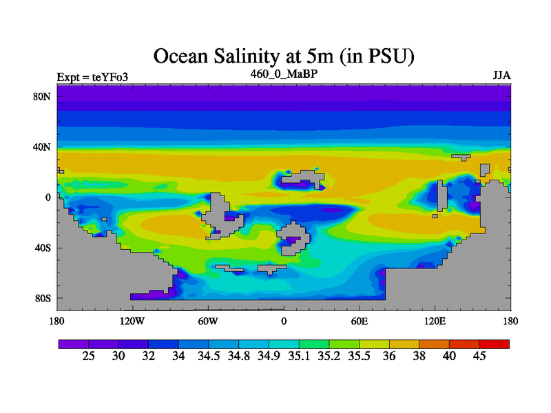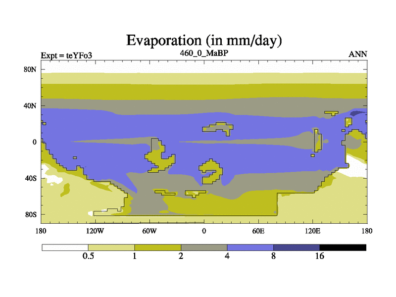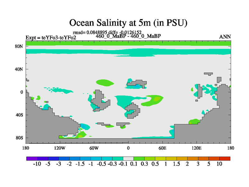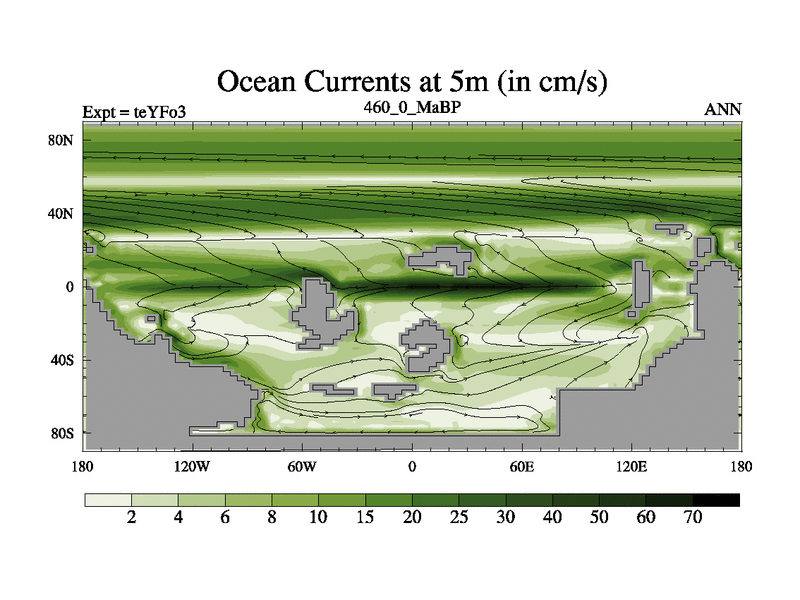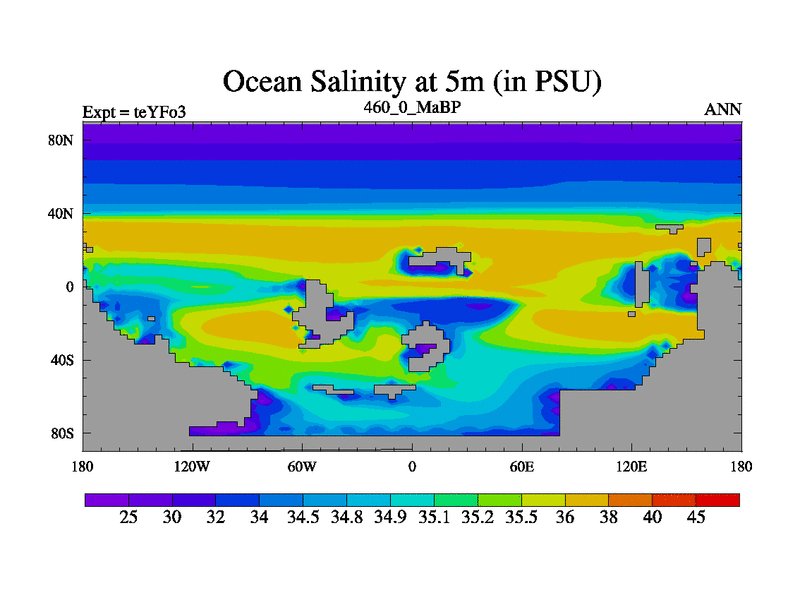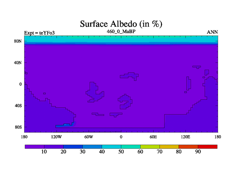 This is the 460.0 Ma simulation using the Scotese palaeogeographies and revised CCN etc. Updated HadCM3L ocean parameters and soil parameters. Also made sure orography gravity wave drag was consistent.