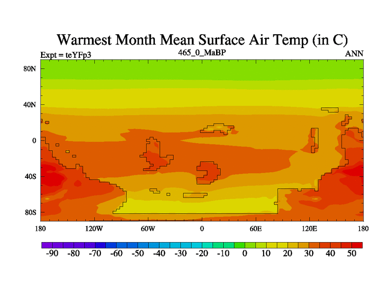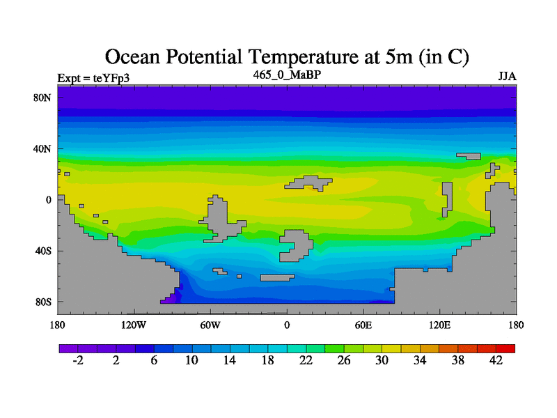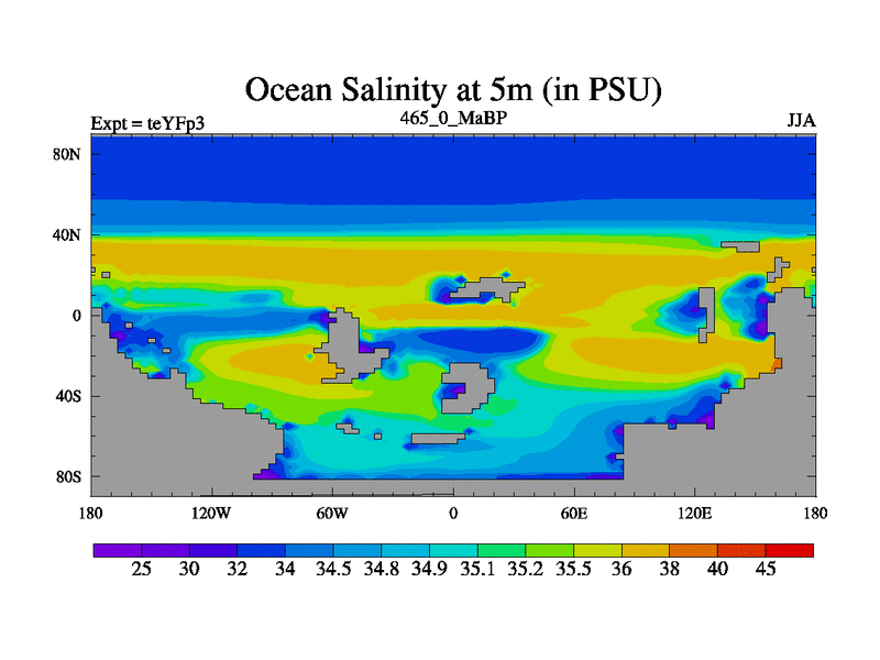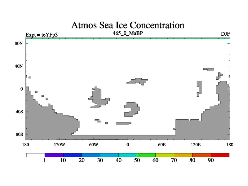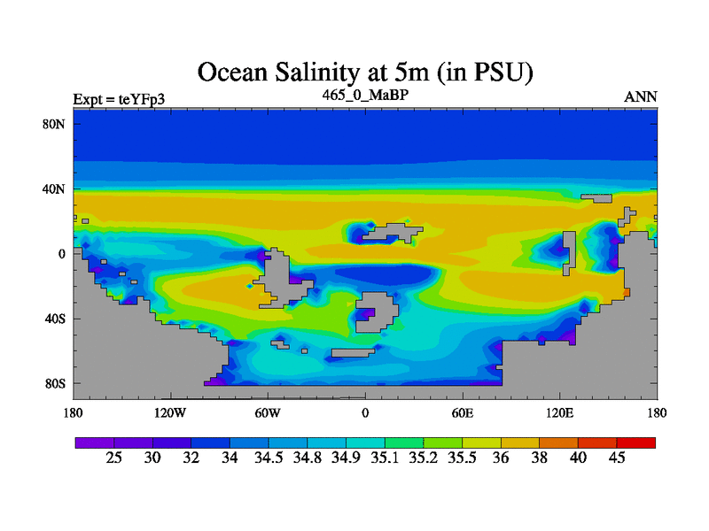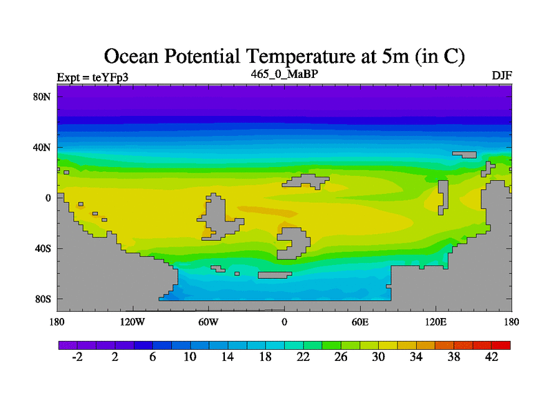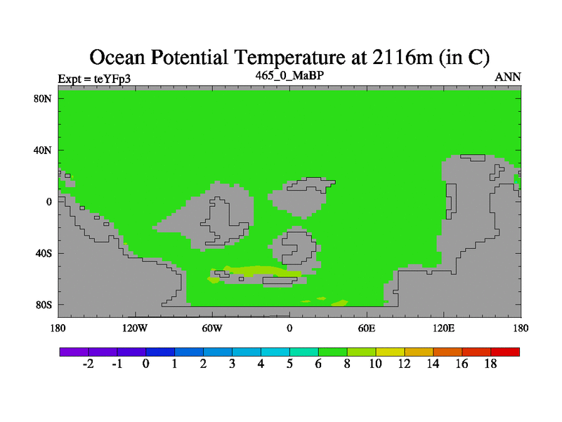 This is the 465.0 Ma simulation using the Scotese palaeogeographies and revised CCN etc. Updated HadCM3L ocean parameters and soil parameters. Also made sure orography gravity wave drag was consistent.