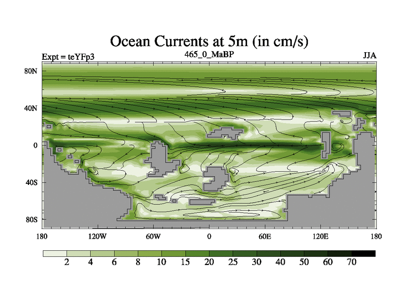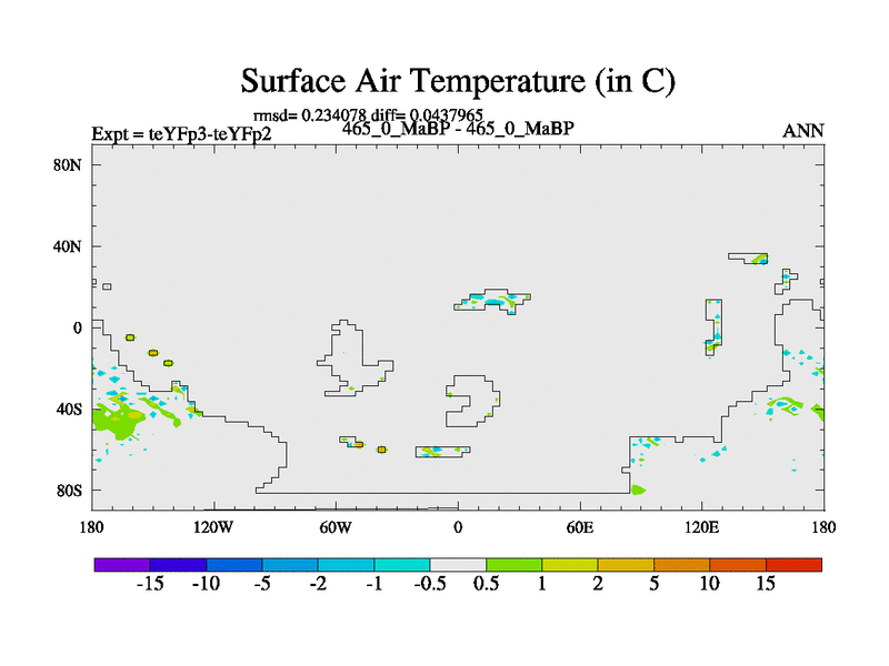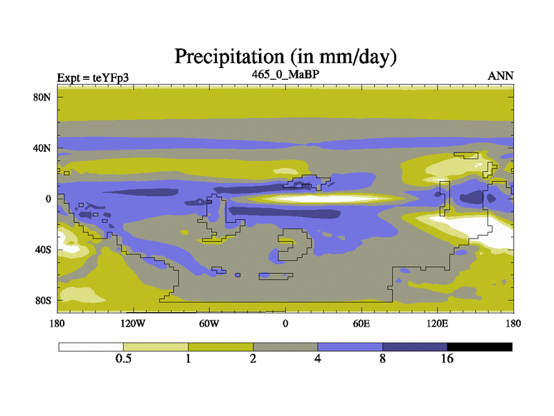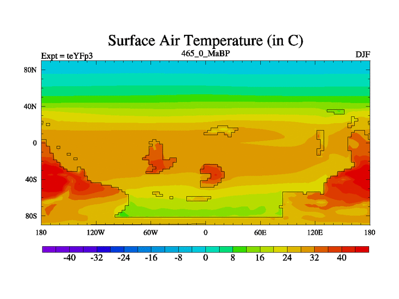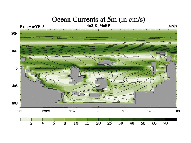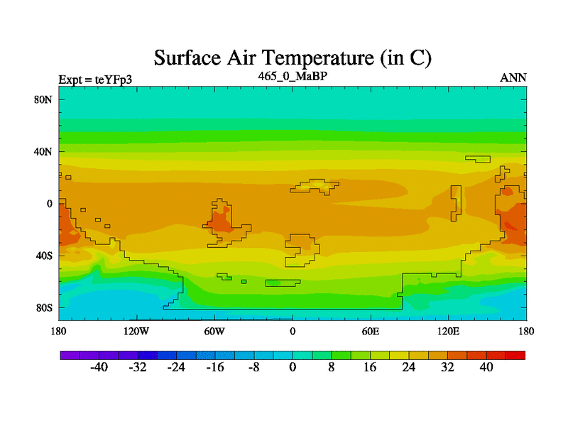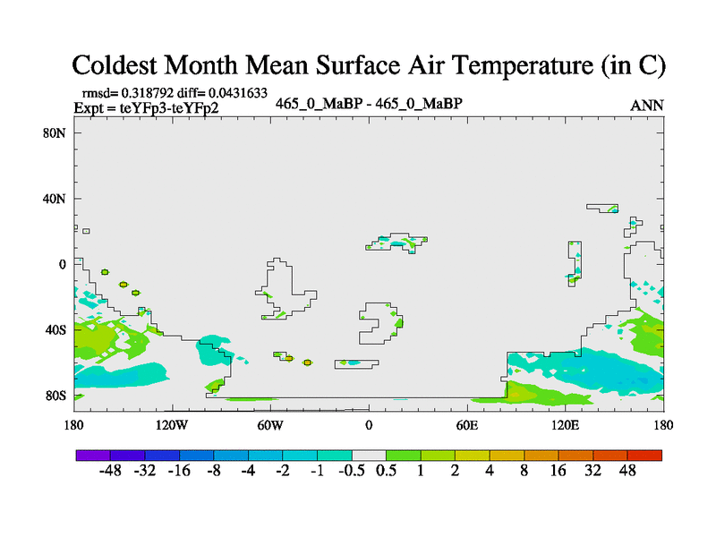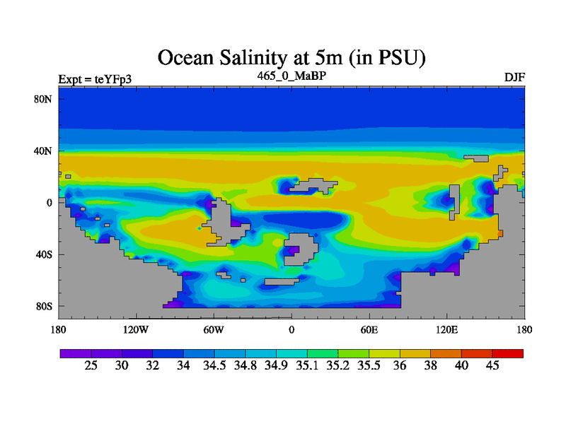 This is the 465.0 Ma simulation using the Scotese palaeogeographies and revised CCN etc. Updated HadCM3L ocean parameters and soil parameters. Also made sure orography gravity wave drag was consistent.