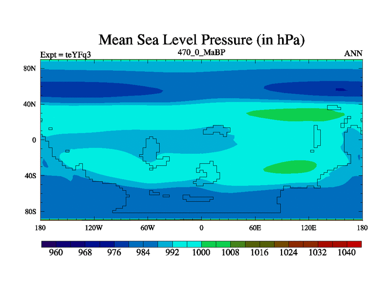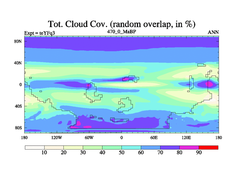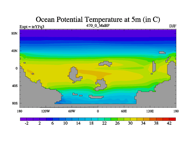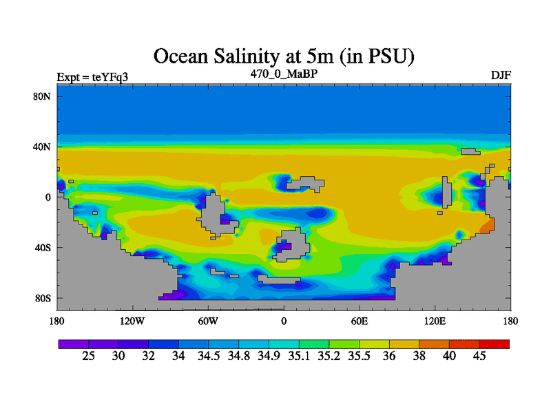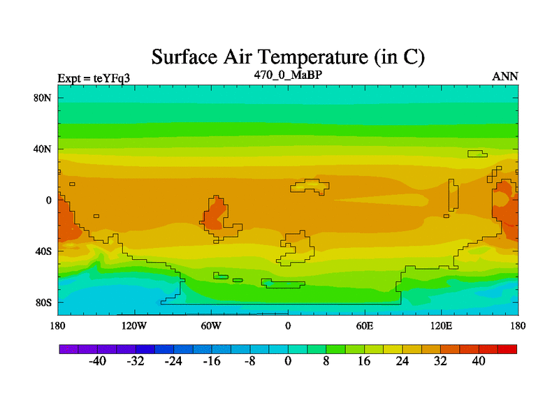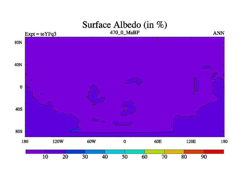 This is the 470.0 Ma simulation using the Scotese palaeogeographies and revised CCN etc. Updated HadCM3L ocean parameters and soil parameters. Also made sure orography gravity wave drag was consistent.