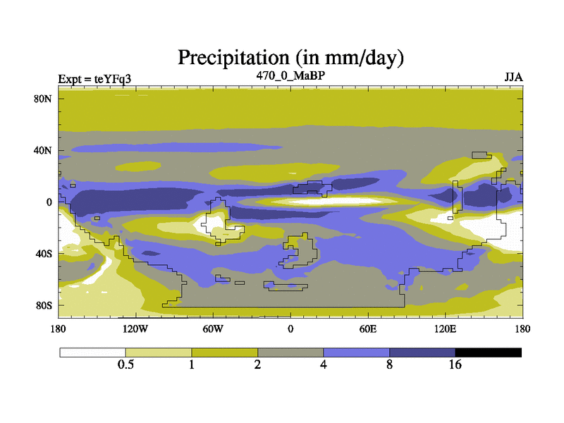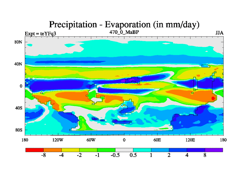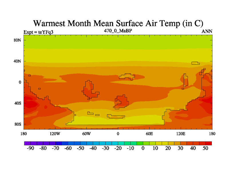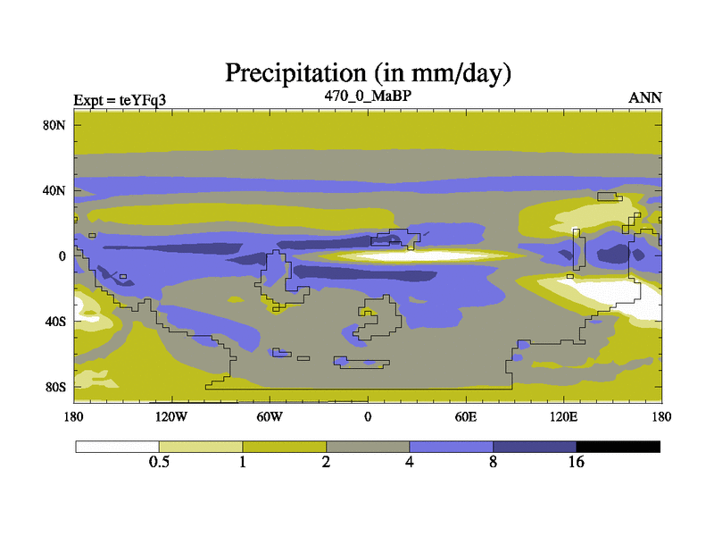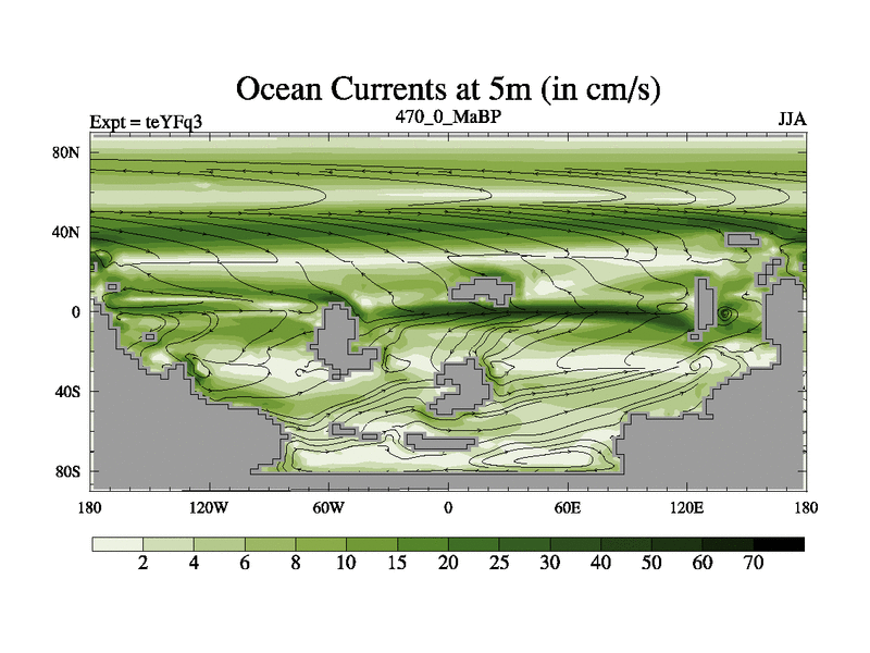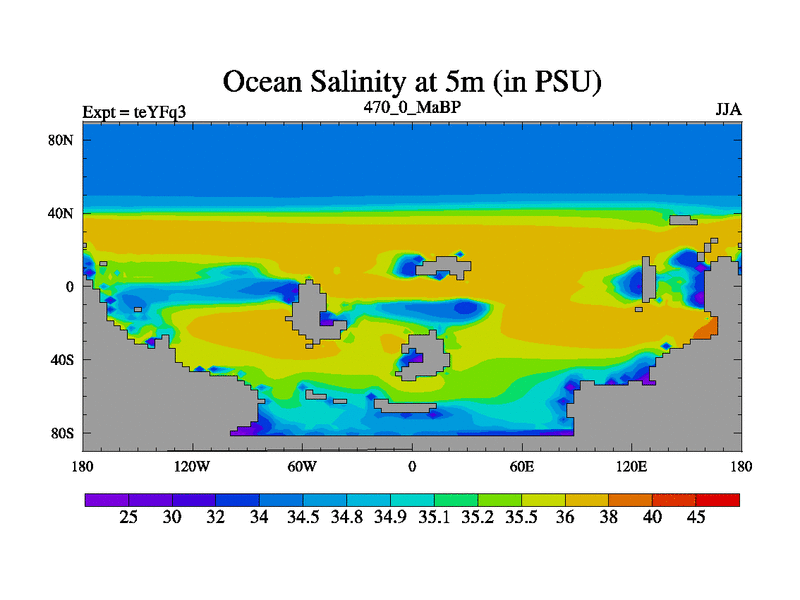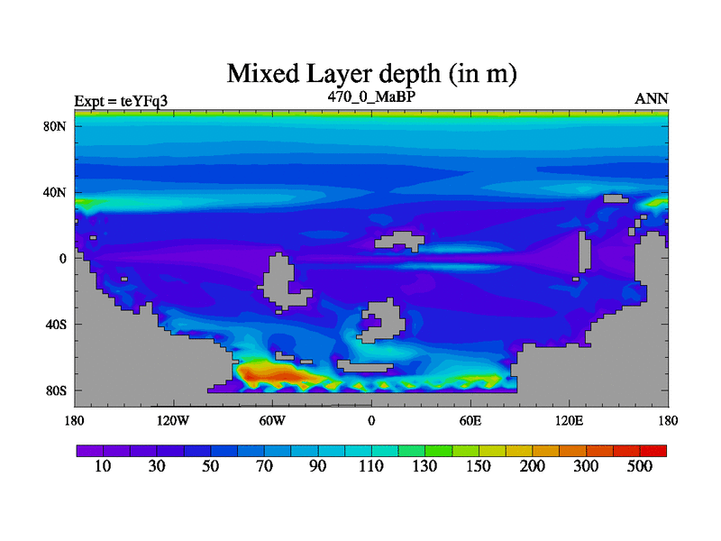 This is the 470.0 Ma simulation using the Scotese palaeogeographies and revised CCN etc. Updated HadCM3L ocean parameters and soil parameters. Also made sure orography gravity wave drag was consistent.