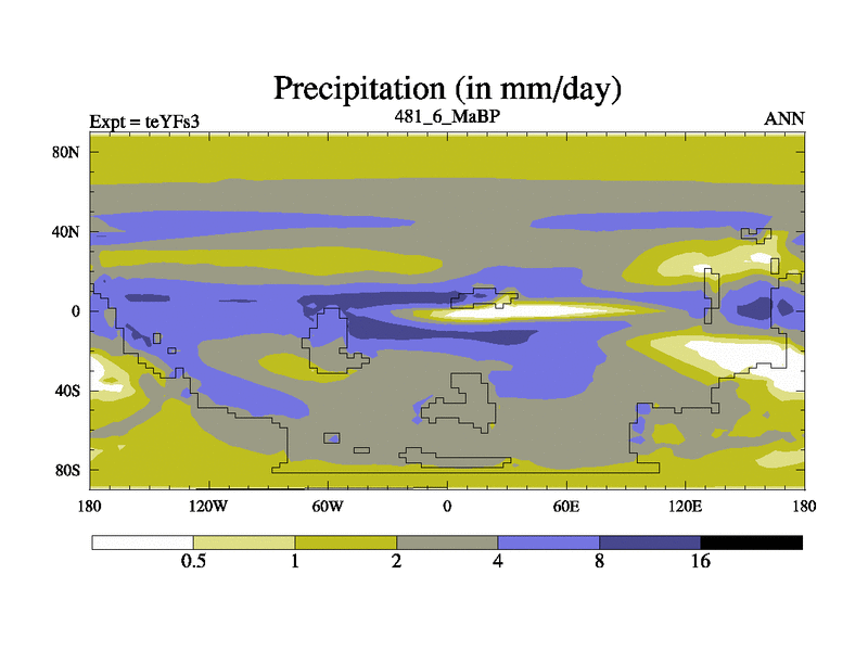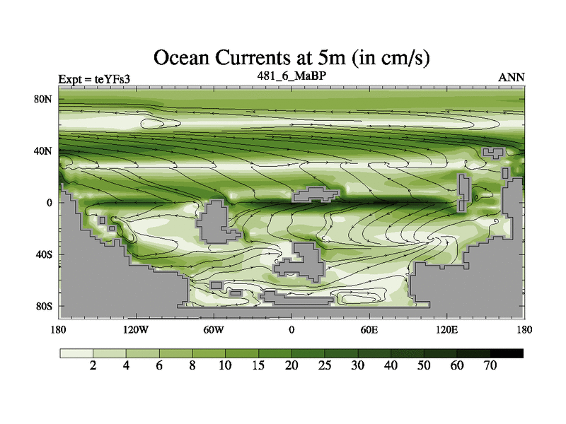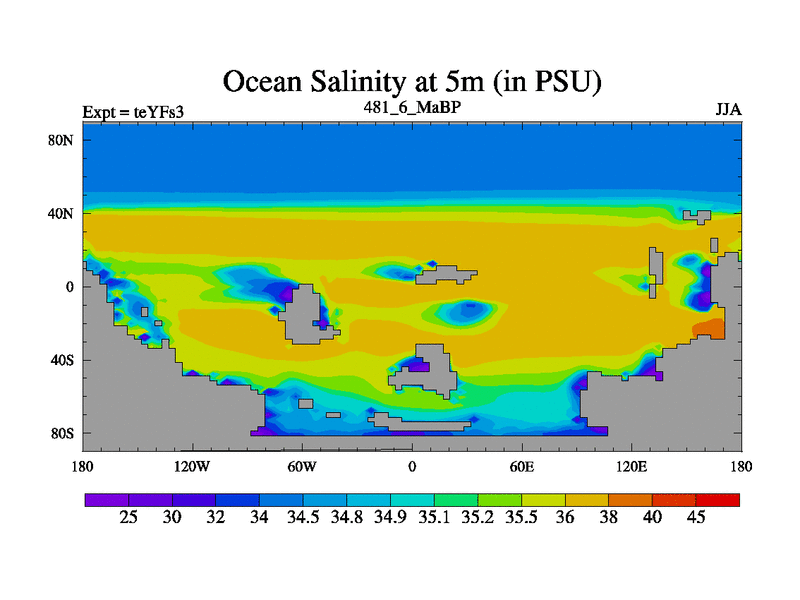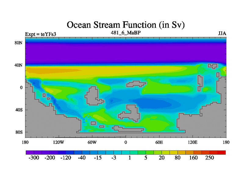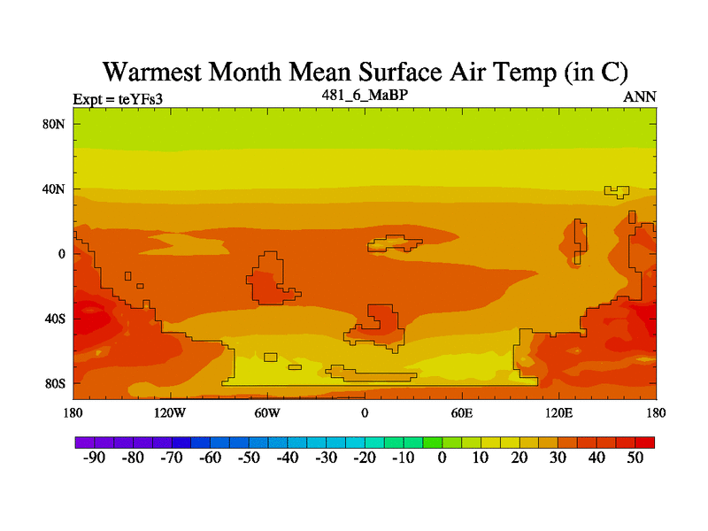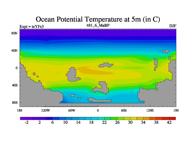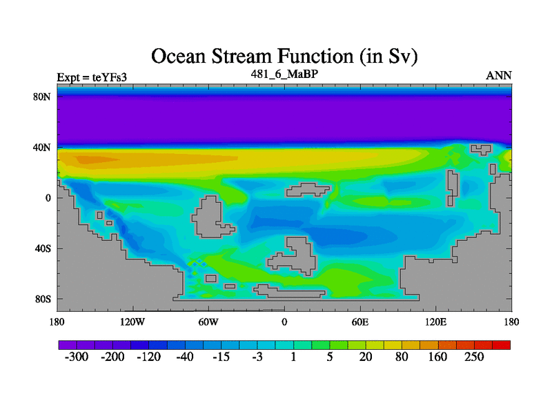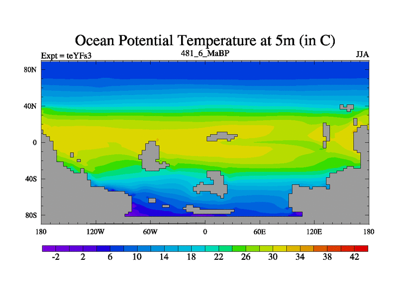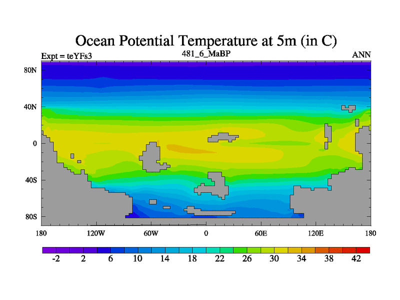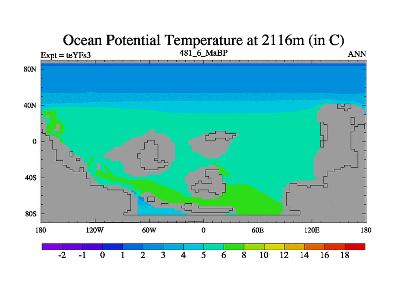 This is the 481.6 Ma simulation using the Scotese palaeogeographies and revised CCN etc. Updated HadCM3L ocean parameters and soil parameters. Also made sure orography gravity wave drag was consistent.