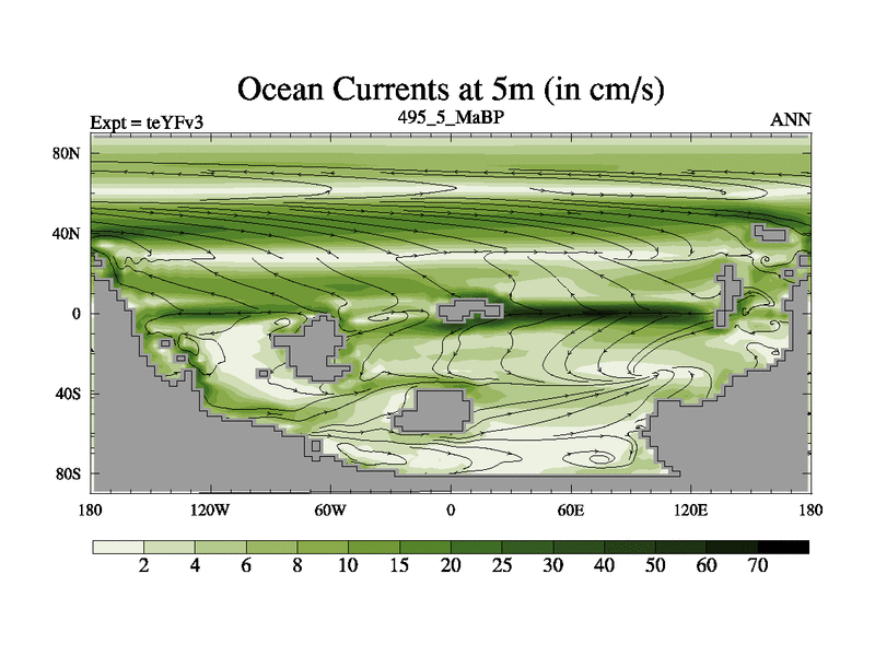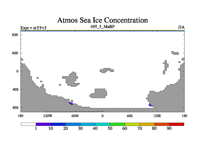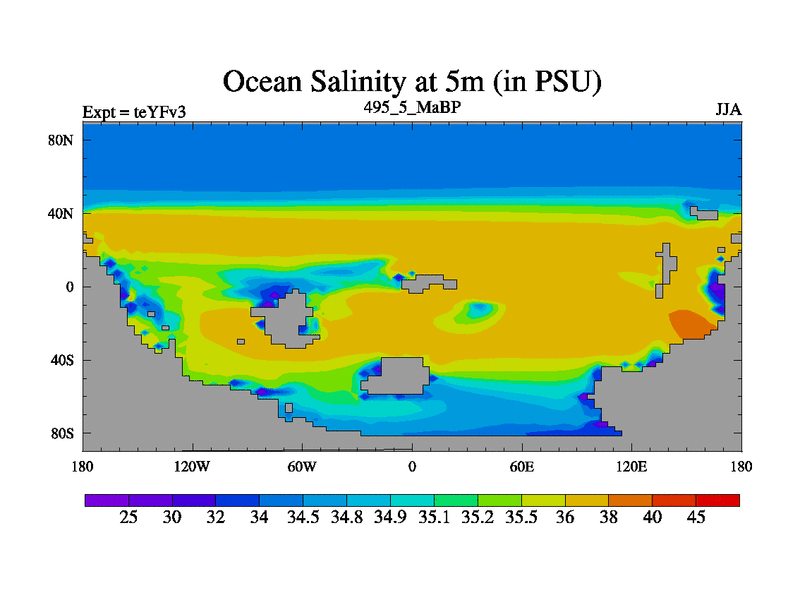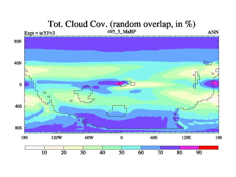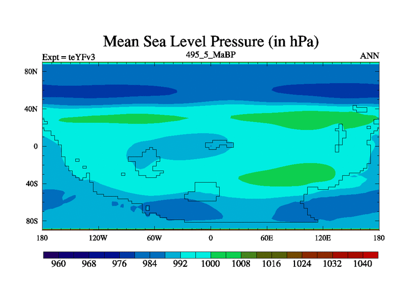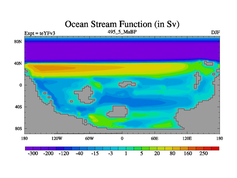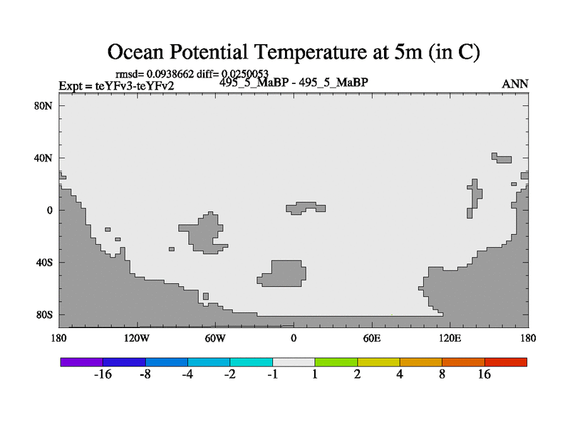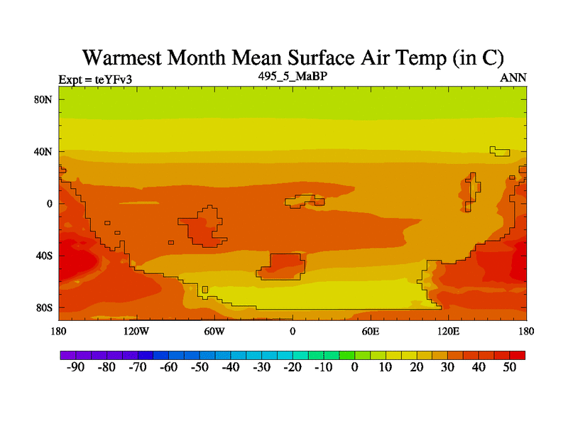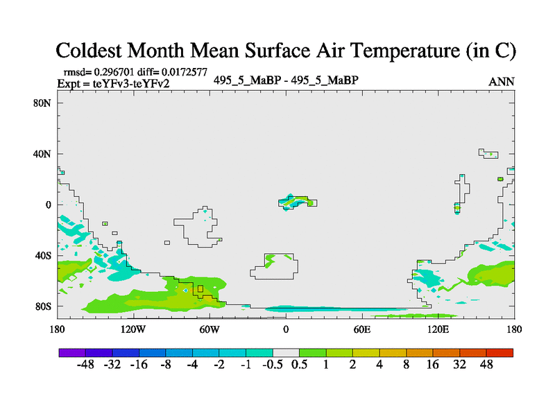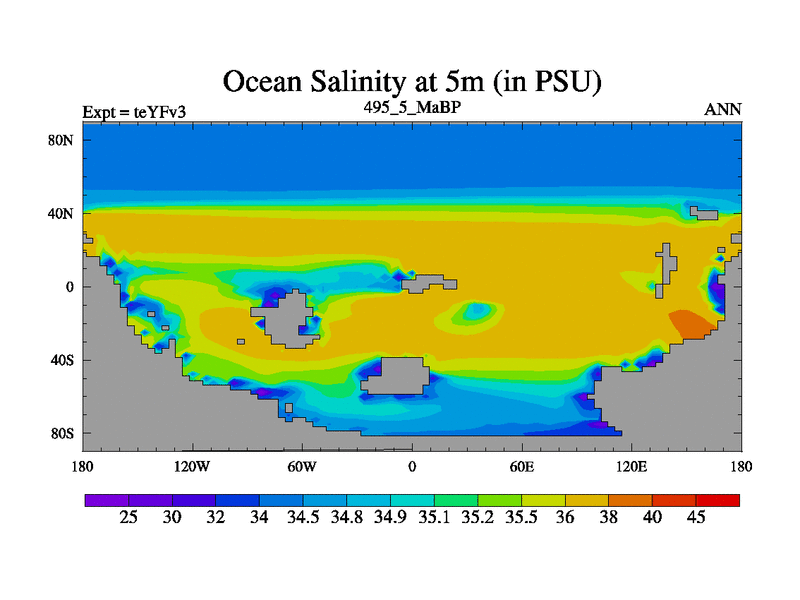 This is the 495.5 Ma simulation using the Scotese palaeogeographies and revised CCN etc. Updated HadCM3L ocean parameters and soil parameters. Also made sure orography gravity wave drag was consistent.