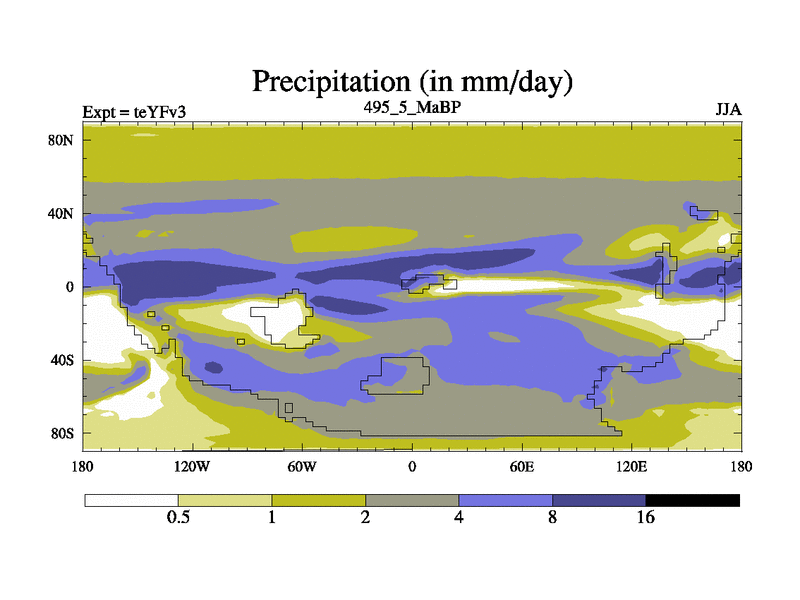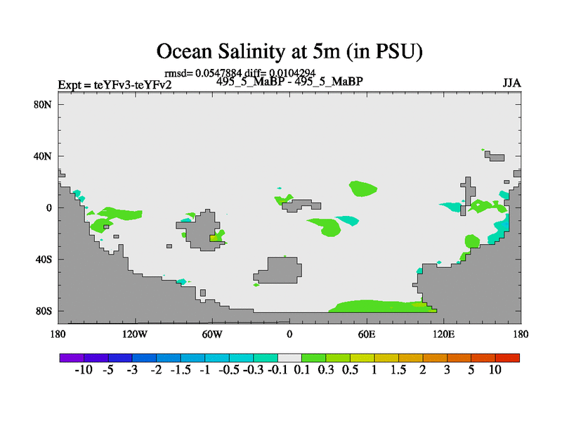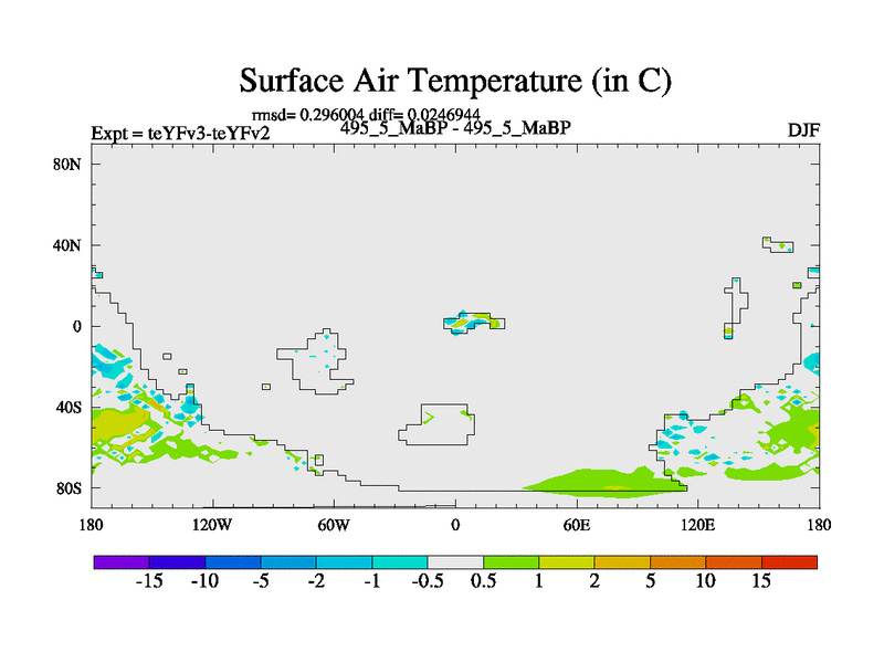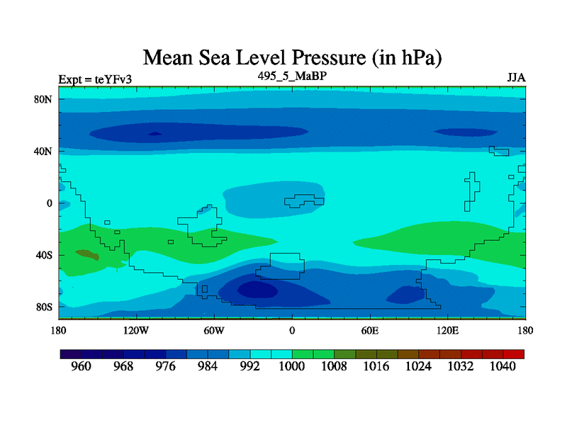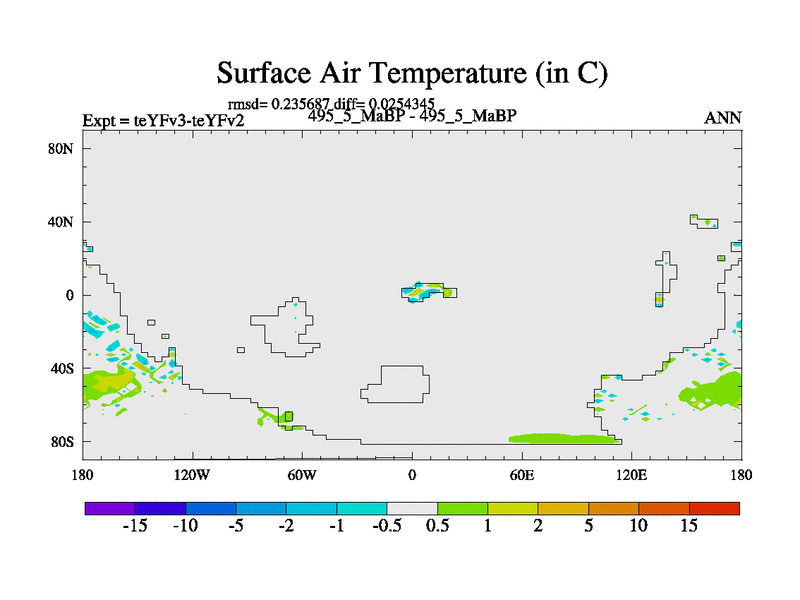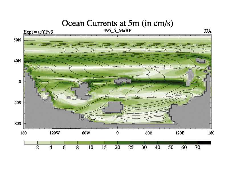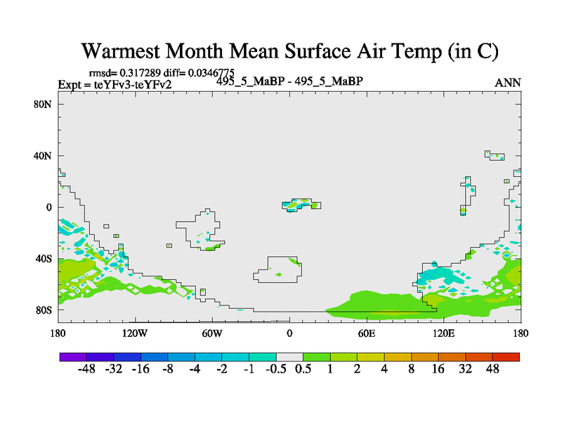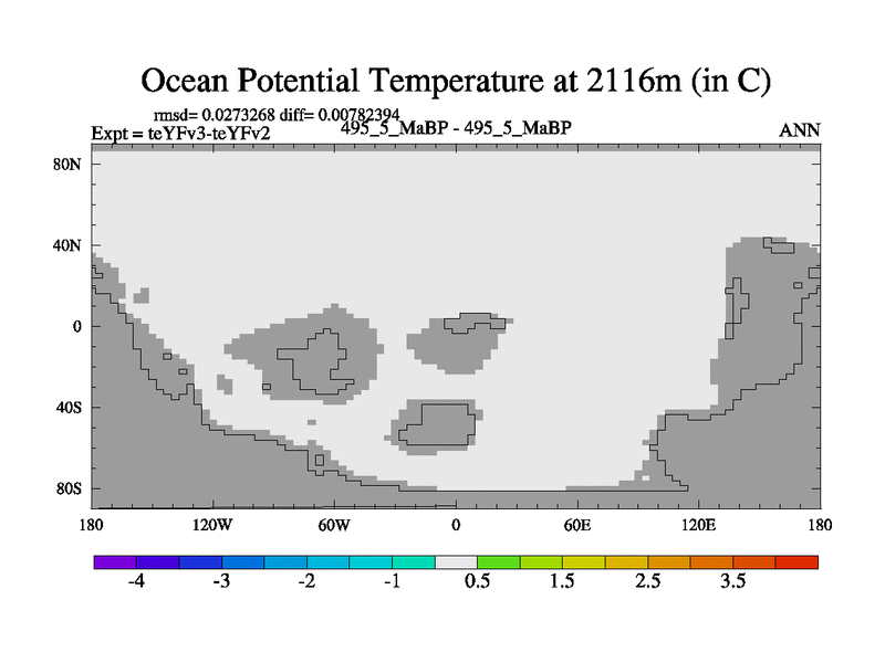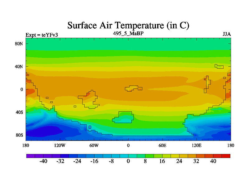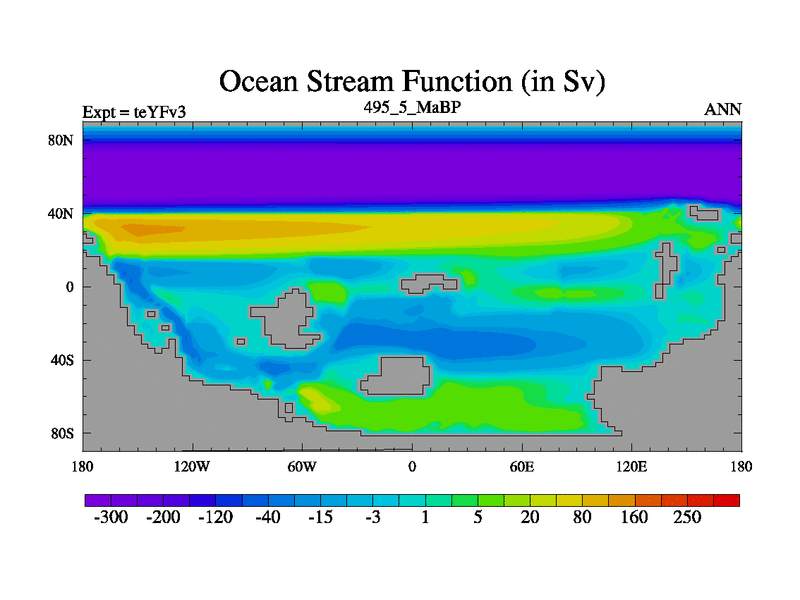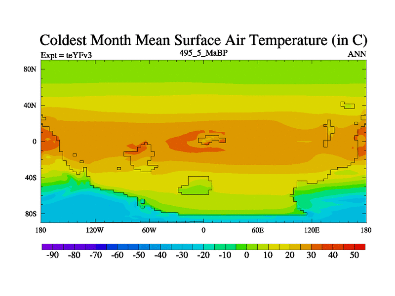 This is the 495.5 Ma simulation using the Scotese palaeogeographies and revised CCN etc. Updated HadCM3L ocean parameters and soil parameters. Also made sure orography gravity wave drag was consistent.