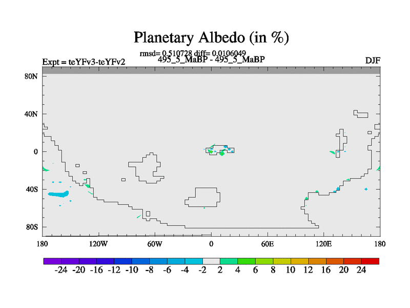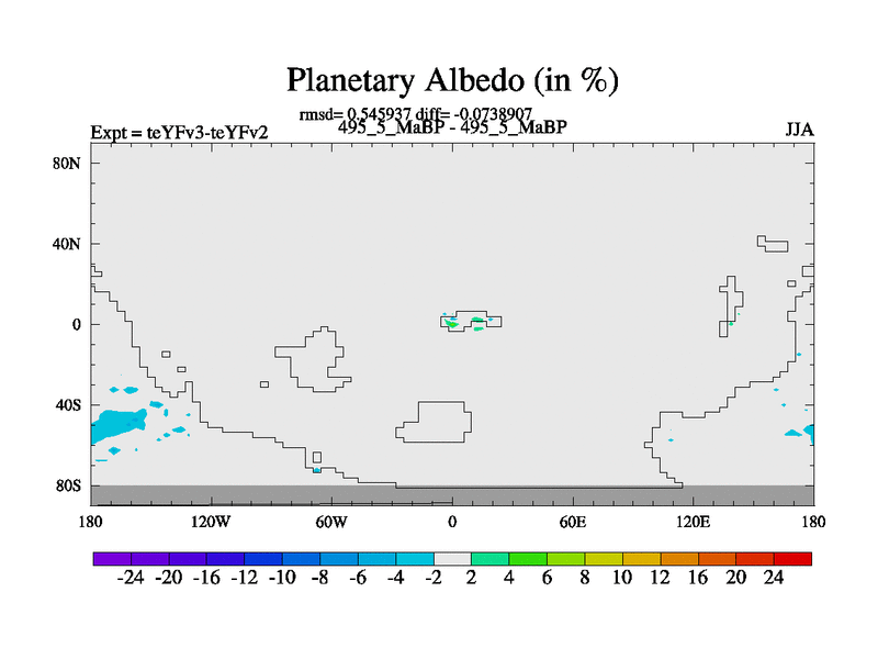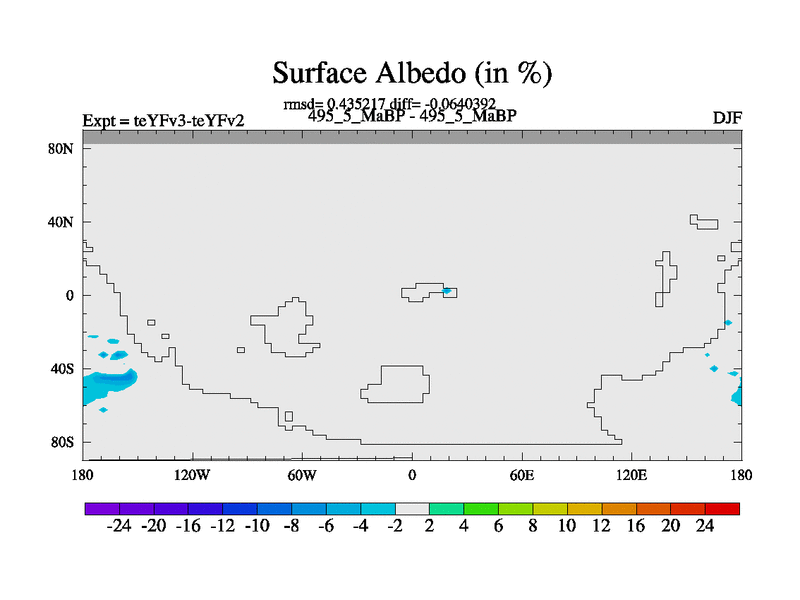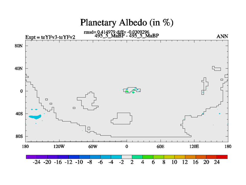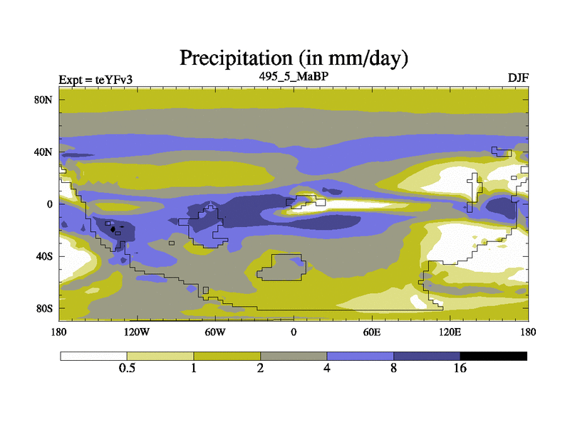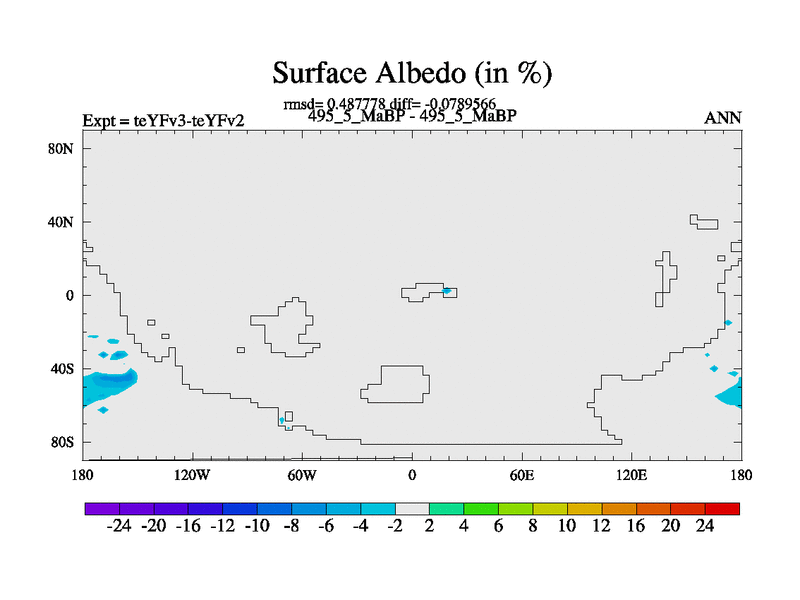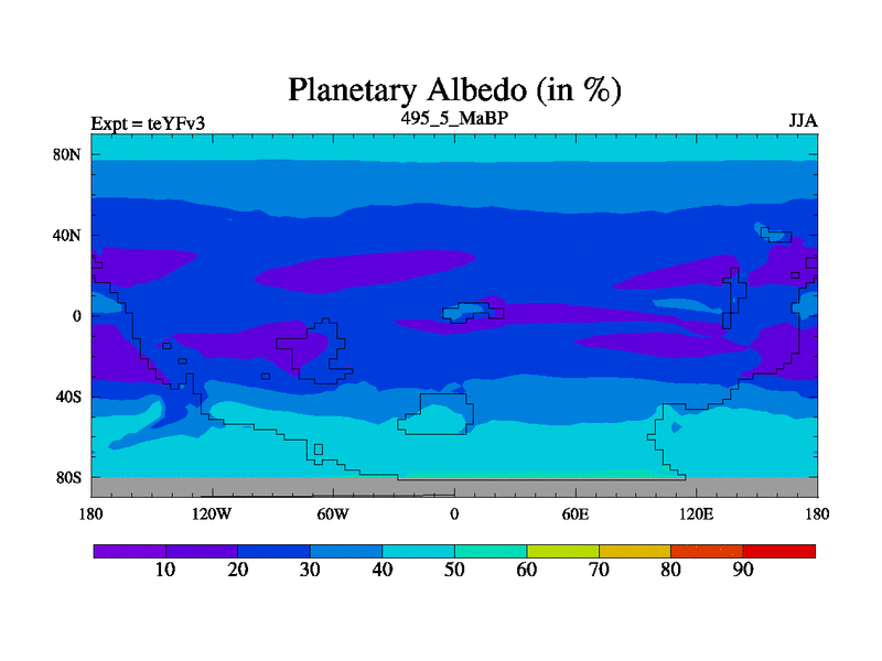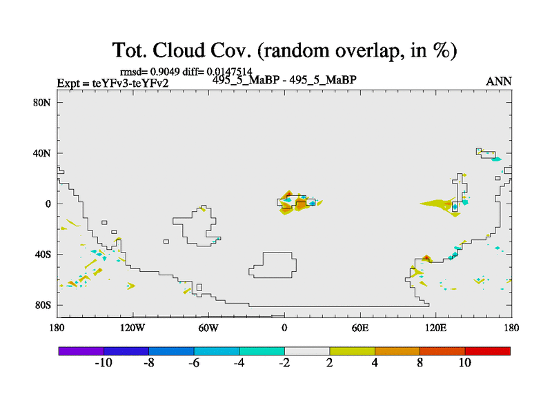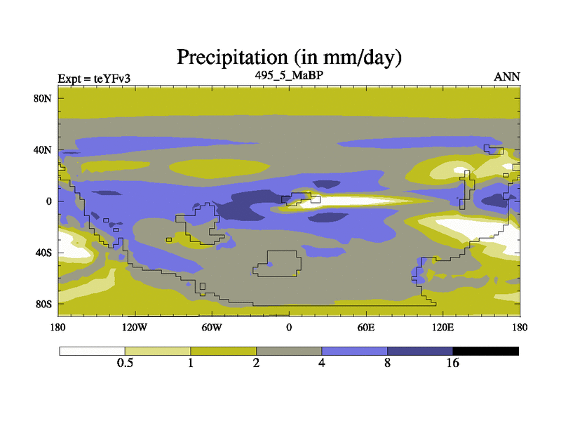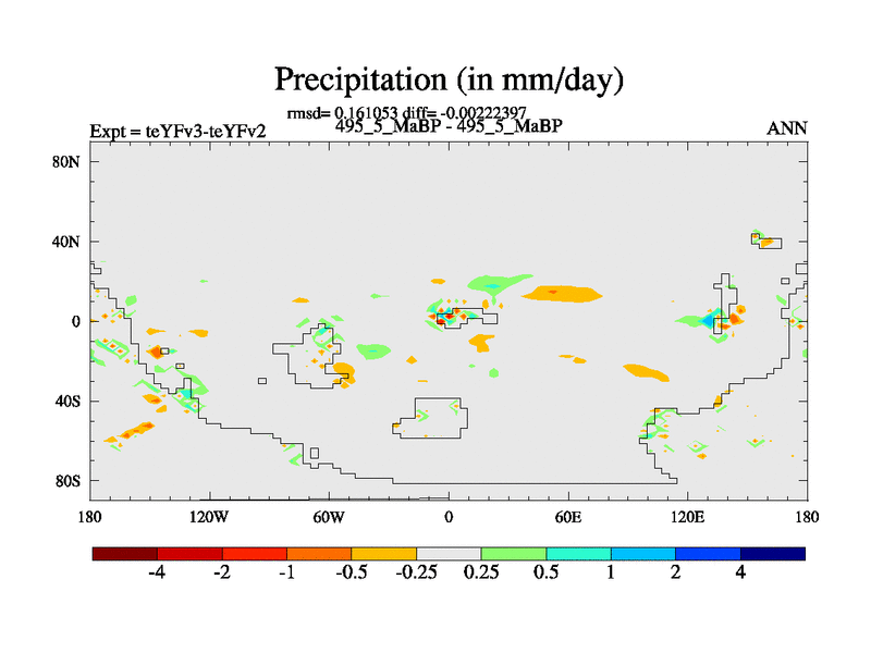This is the 495.5 Ma simulation using the Scotese palaeogeographies and revised CCN etc. Updated HadCM3L ocean parameters and soil parameters. Also made sure orography gravity wave drag was consistent.