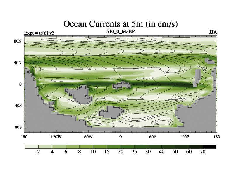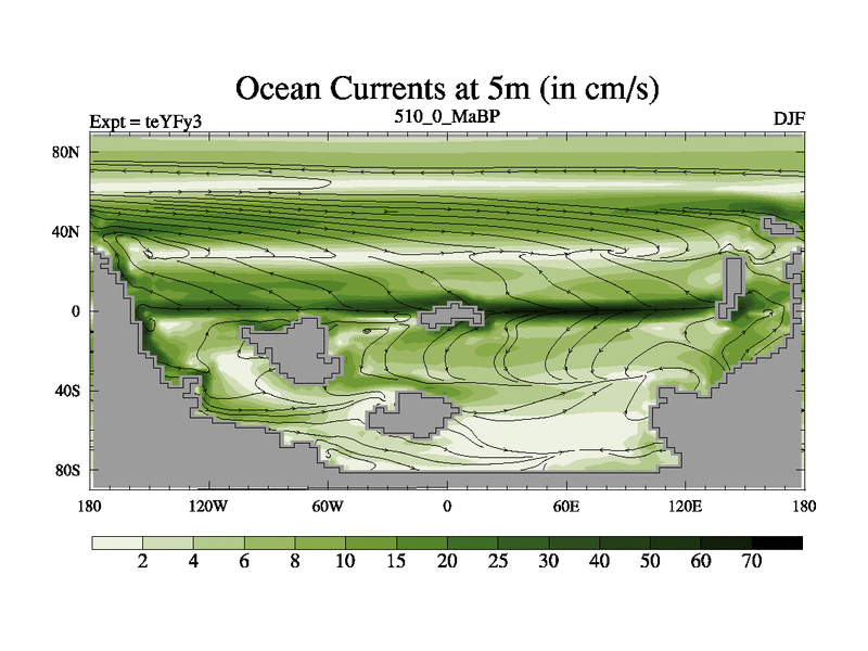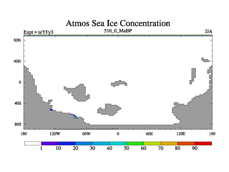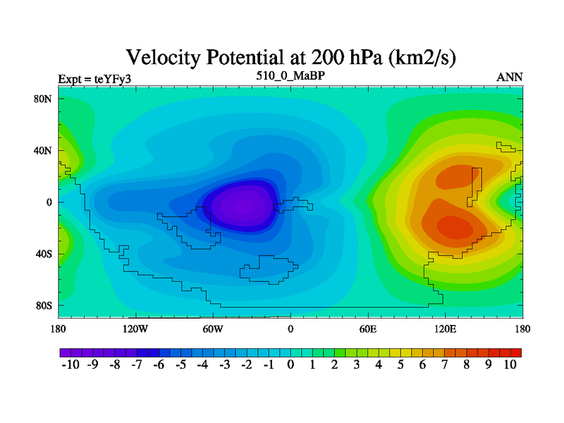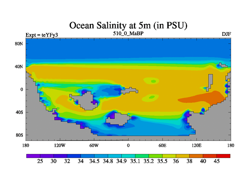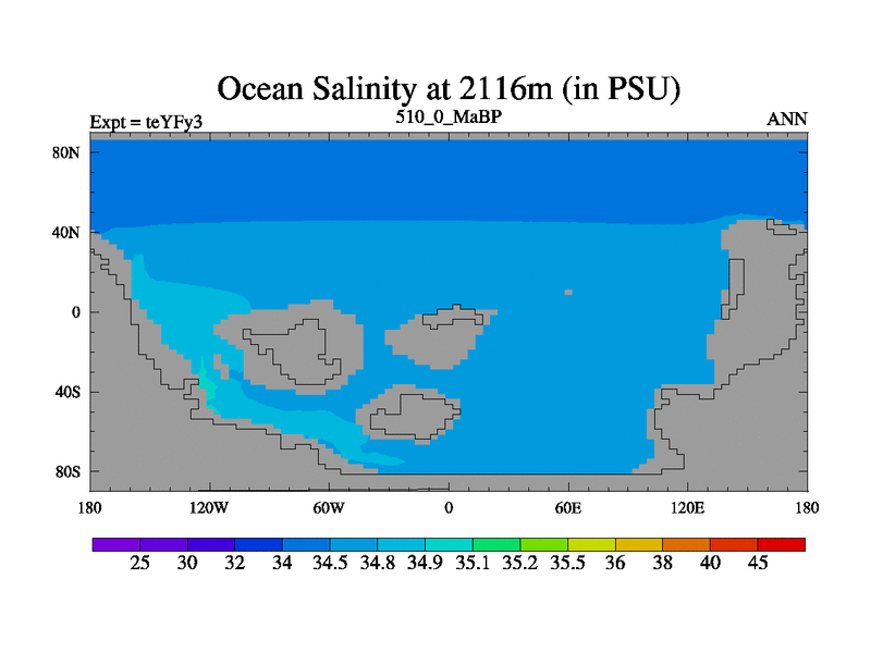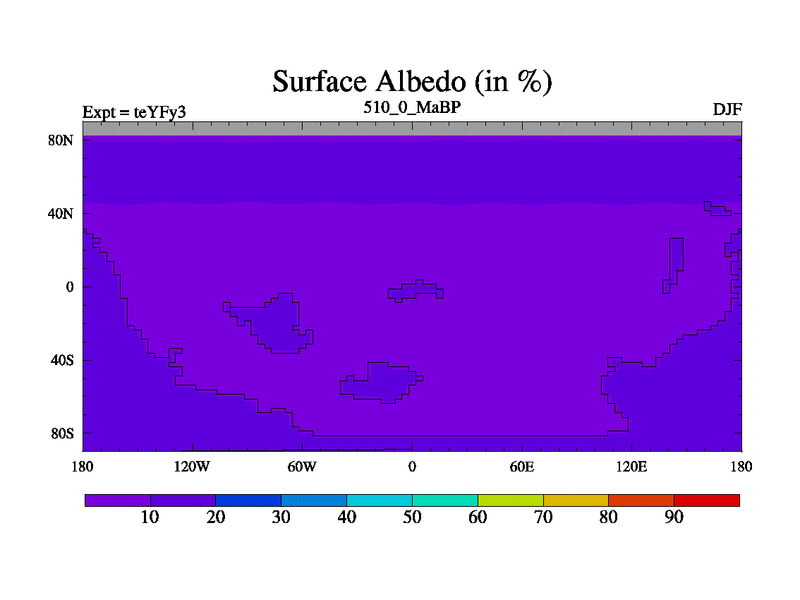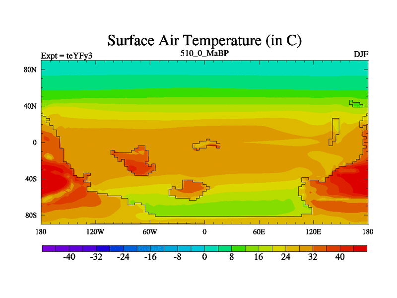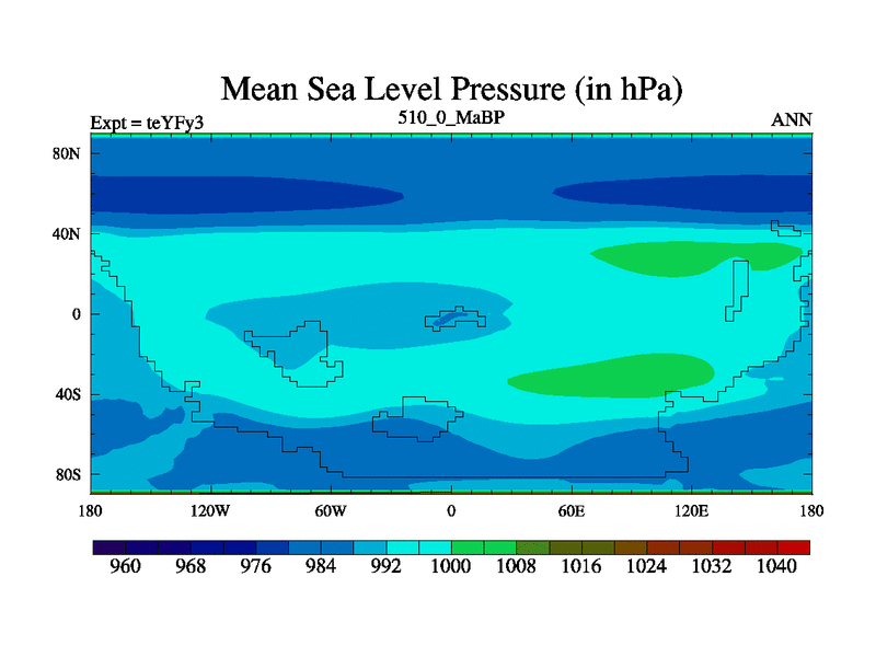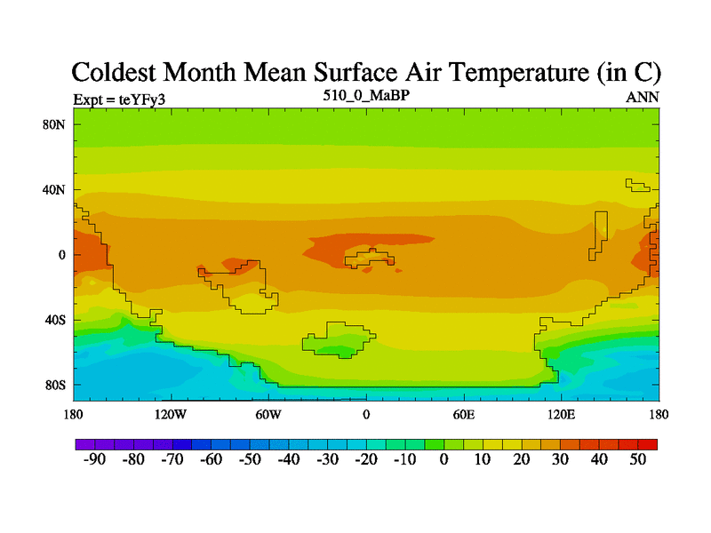 This is the 510.0 Ma simulation using the Scotese palaeogeographies and revised CCN etc. Updated HadCM3L ocean parameters and soil parameters. Also made sure orography gravity wave drag was consistent.