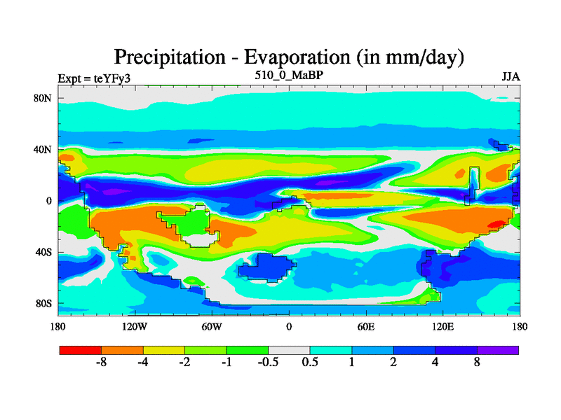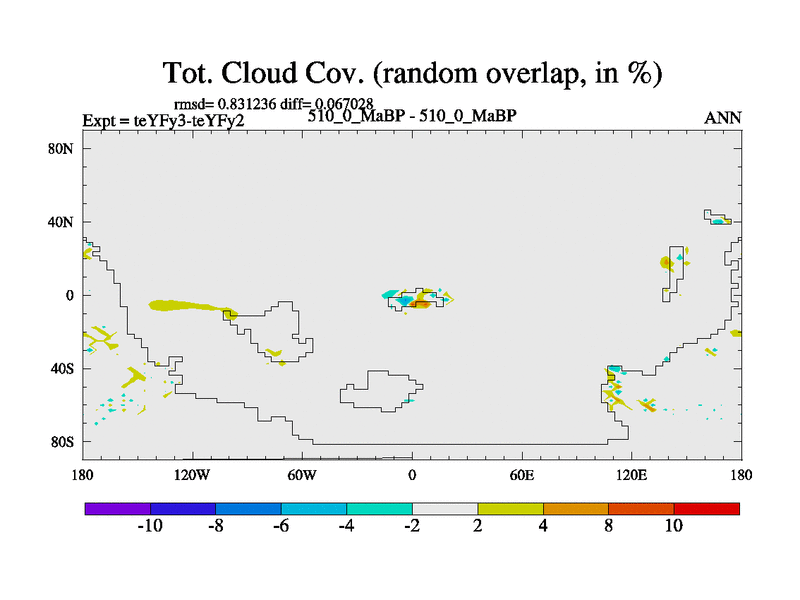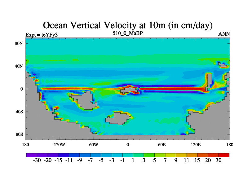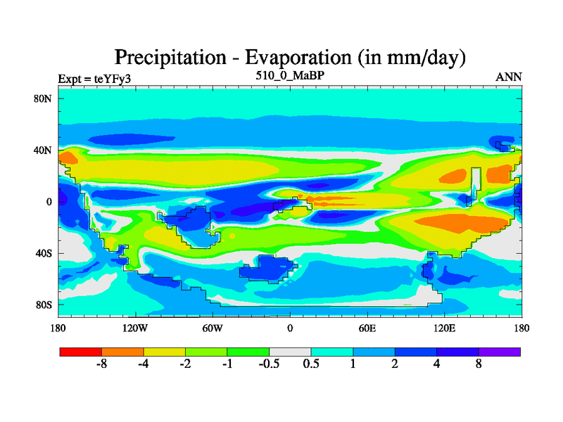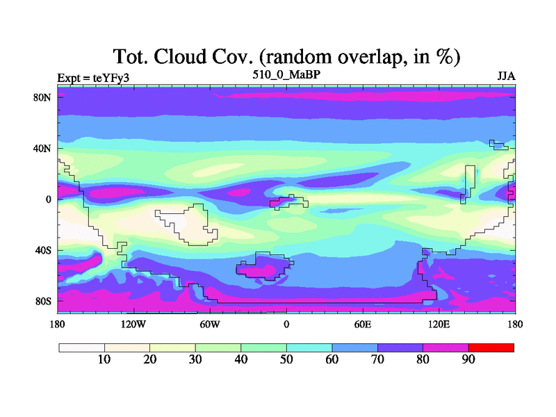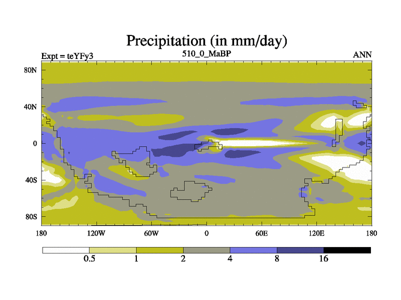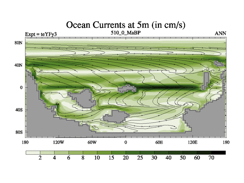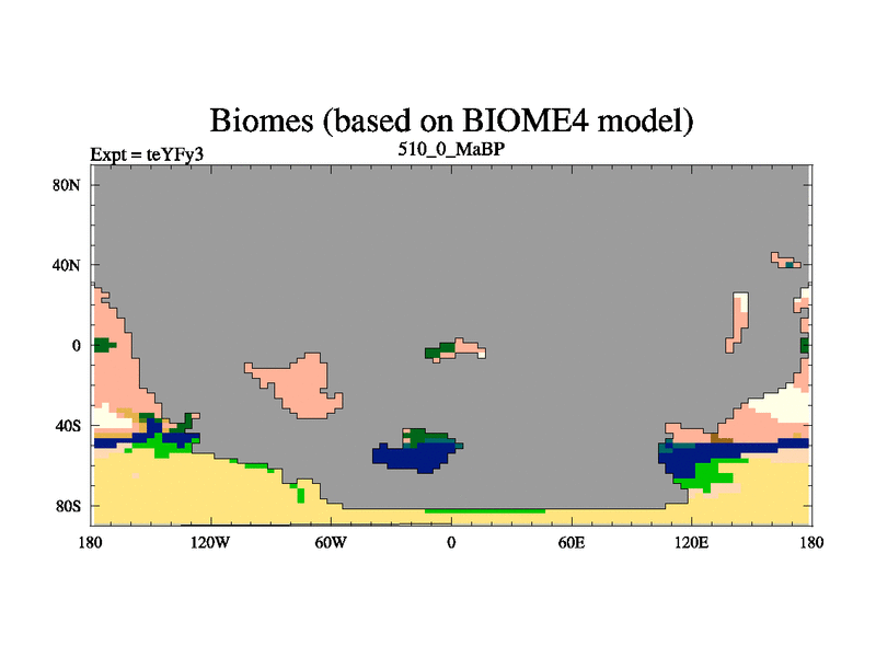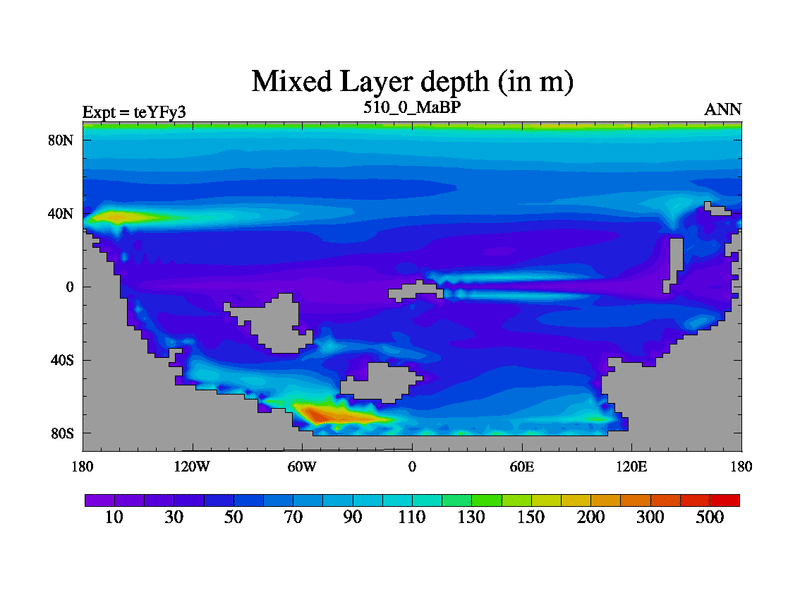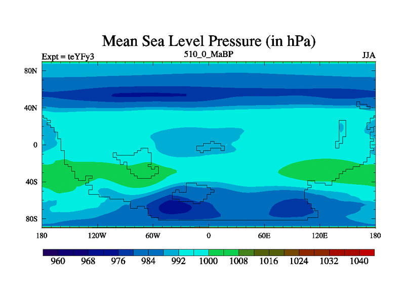 This is the 510.0 Ma simulation using the Scotese palaeogeographies and revised CCN etc. Updated HadCM3L ocean parameters and soil parameters. Also made sure orography gravity wave drag was consistent.
