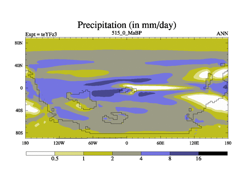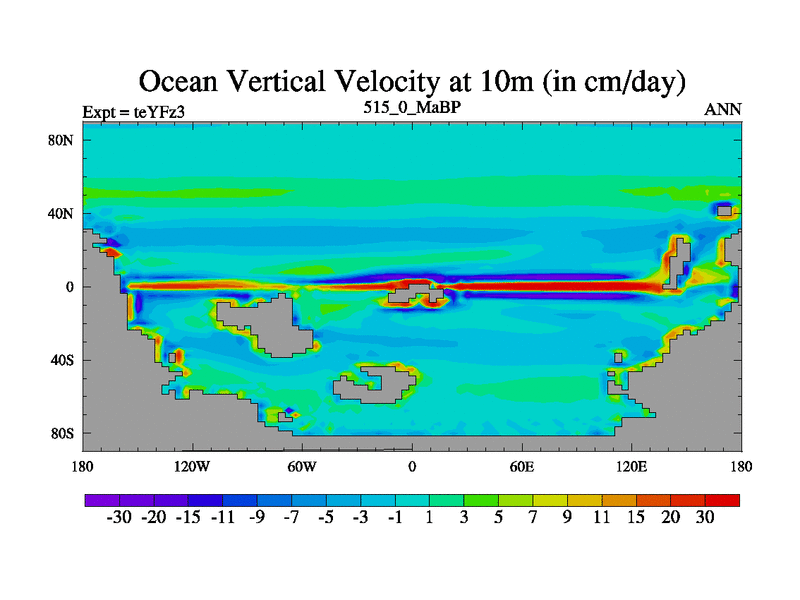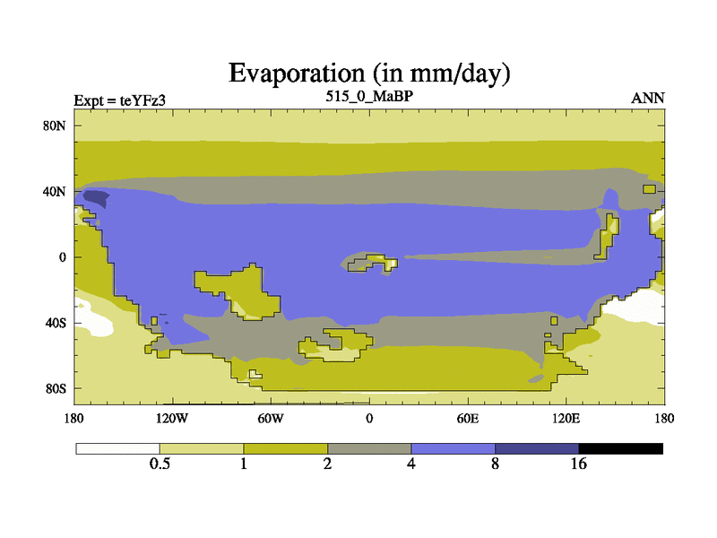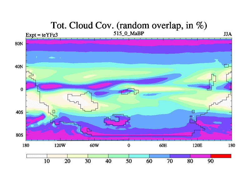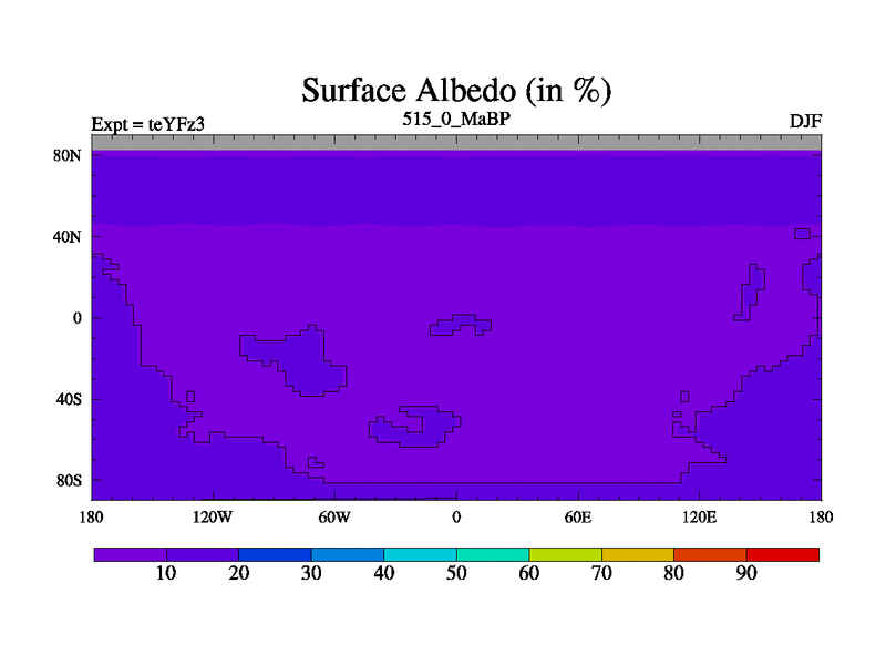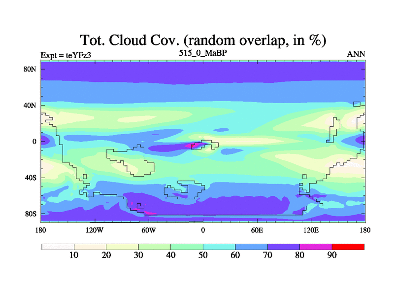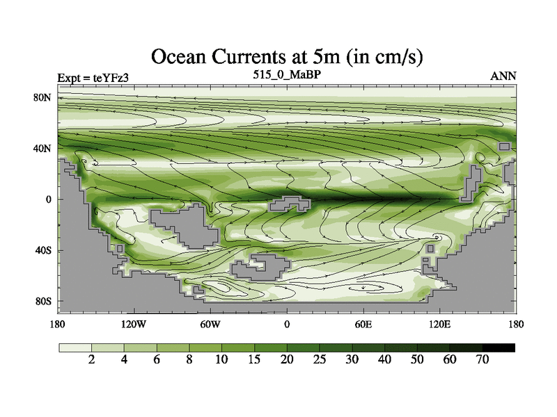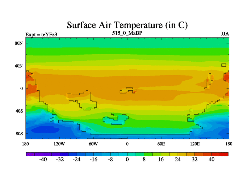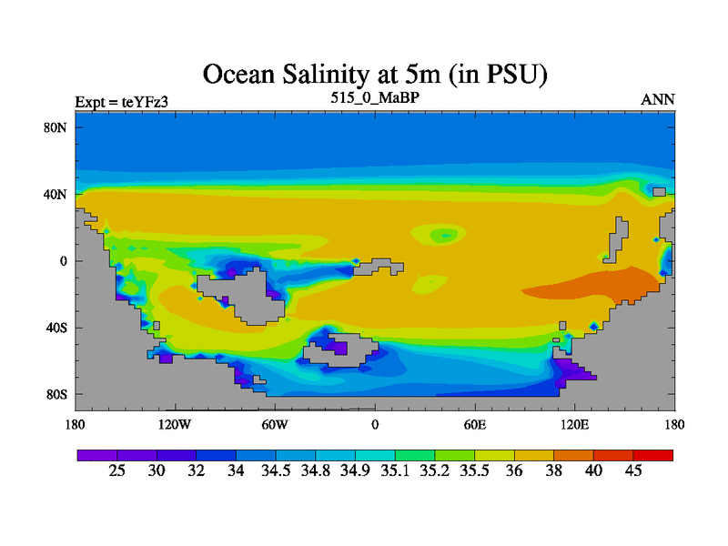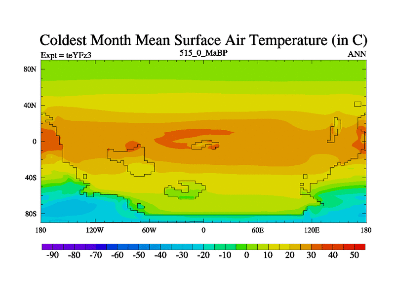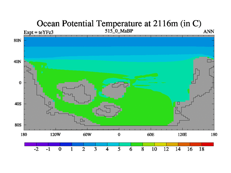 This is the 515.0 Ma simulation using the Scotese palaeogeographies and revised CCN etc. Updated HadCM3L ocean parameters and soil parameters. Also made sure orography gravity wave drag was consistent.