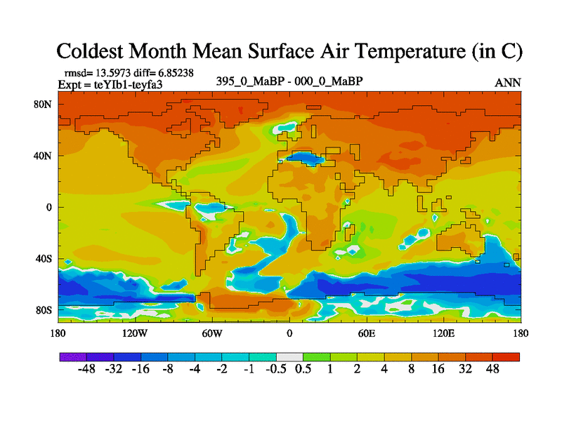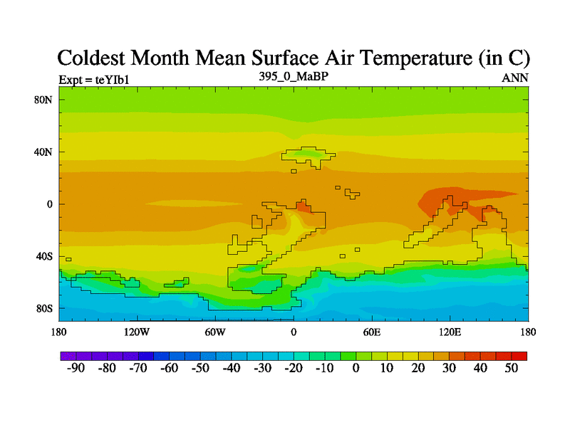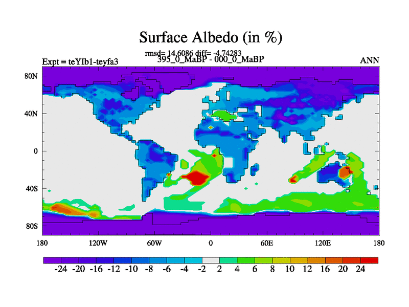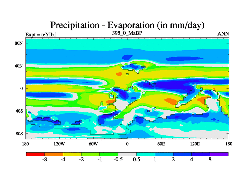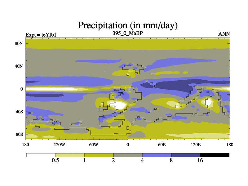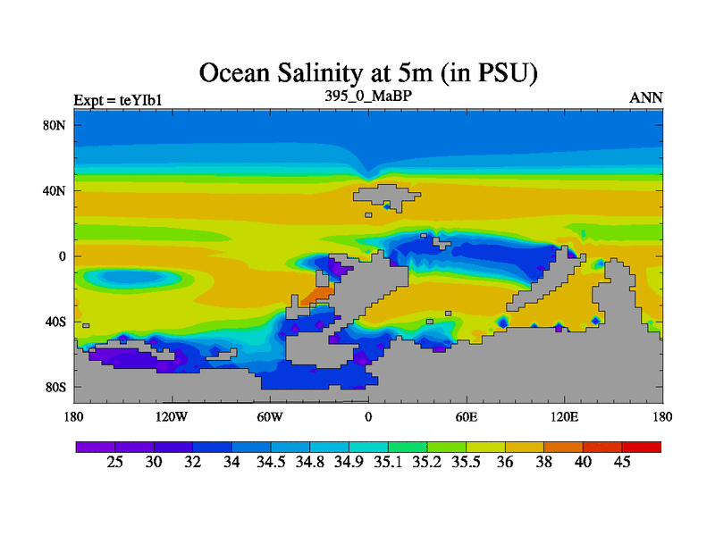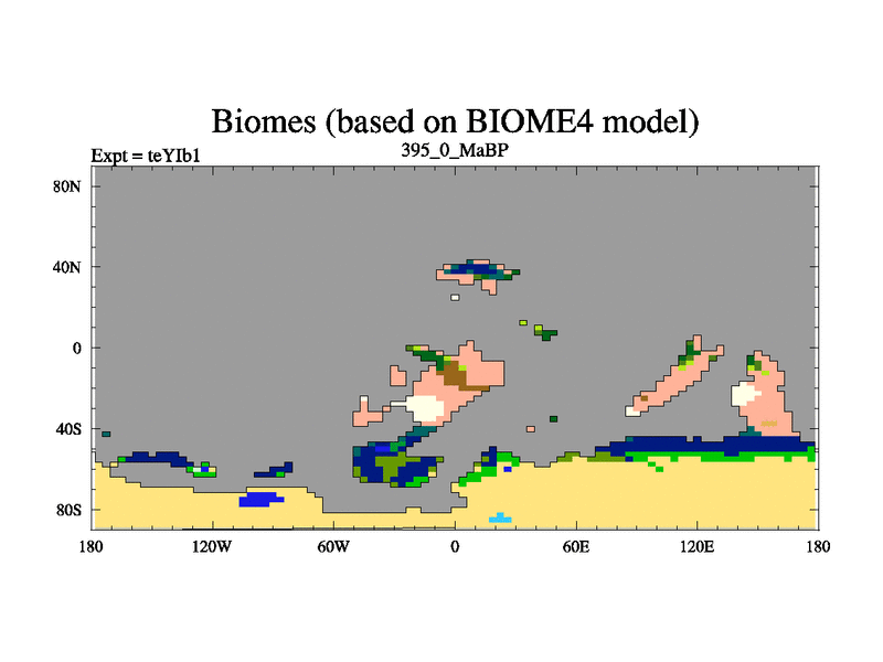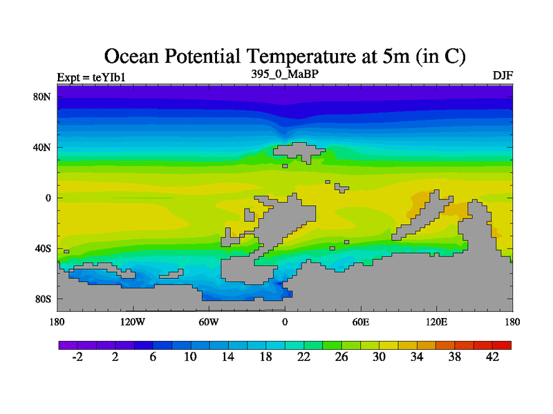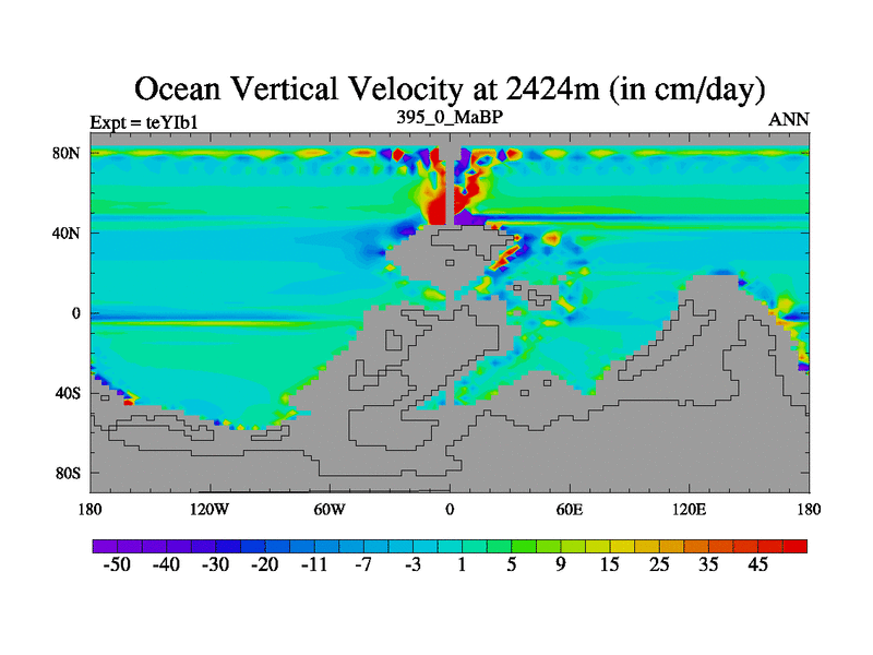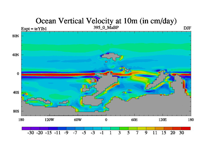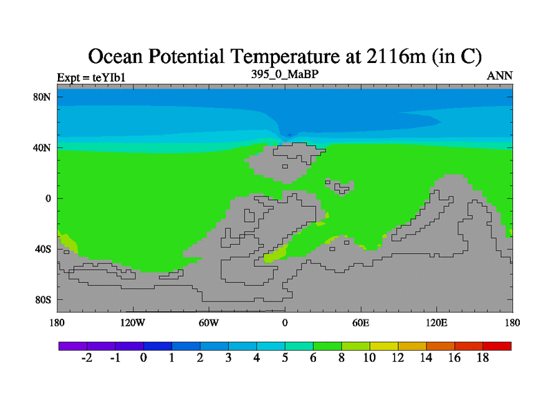 This is the 395.0 Ma simulation using the Scotese palaeogeographies and revised CCN etc. Now includes ocean biogeochemistry