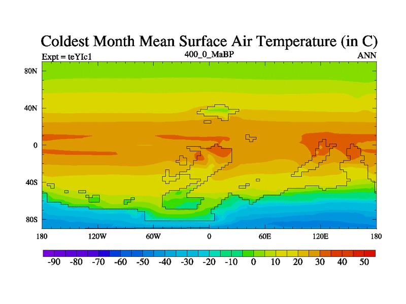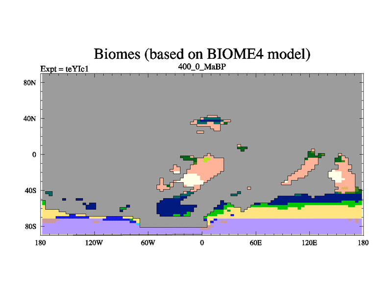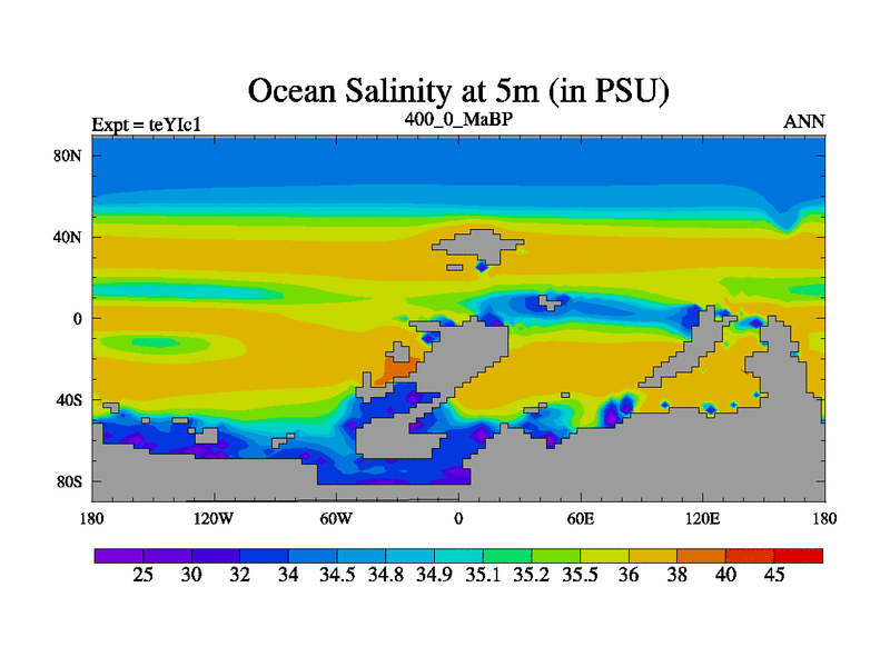 This is the 400.0 Ma simulation using the Scotese palaeogeographies and revised CCN etc. Now includes ocean biogeochemistry