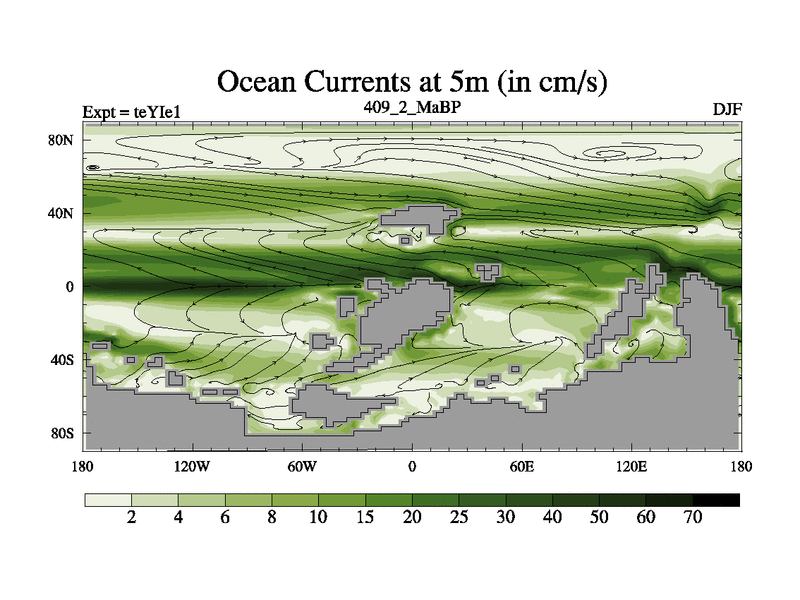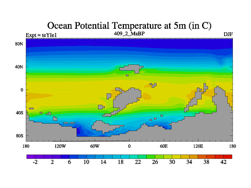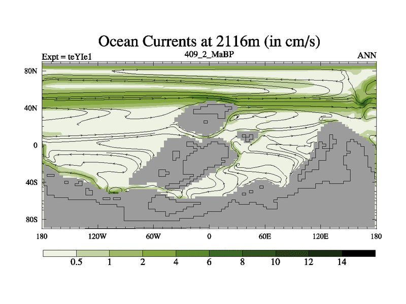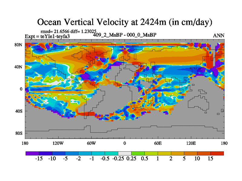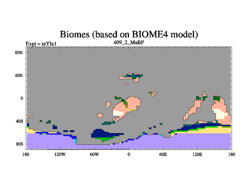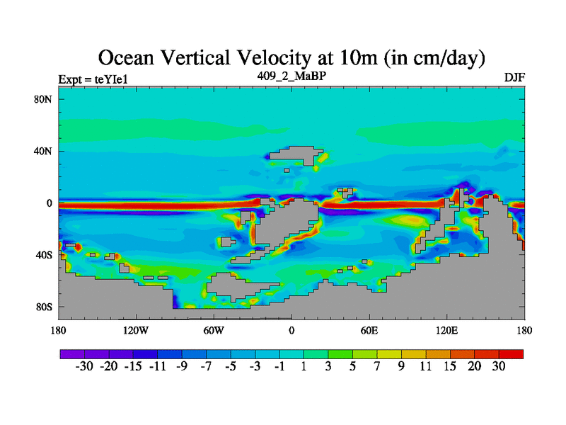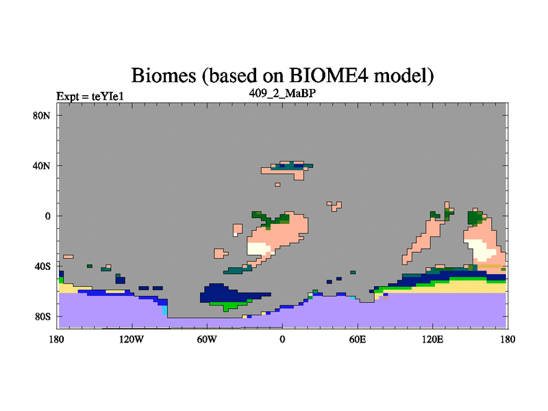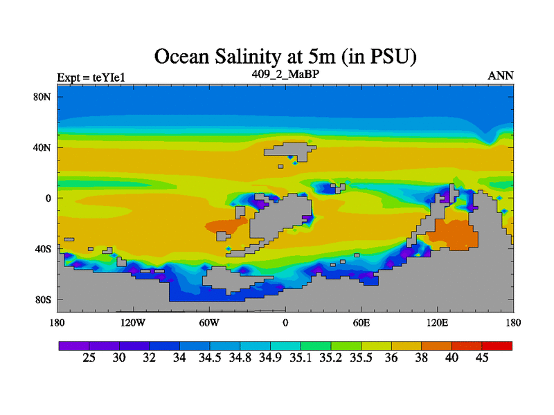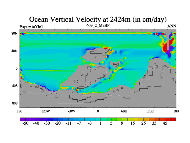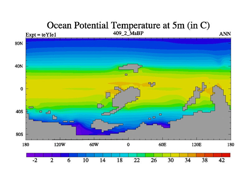 This is the 409.2 Ma simulation using the Scotese palaeogeographies and revised CCN etc. Now includes ocean biogeochemistry