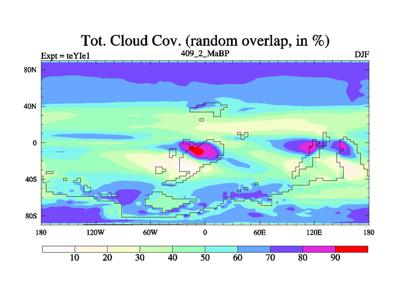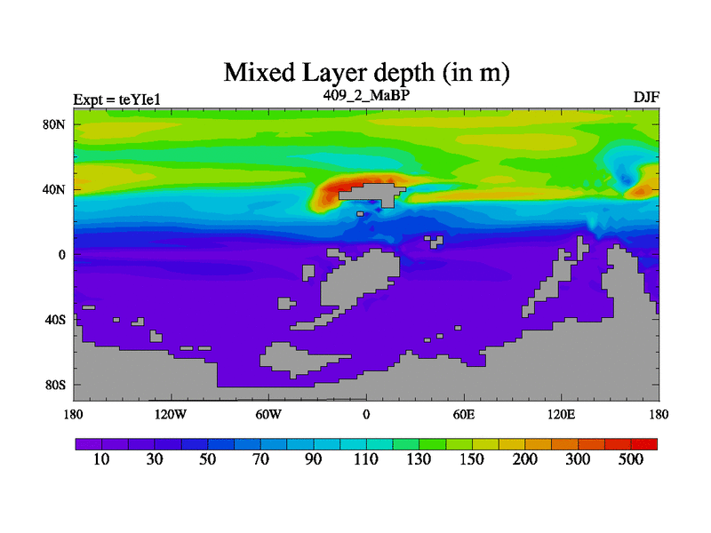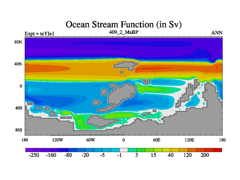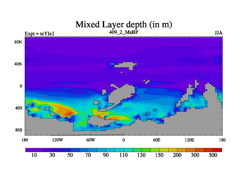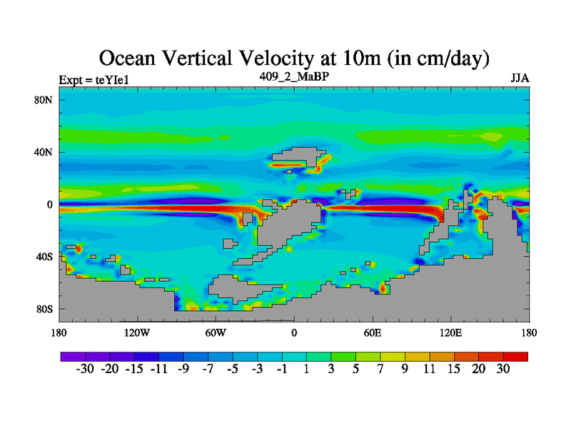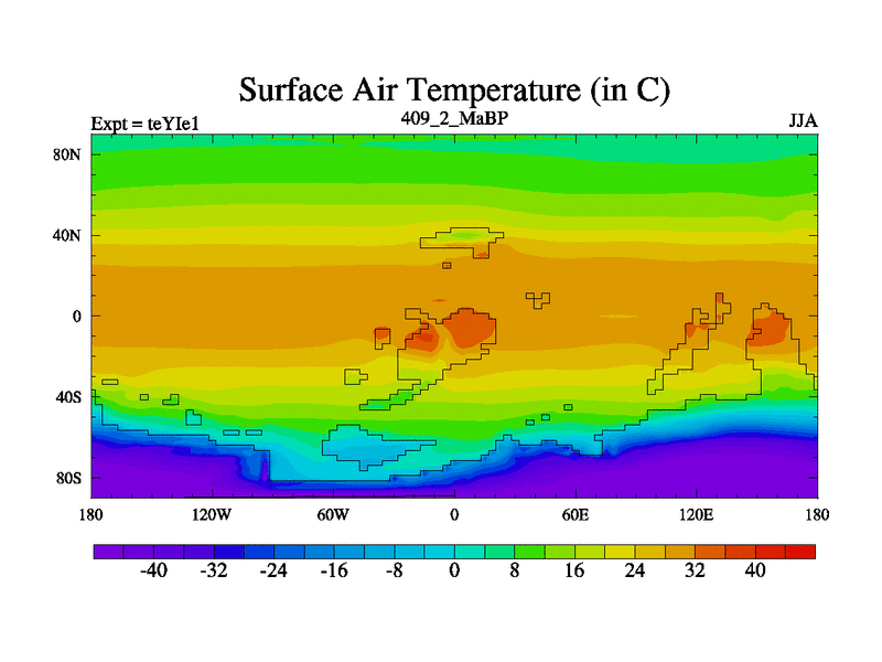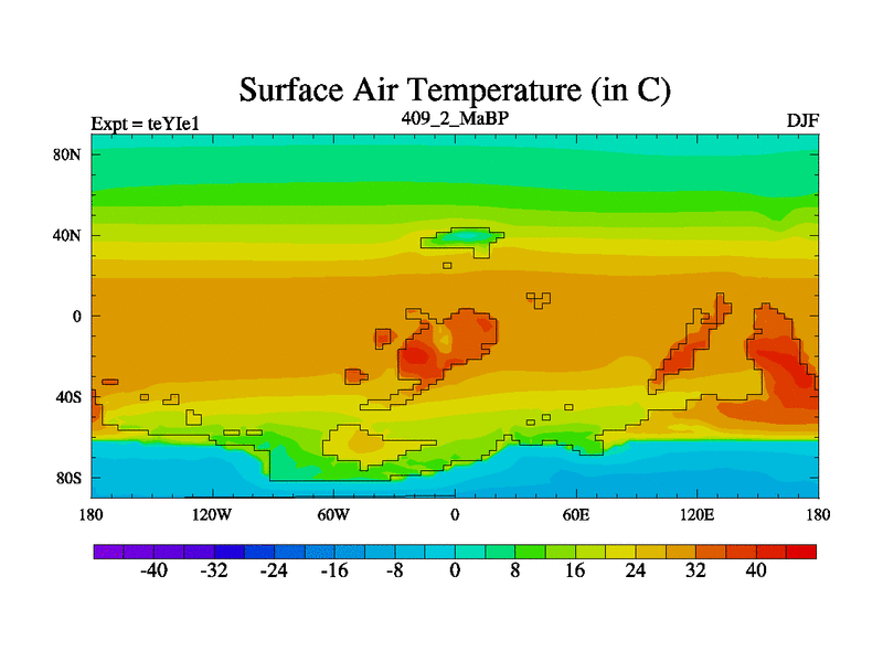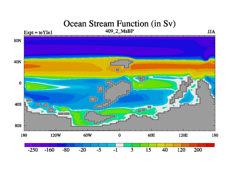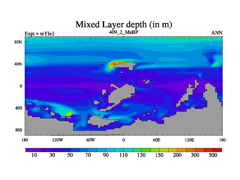This is the 409.2 Ma simulation using the Scotese palaeogeographies and revised CCN etc. Now includes ocean biogeochemistry