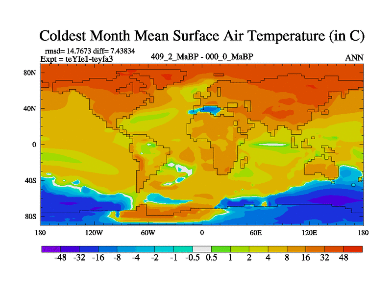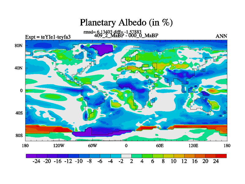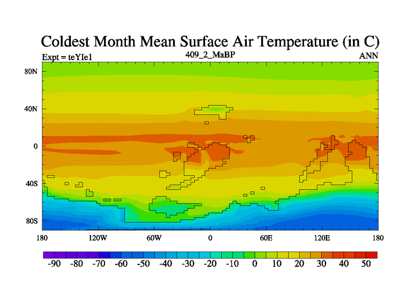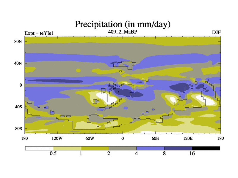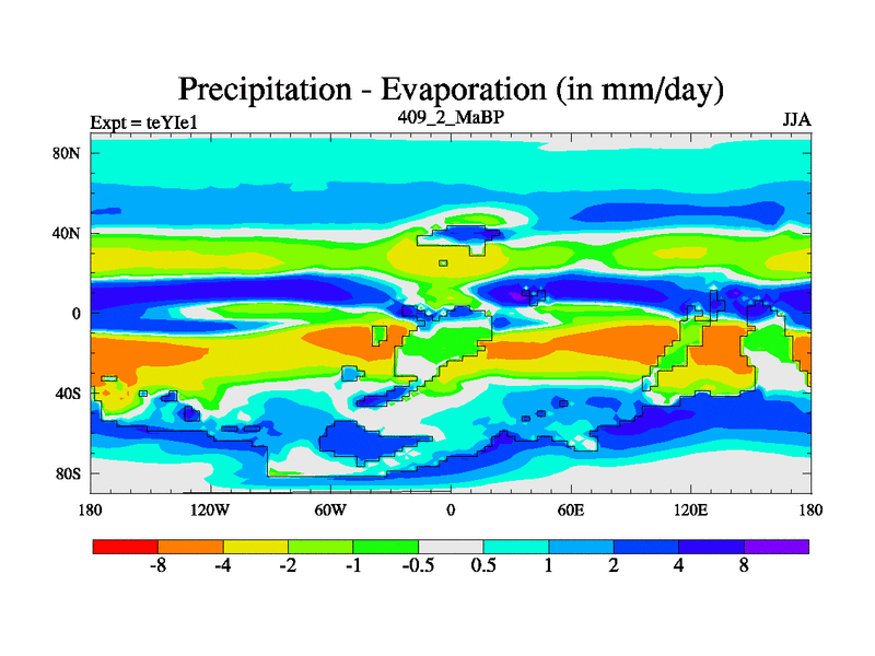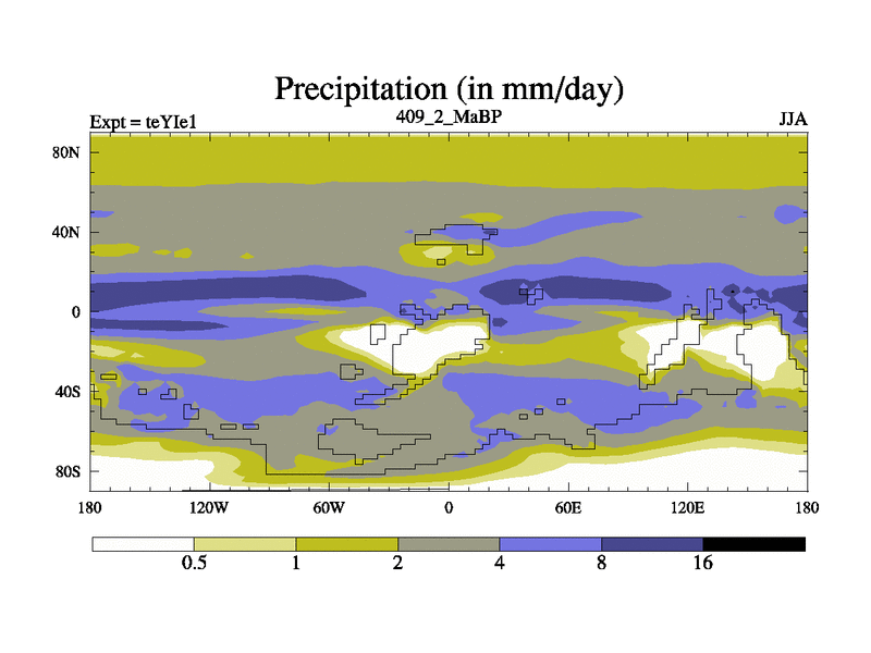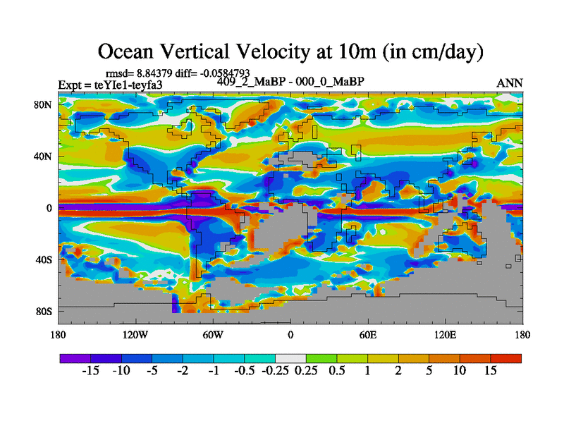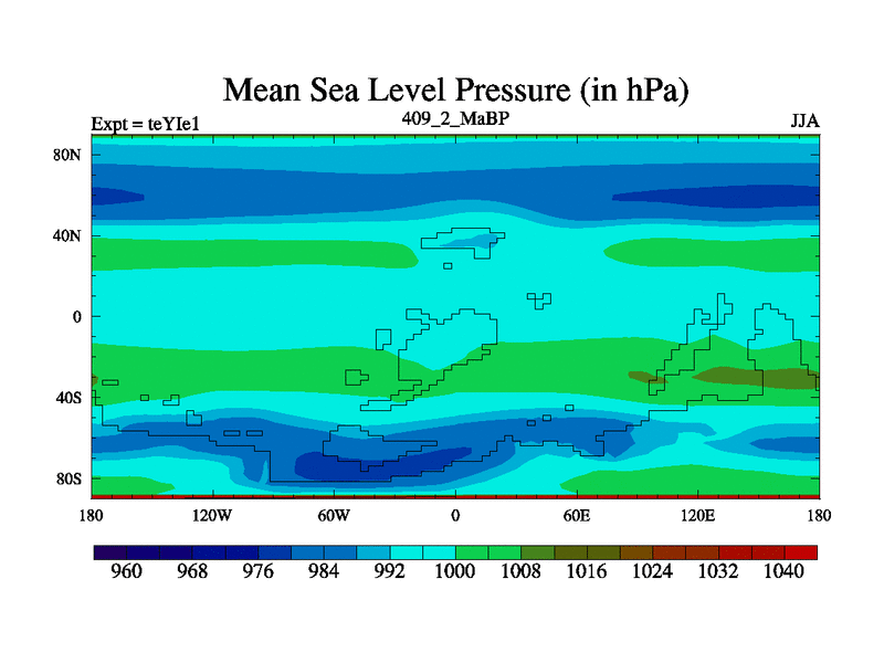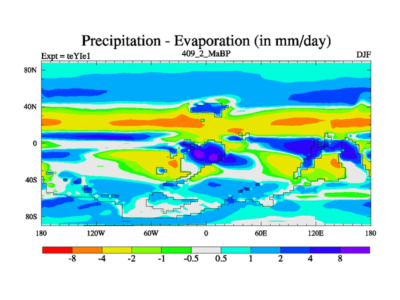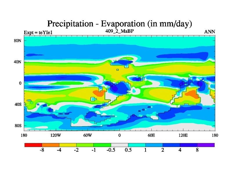 This is the 409.2 Ma simulation using the Scotese palaeogeographies and revised CCN etc. Now includes ocean biogeochemistry