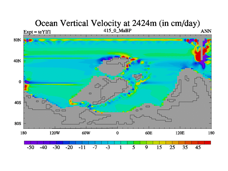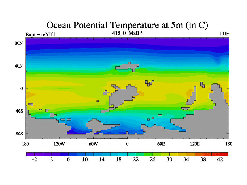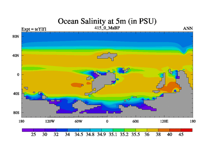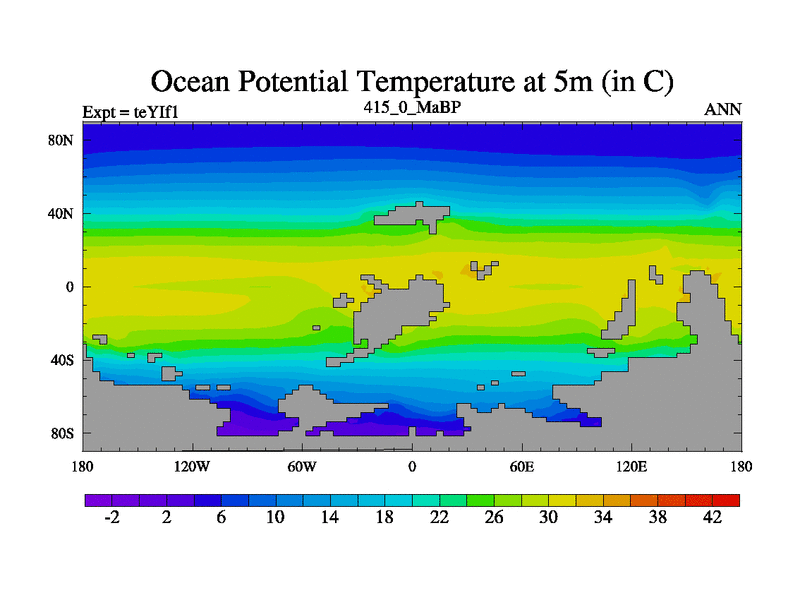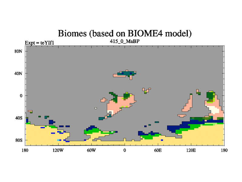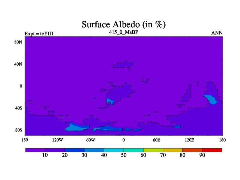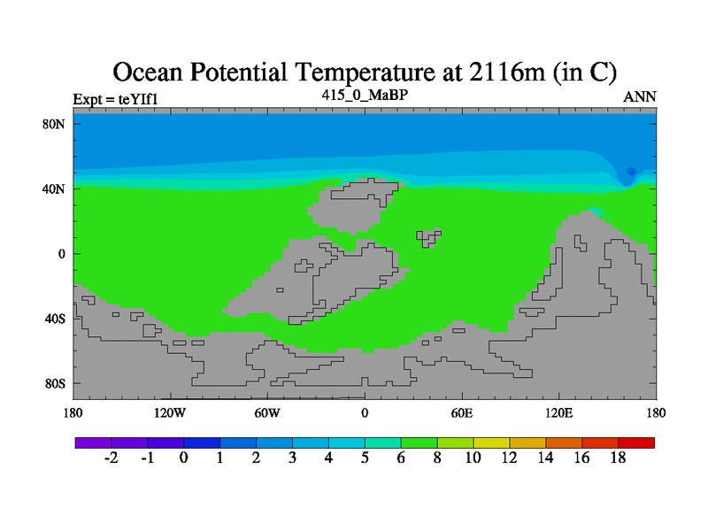 This is the 415.0 Ma simulation using the Scotese palaeogeographies and revised CCN etc. Now includes ocean biogeochemistry