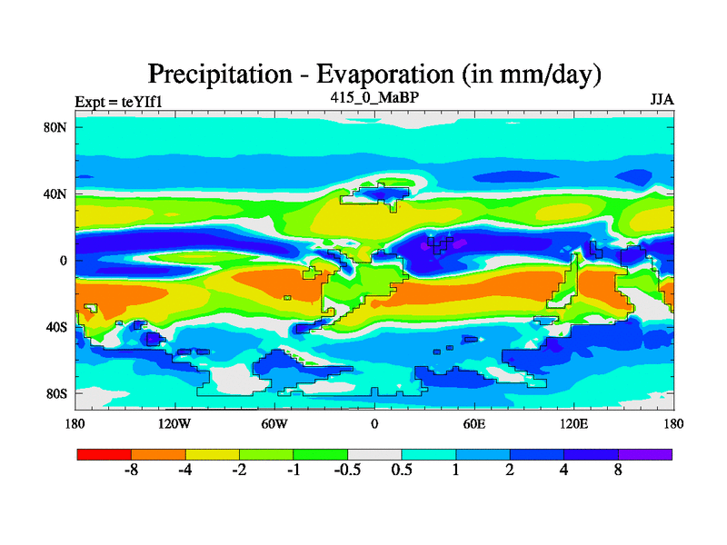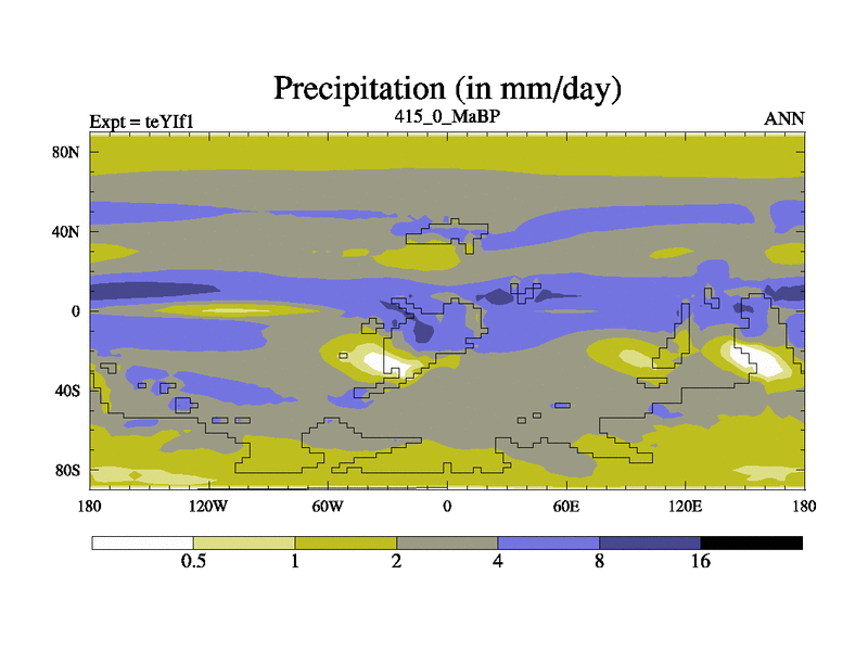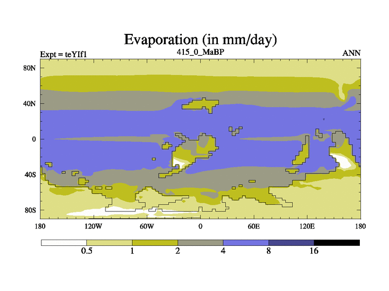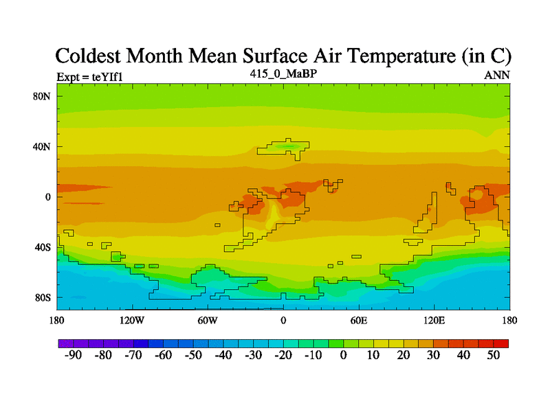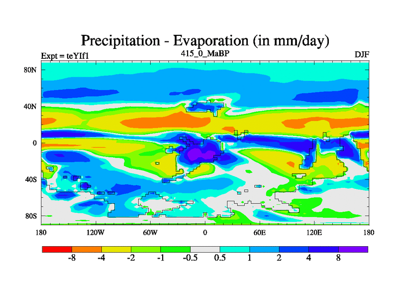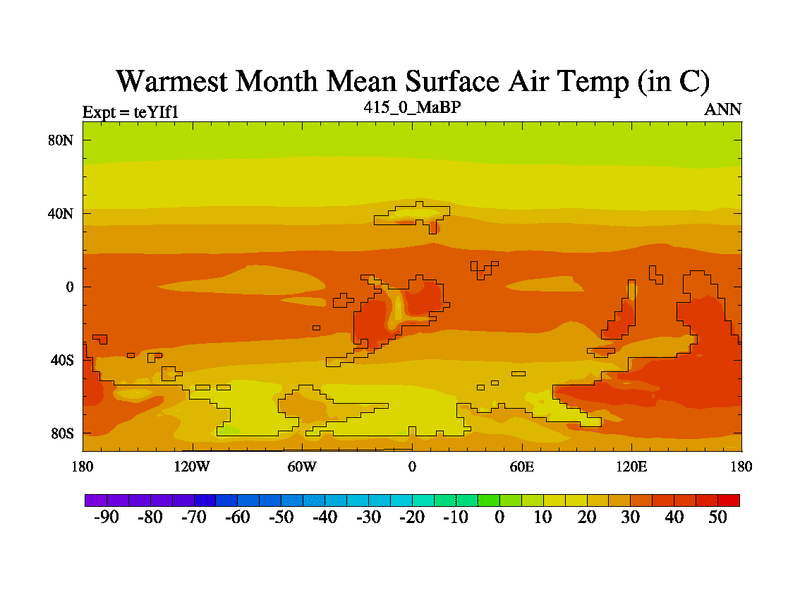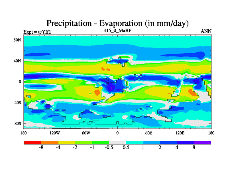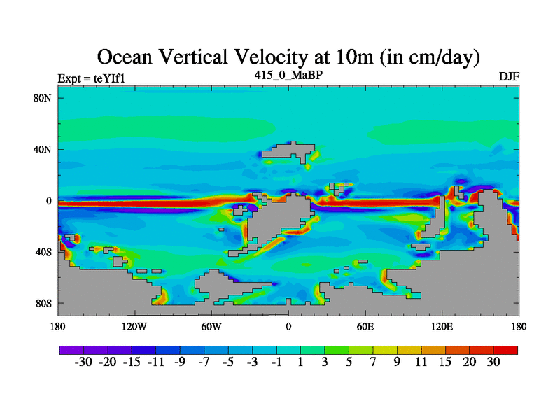 This is the 415.0 Ma simulation using the Scotese palaeogeographies and revised CCN etc. Now includes ocean biogeochemistry