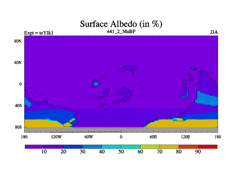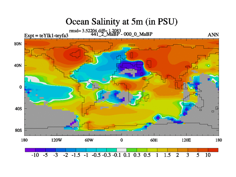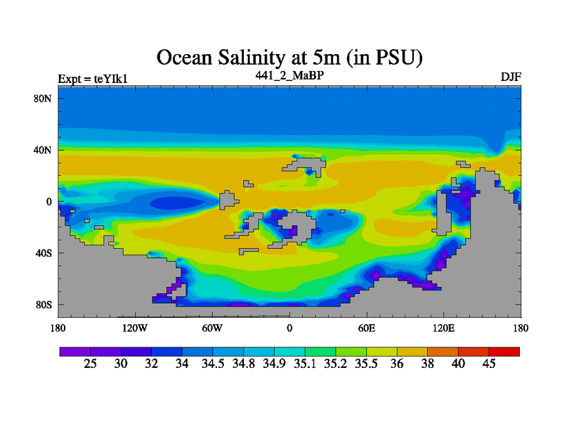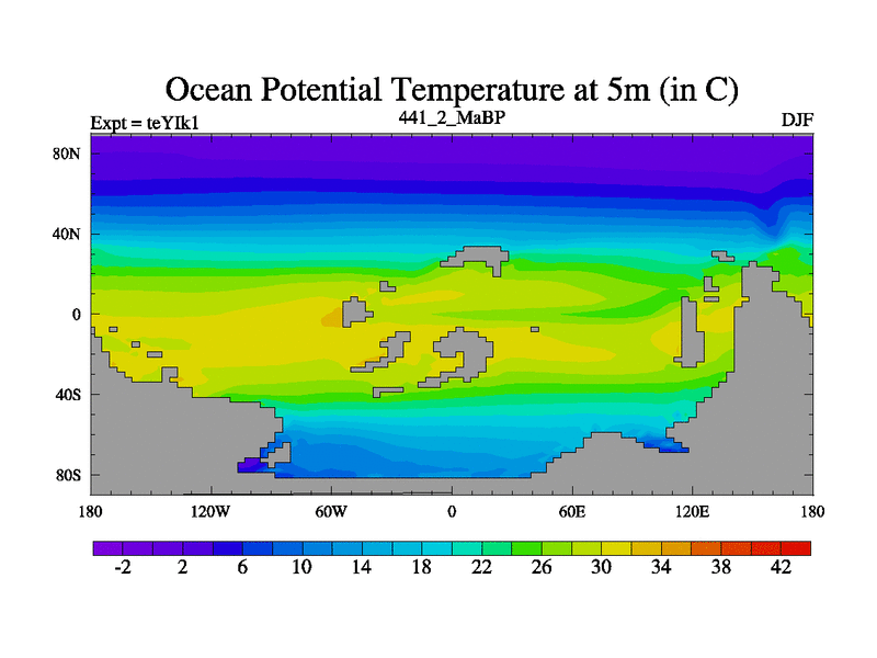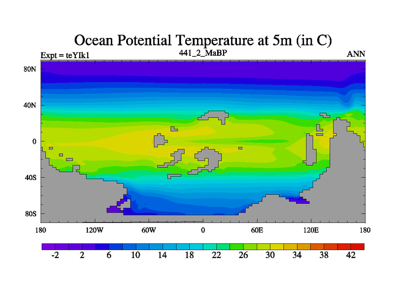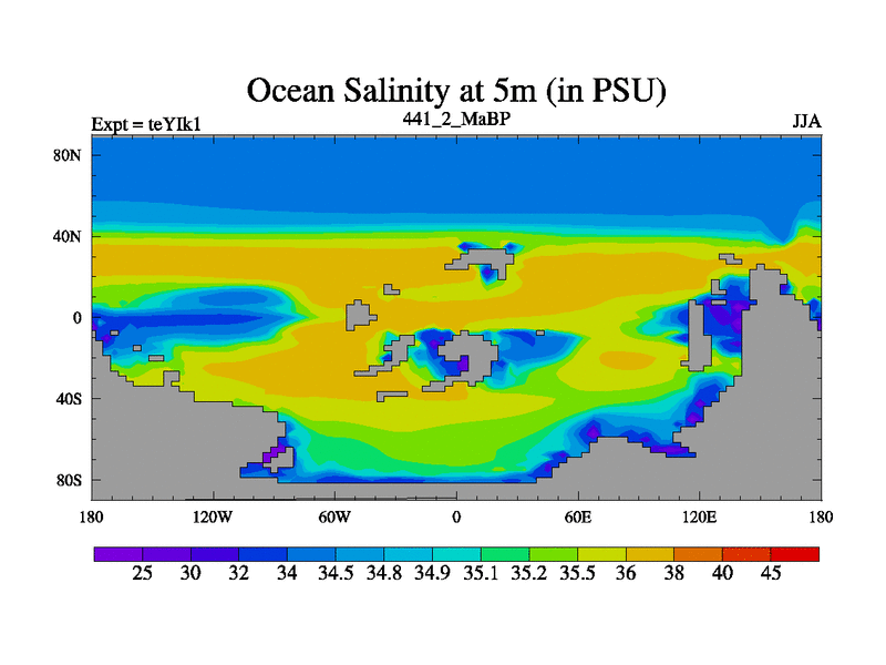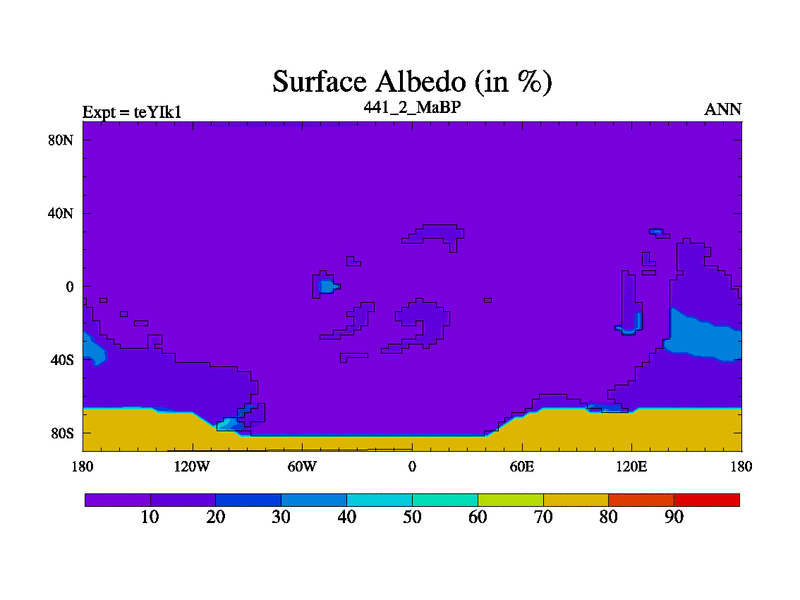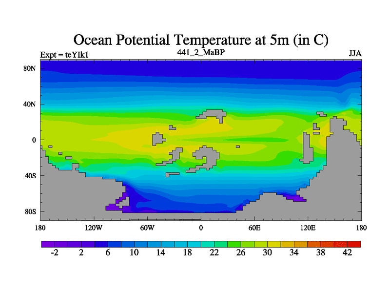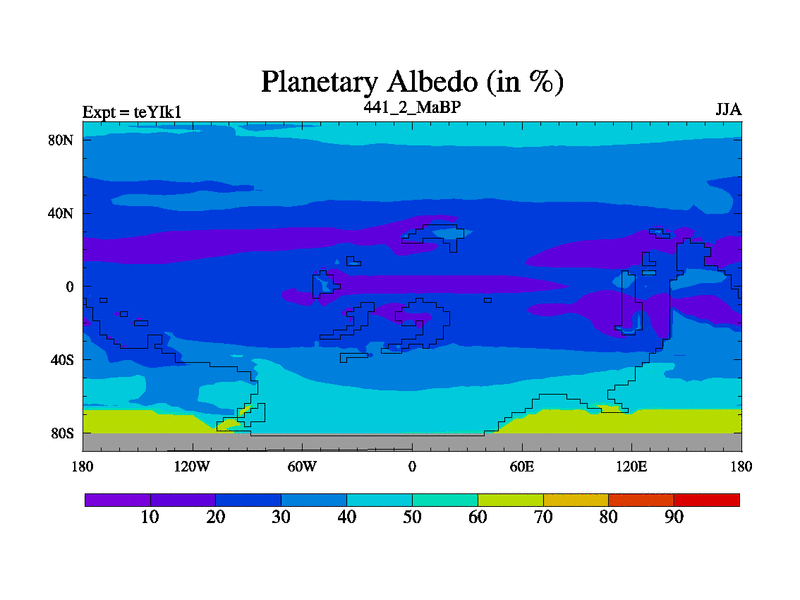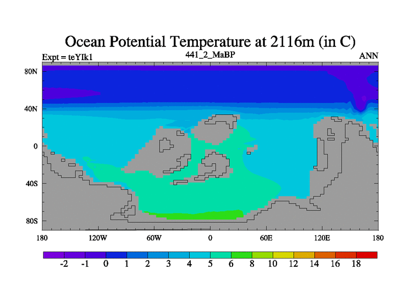 This is the 441.2 Ma simulation using the Scotese palaeogeographies and revised CCN etc. Now includes ocean biogeochemistry