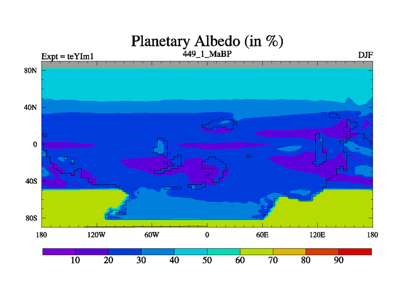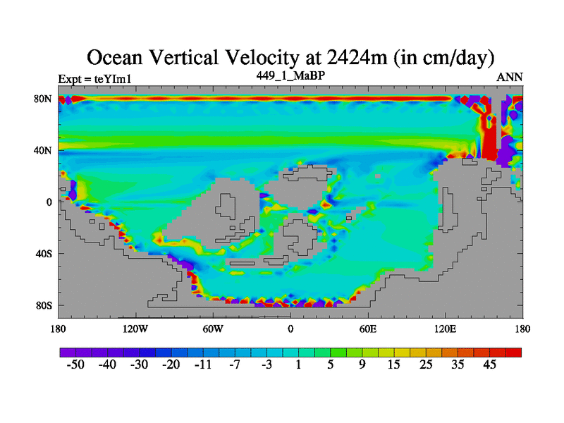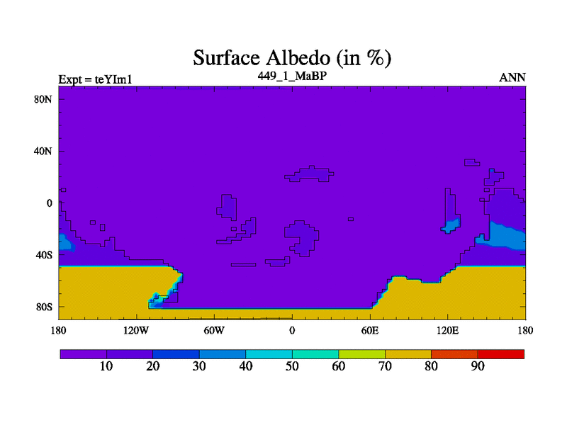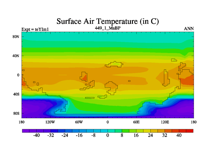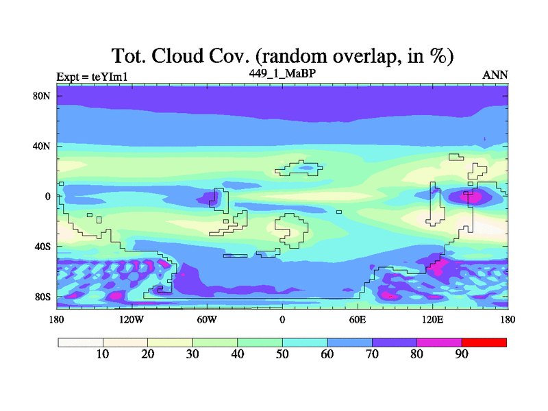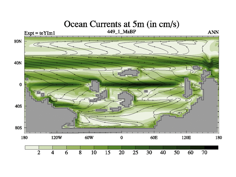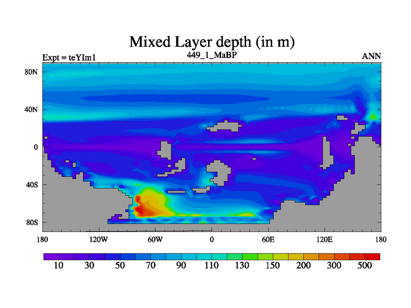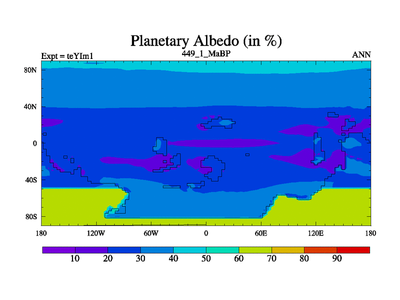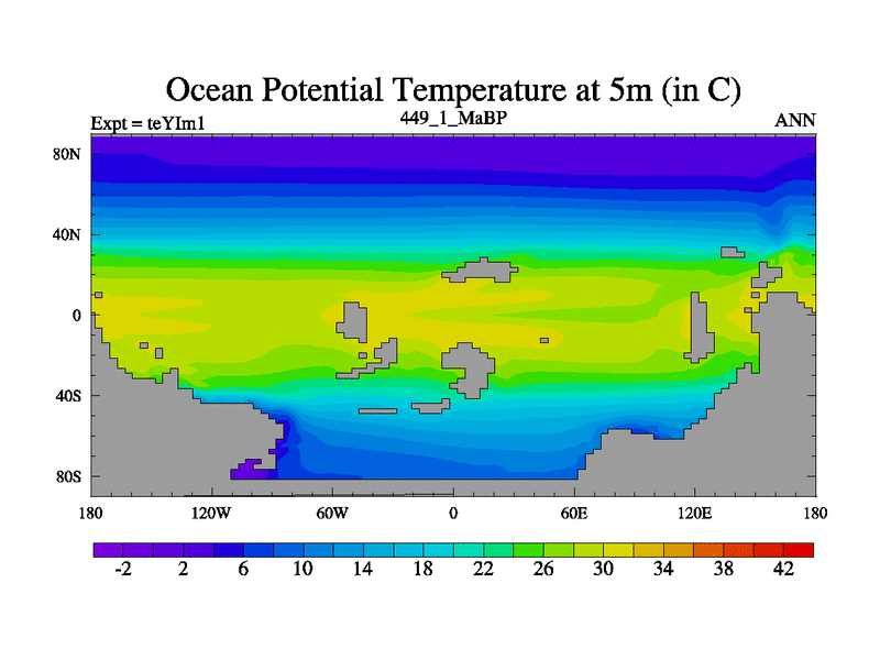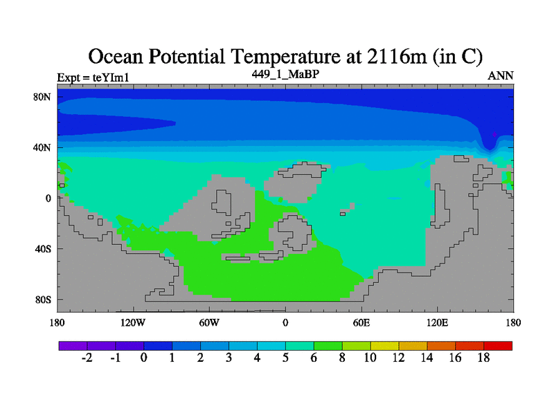 This is the 449.1 Ma simulation using the Scotese palaeogeographies and revised CCN etc. Now includes ocean biogeochemistry