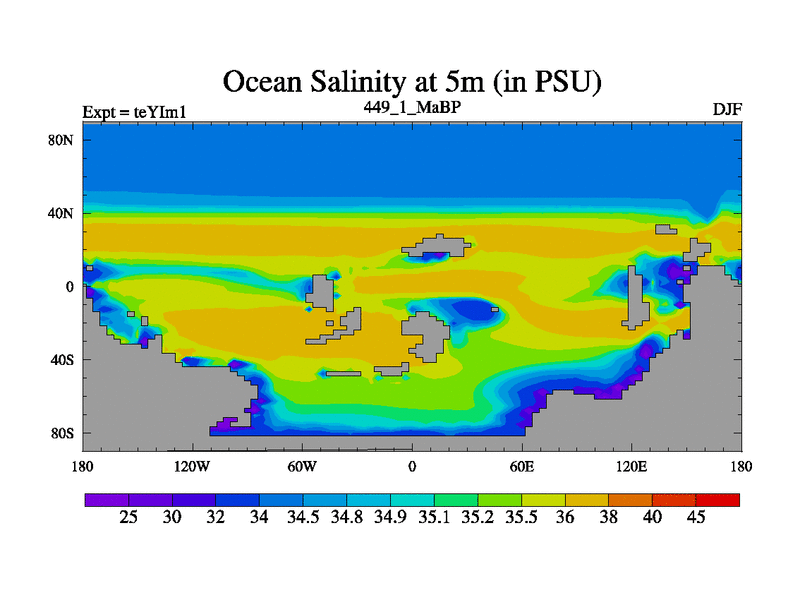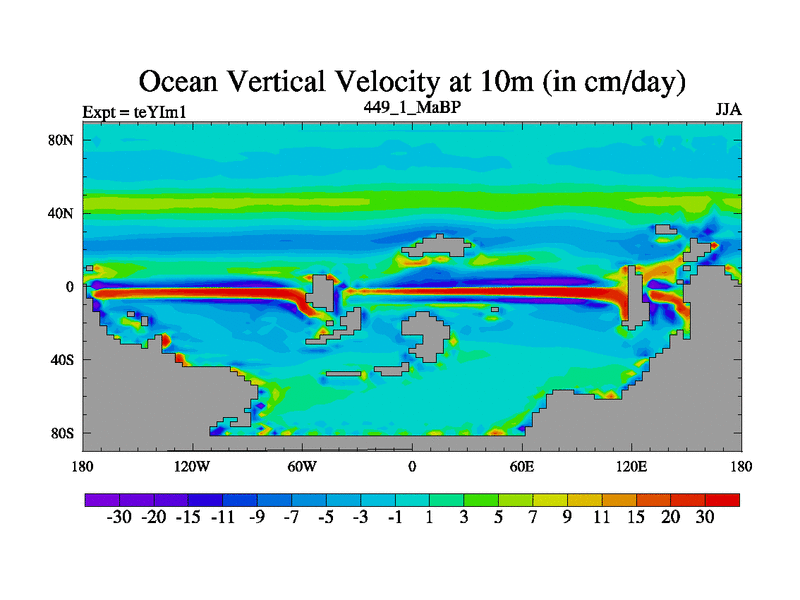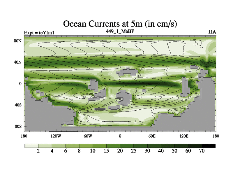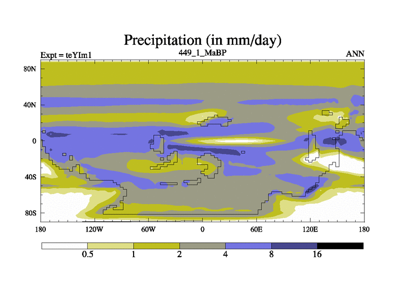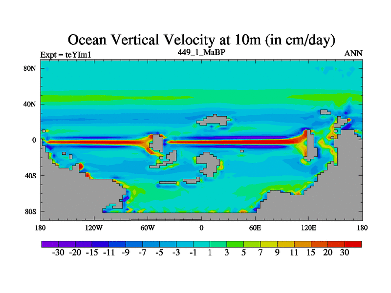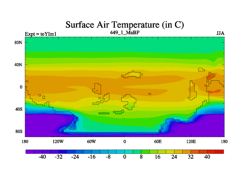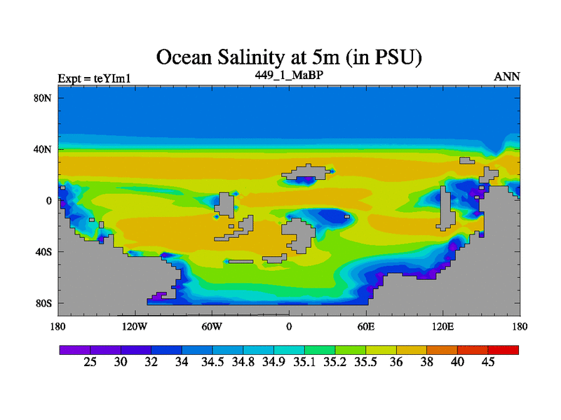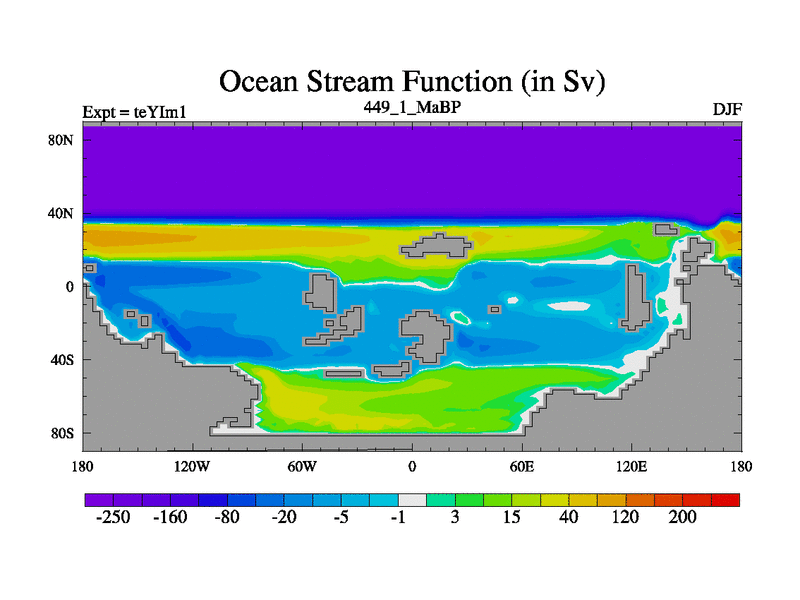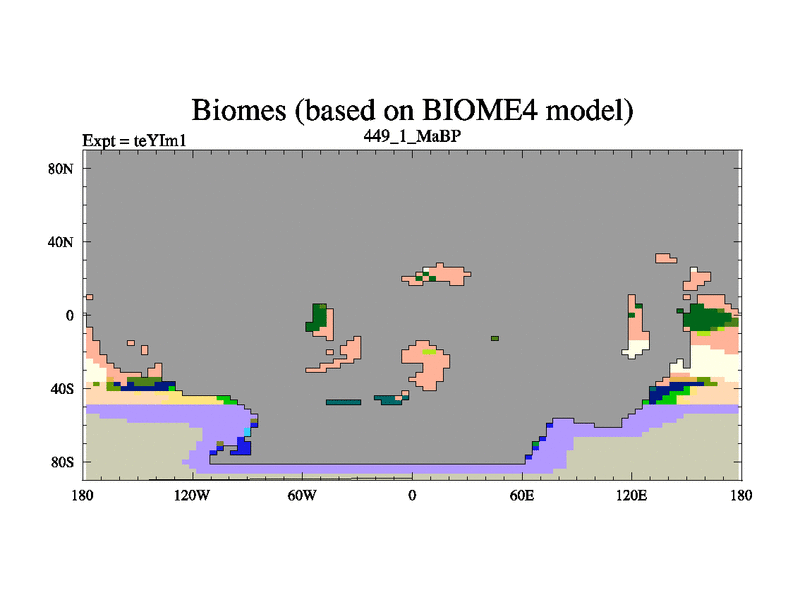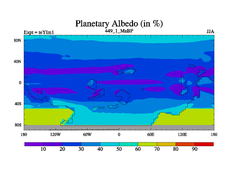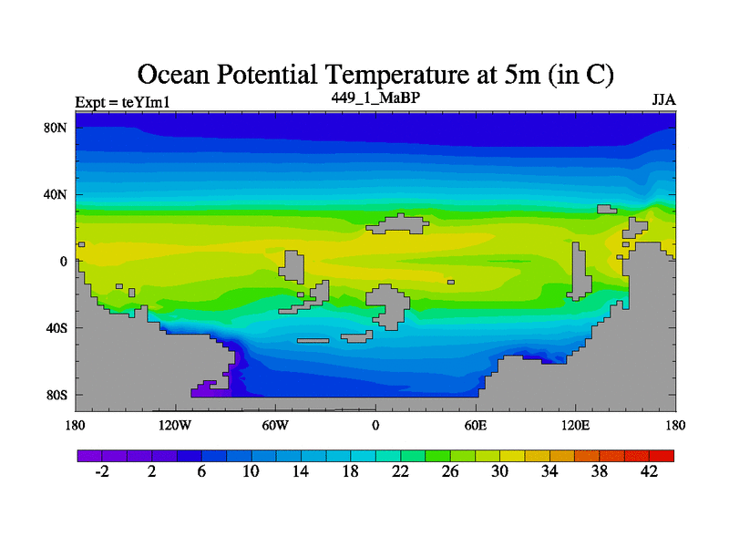 This is the 449.1 Ma simulation using the Scotese palaeogeographies and revised CCN etc. Now includes ocean biogeochemistry