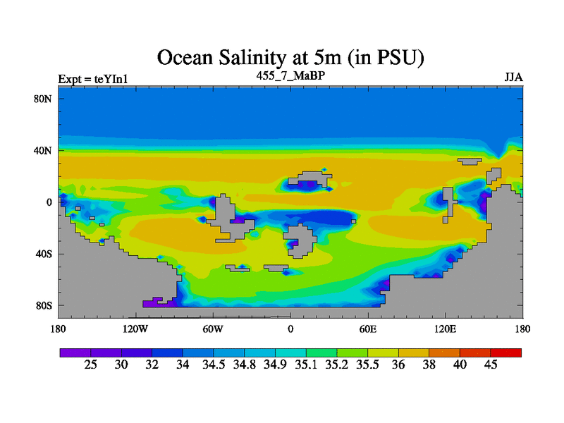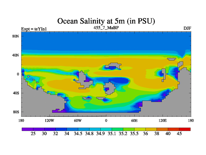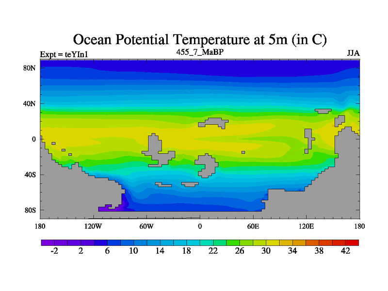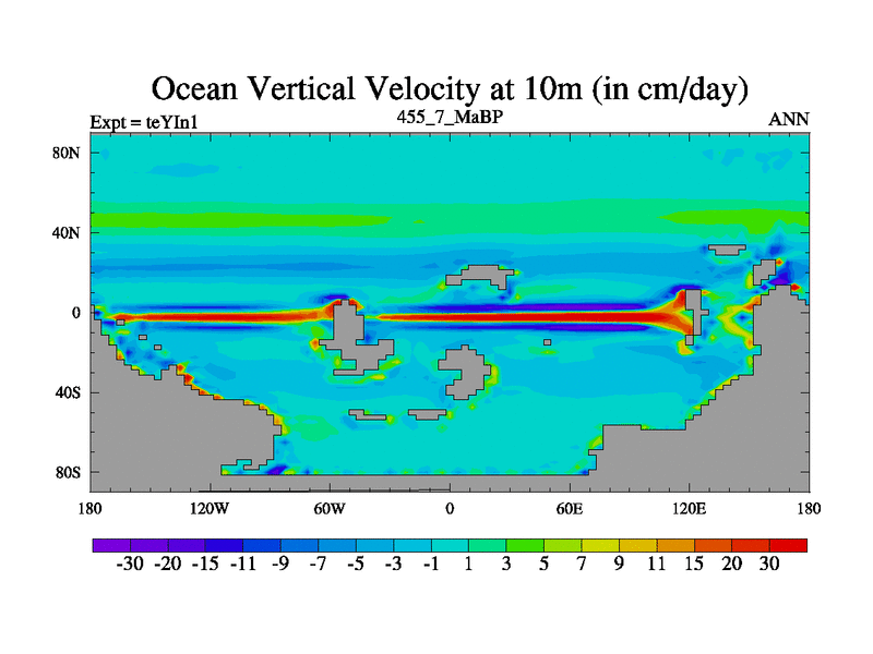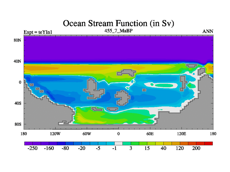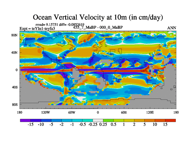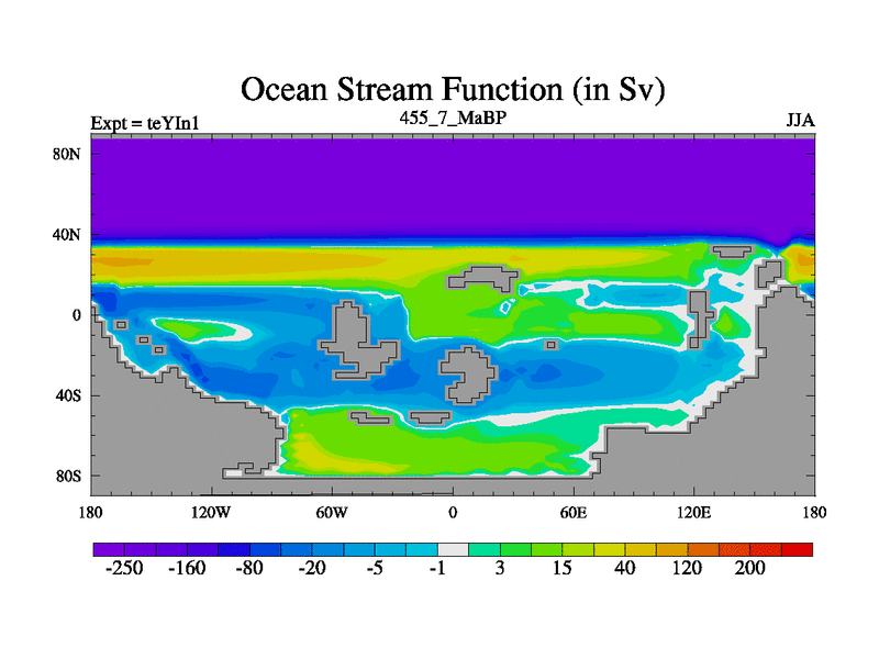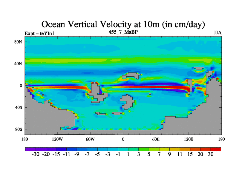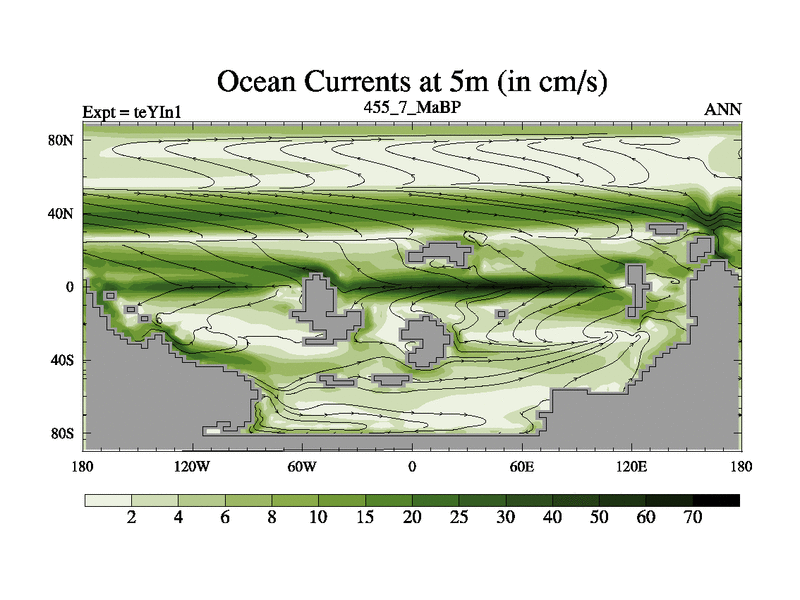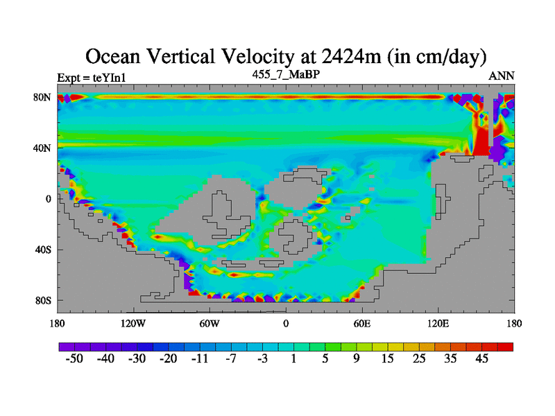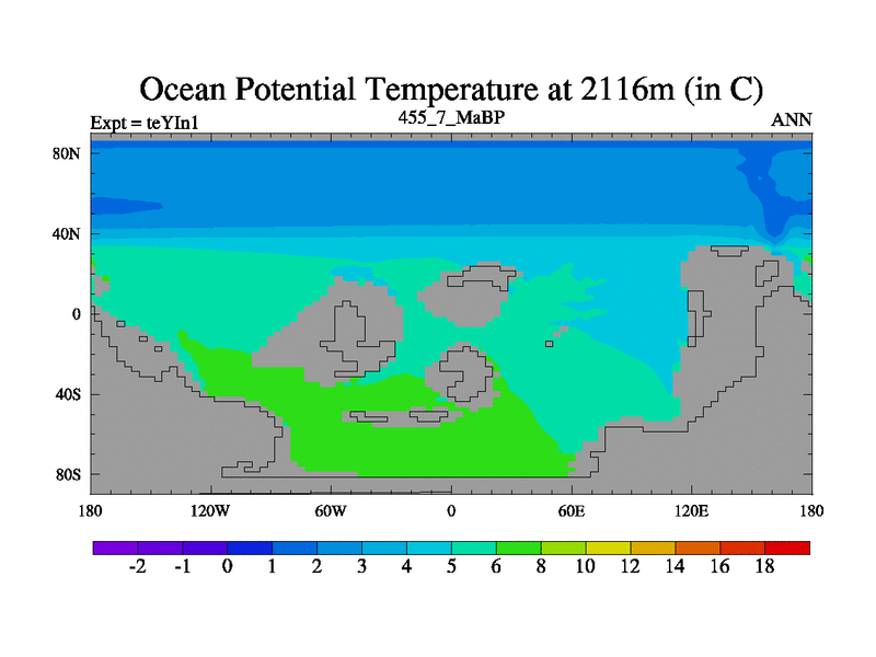 This is the 455.7 Ma simulation using the Scotese palaeogeographies and revised CCN etc. Now includes ocean biogeochemistry