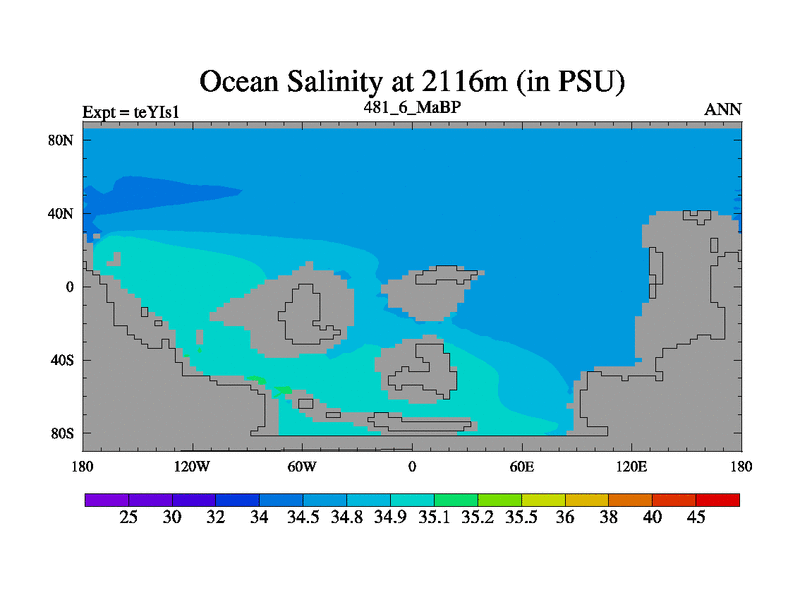 This is the 481.6 Ma simulation using the Scotese palaeogeographies and revised CCN etc. Now includes ocean biogeochemistry