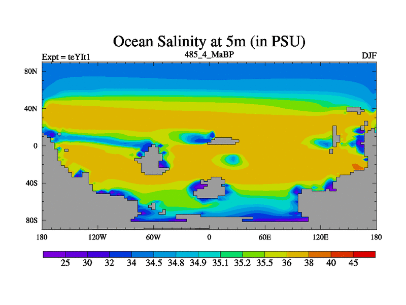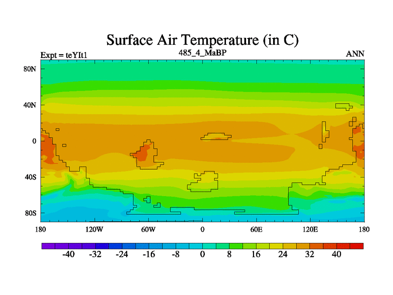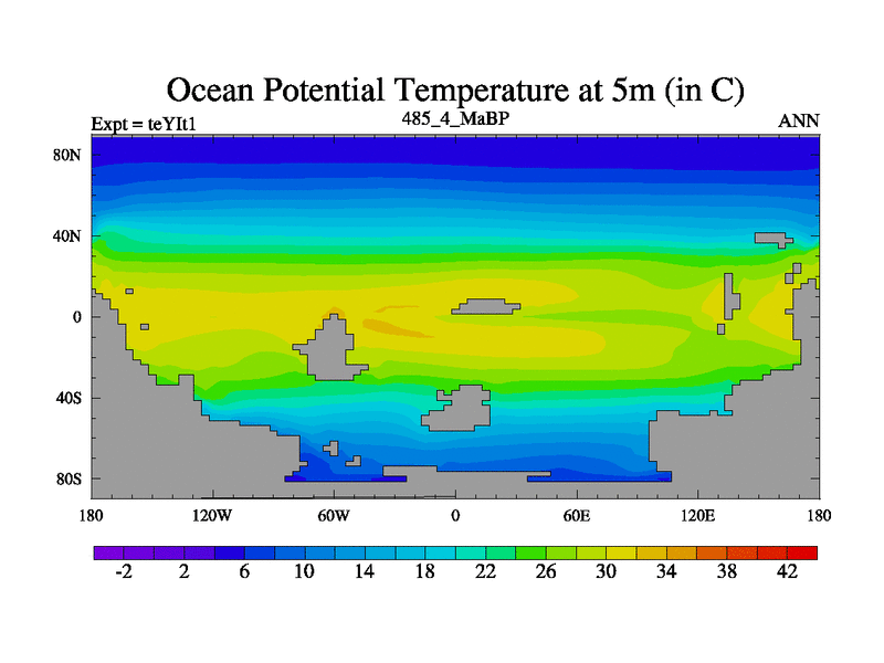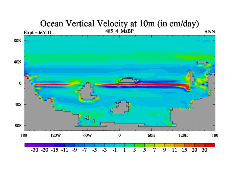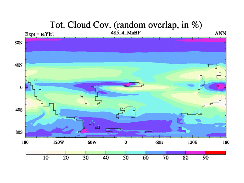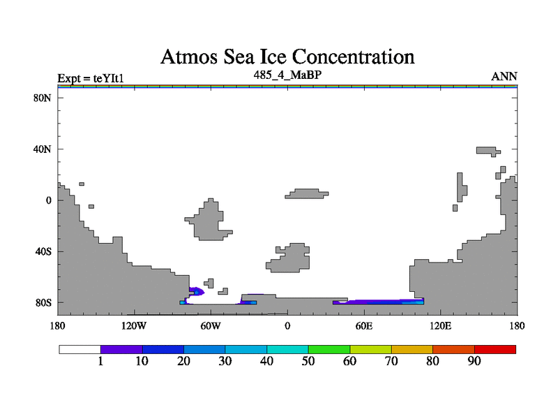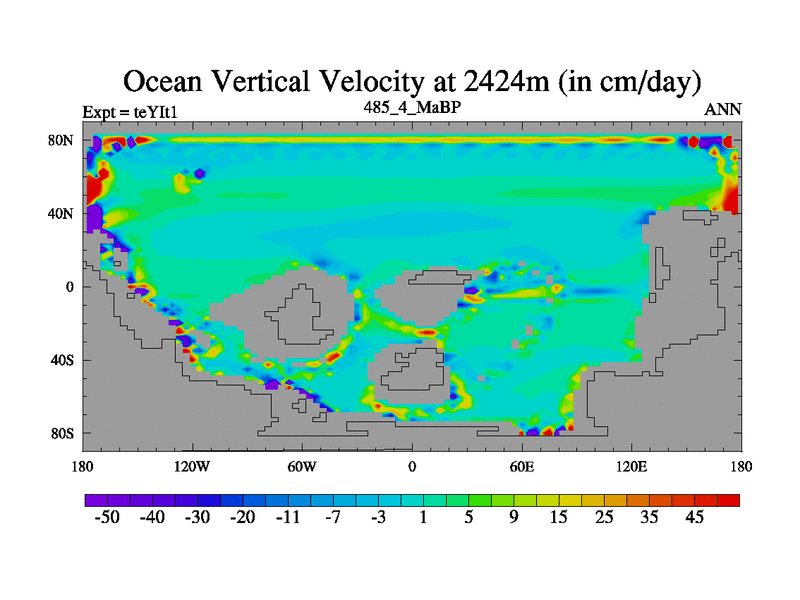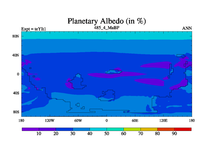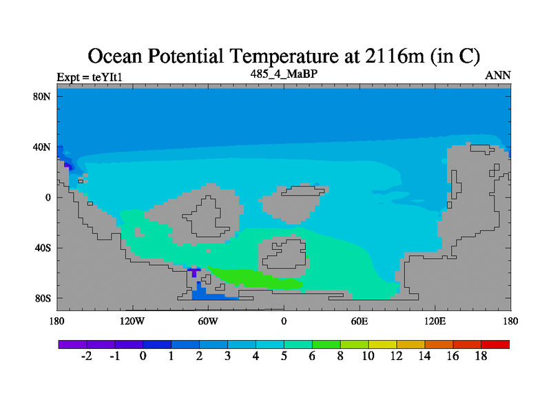 This is the 485.4 Ma simulation using the Scotese palaeogeographies and revised CCN etc. Now includes ocean biogeochemistry