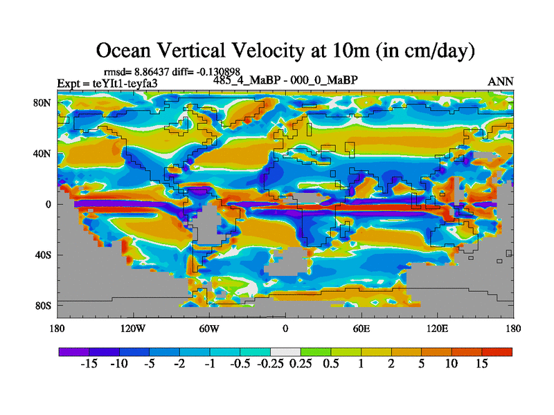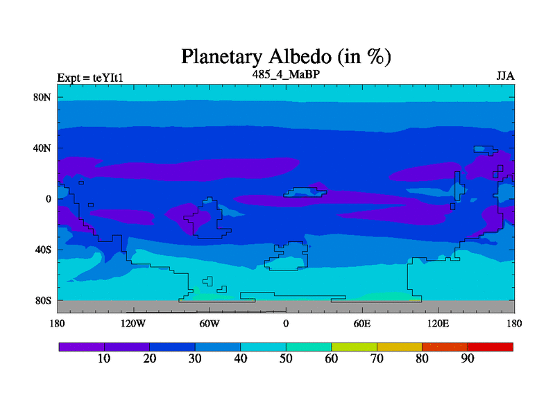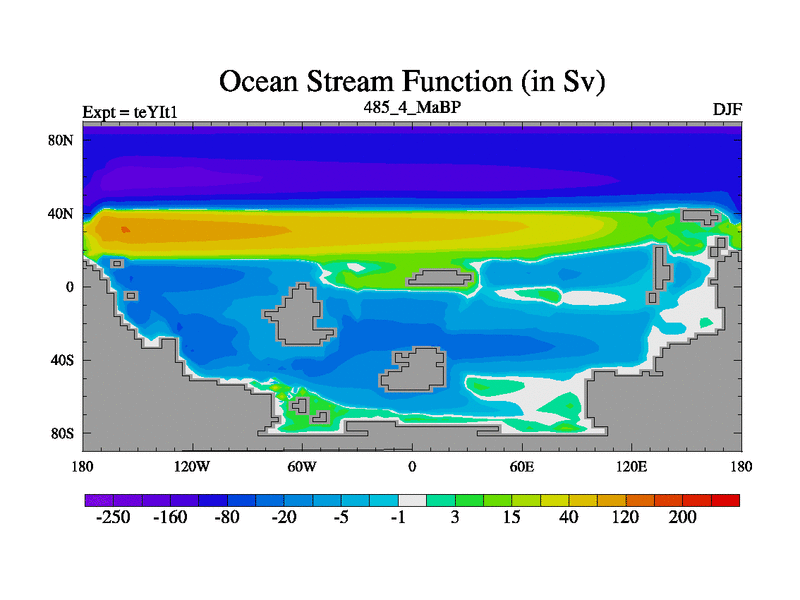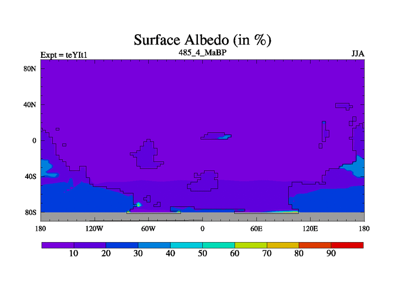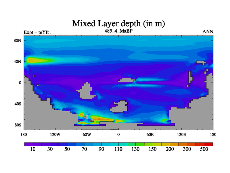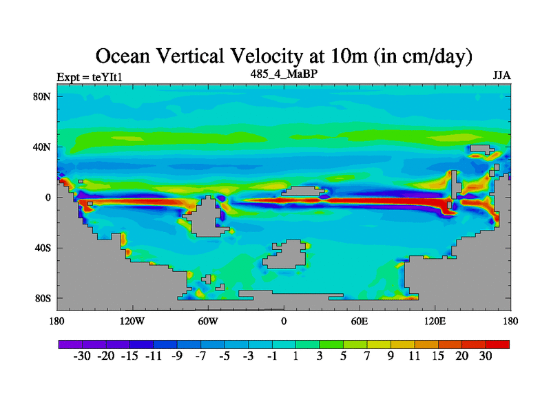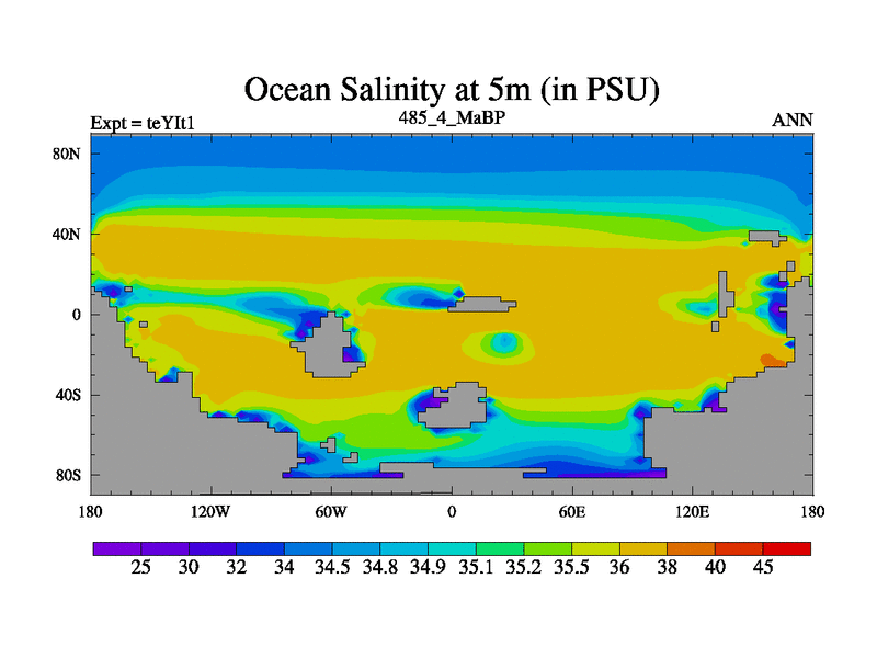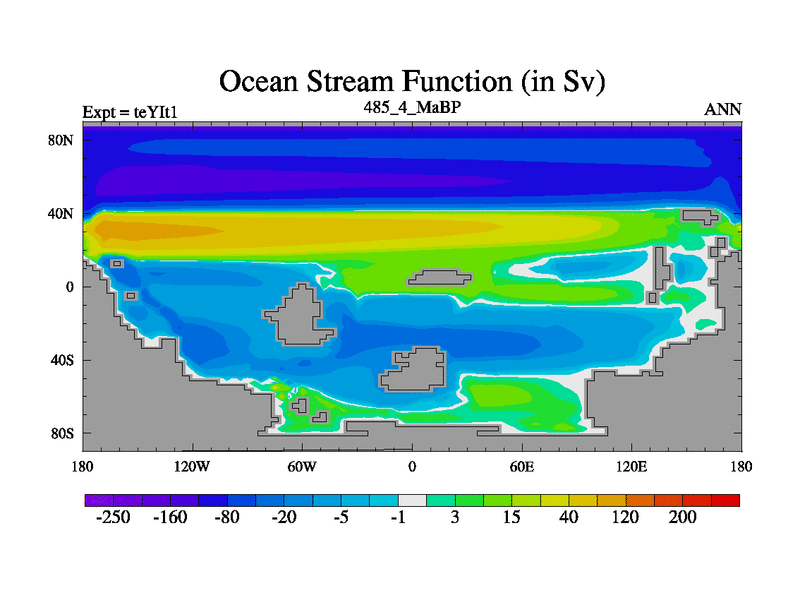 This is the 485.4 Ma simulation using the Scotese palaeogeographies and revised CCN etc. Now includes ocean biogeochemistry