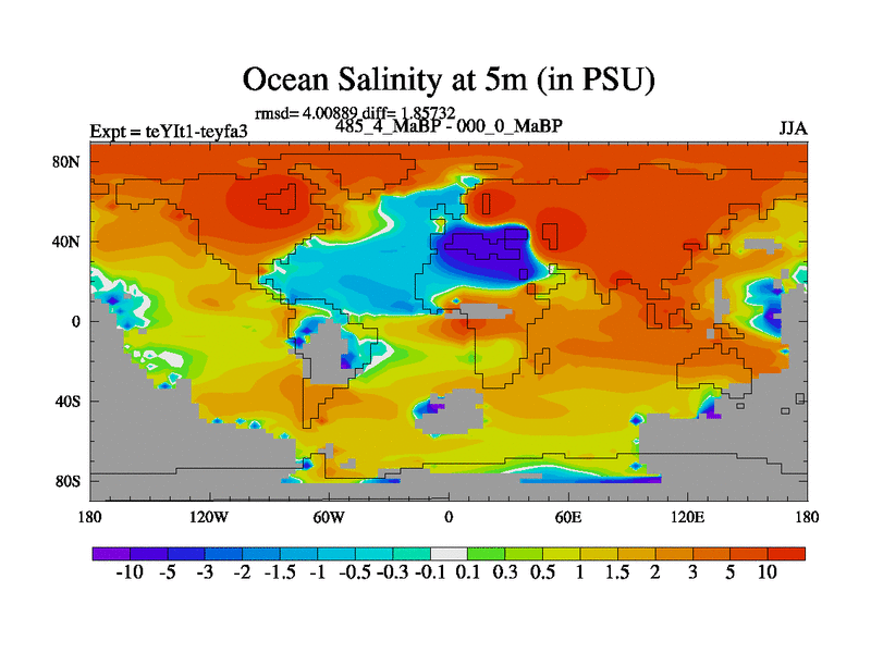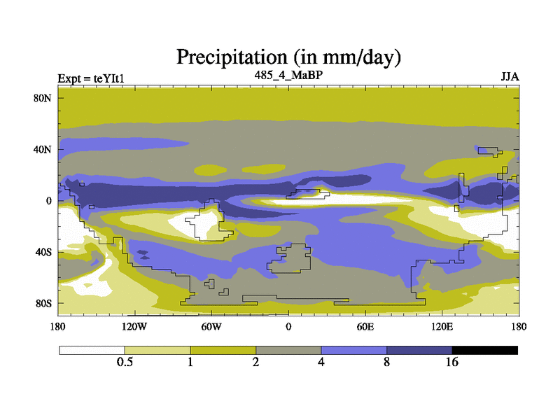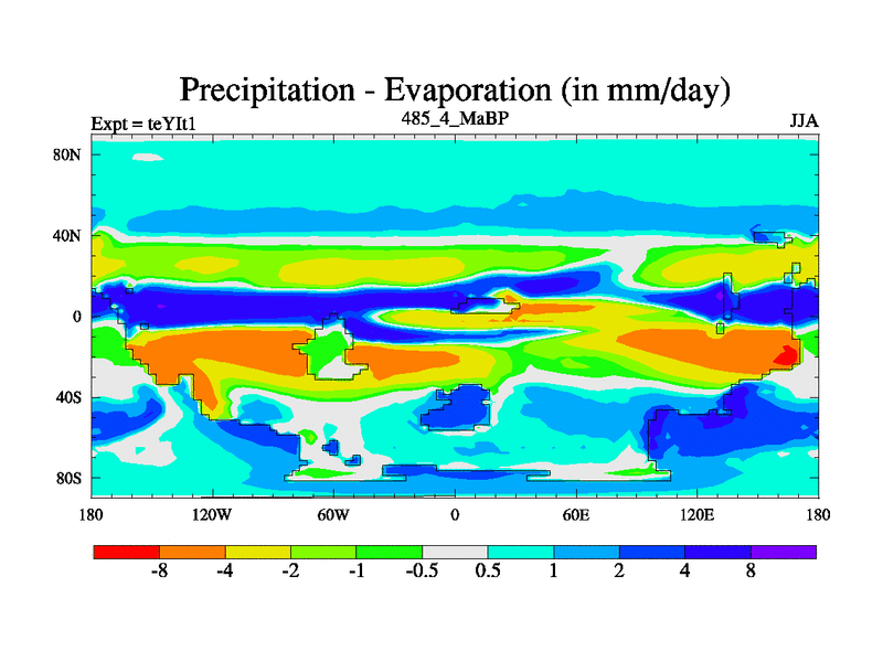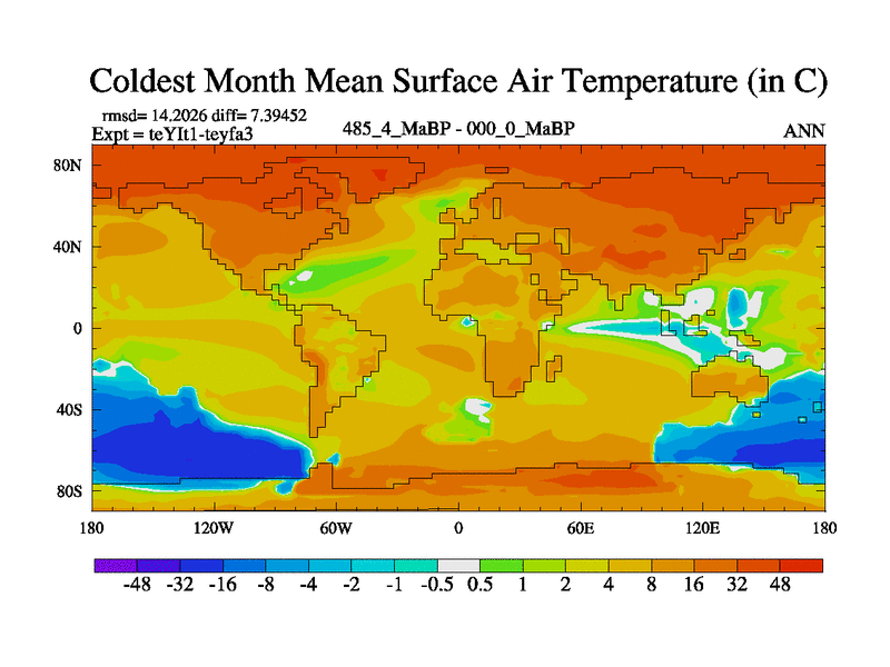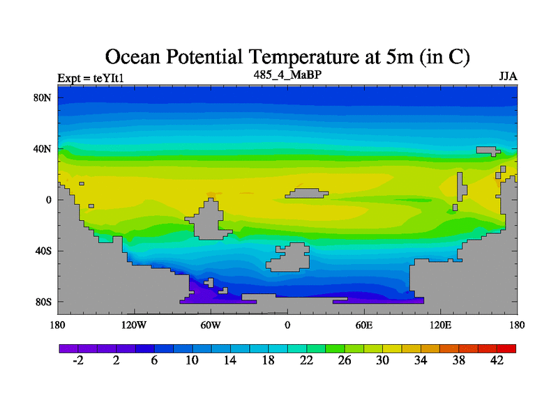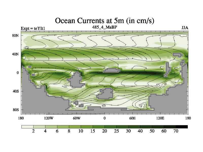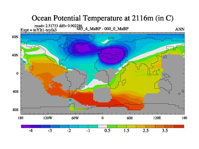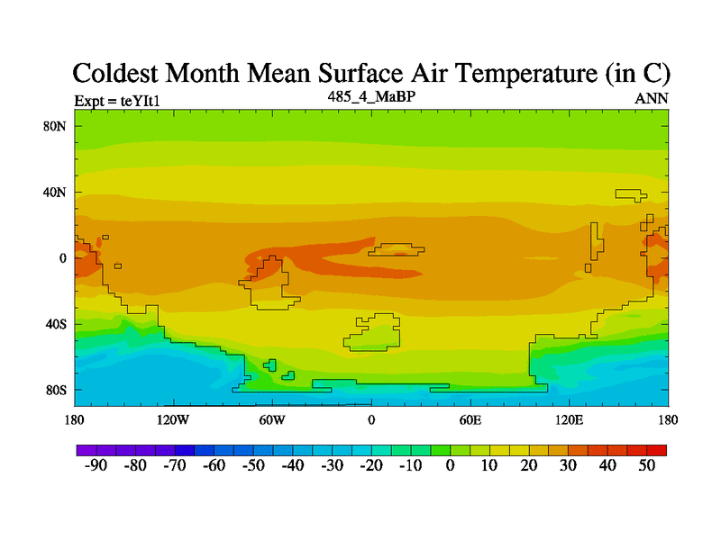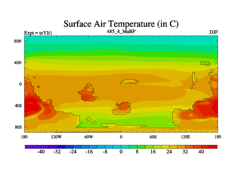 This is the 485.4 Ma simulation using the Scotese palaeogeographies and revised CCN etc. Now includes ocean biogeochemistry
