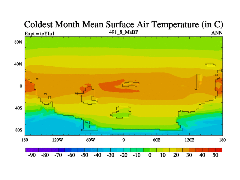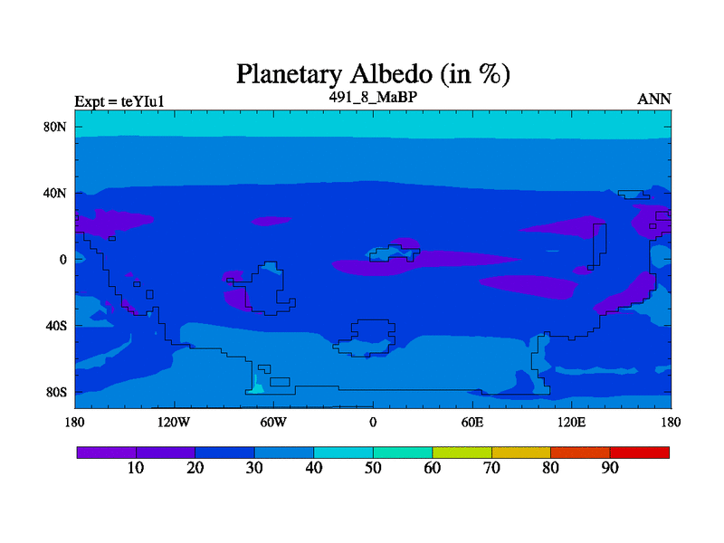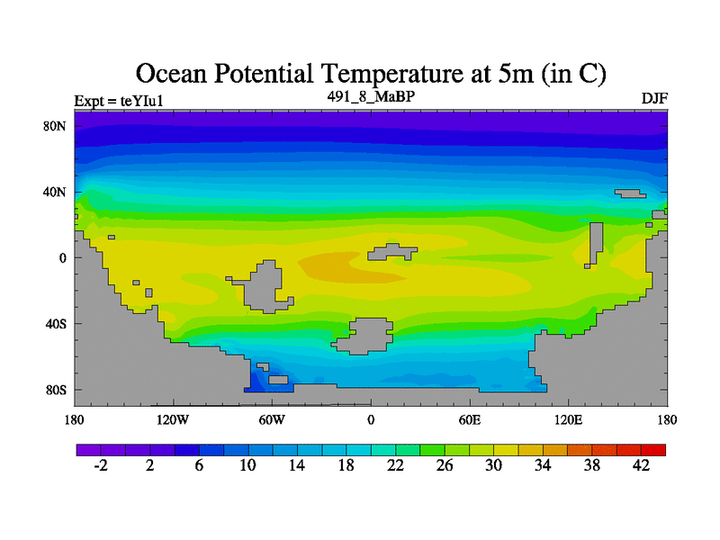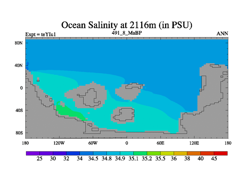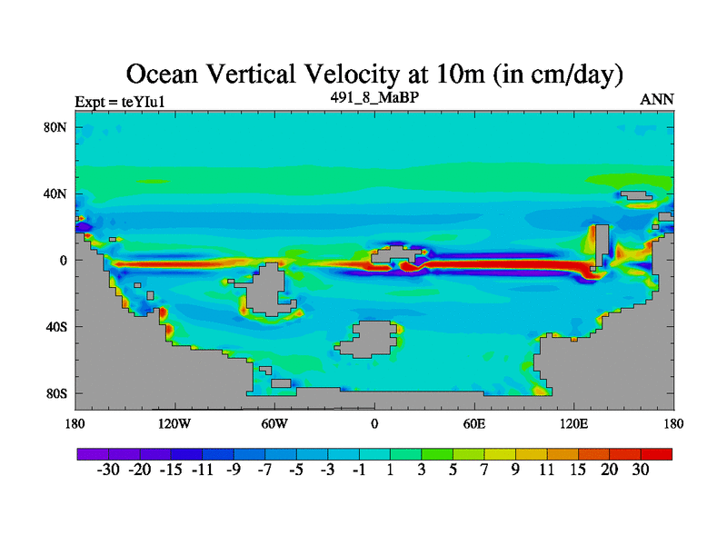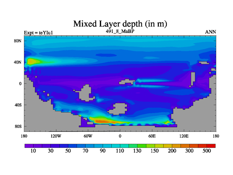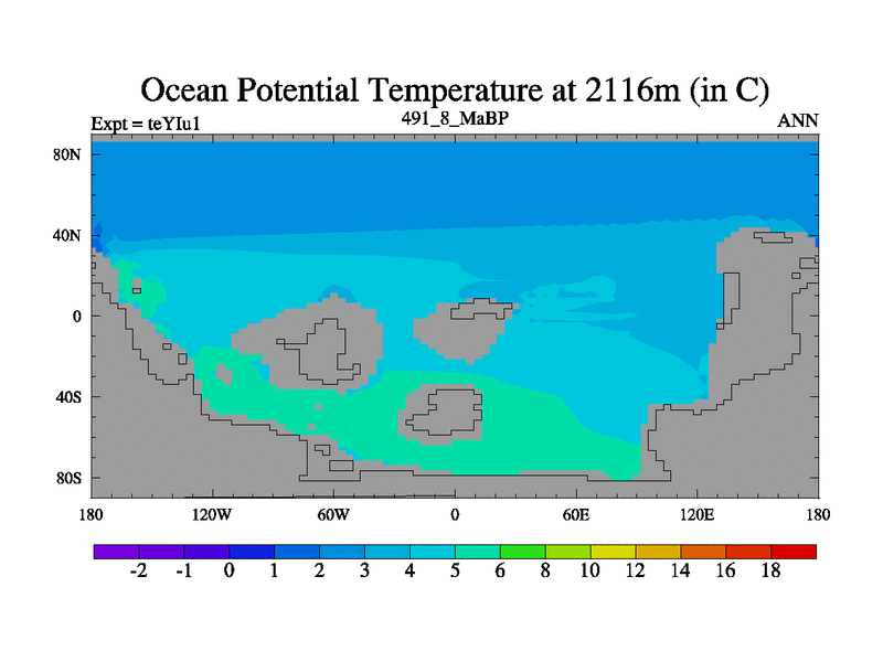 This is the 491.8 Ma simulation using the Scotese palaeogeographies and revised CCN etc. Now includes ocean biogeochemistry