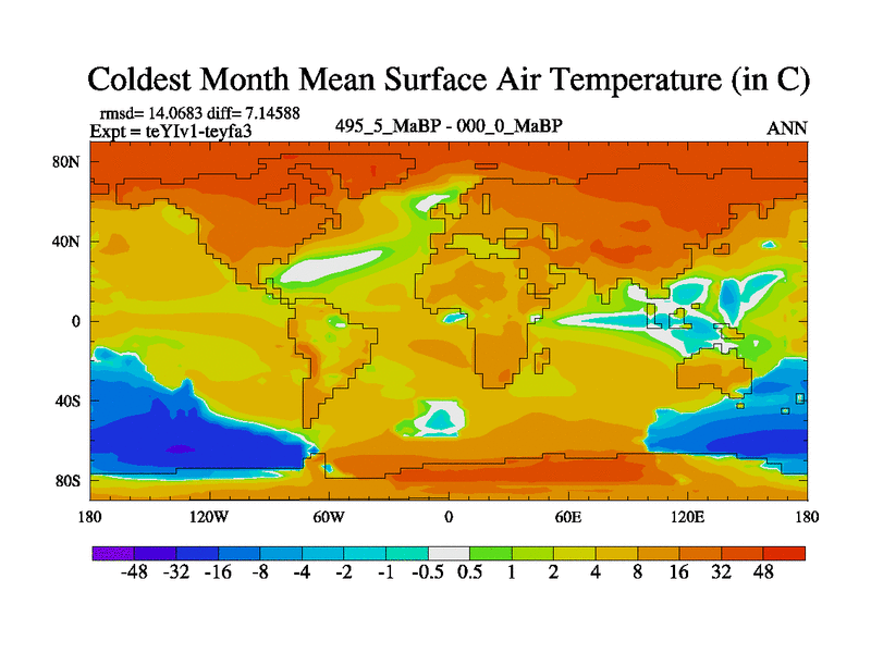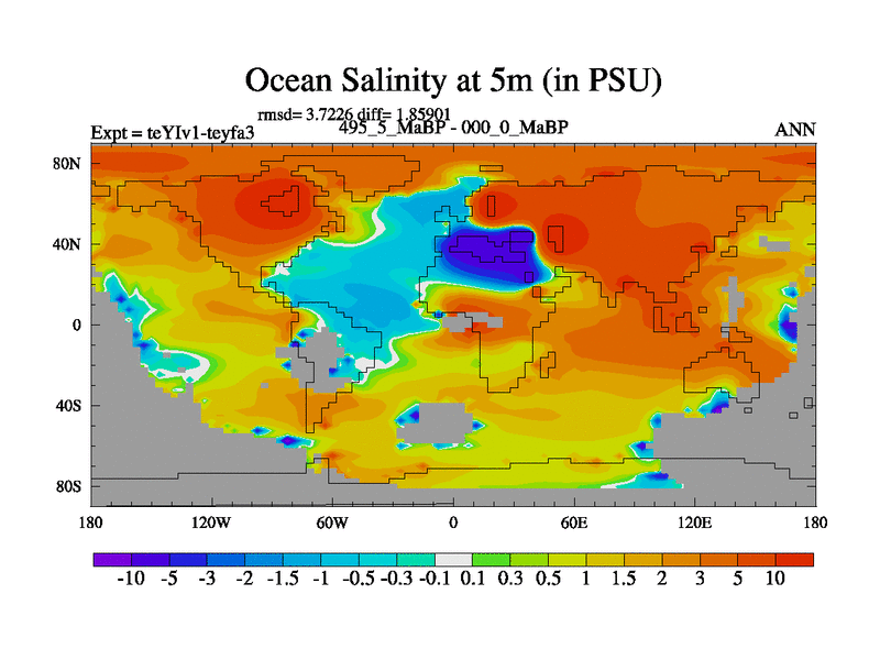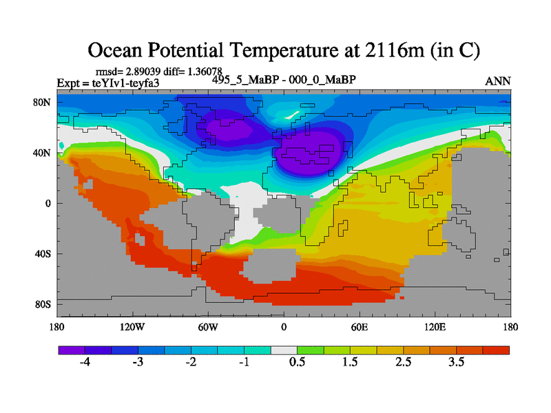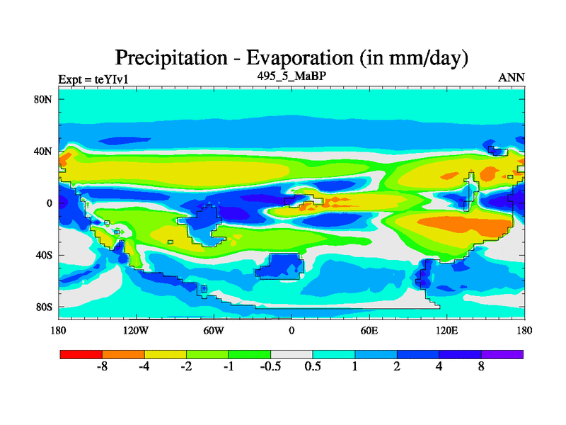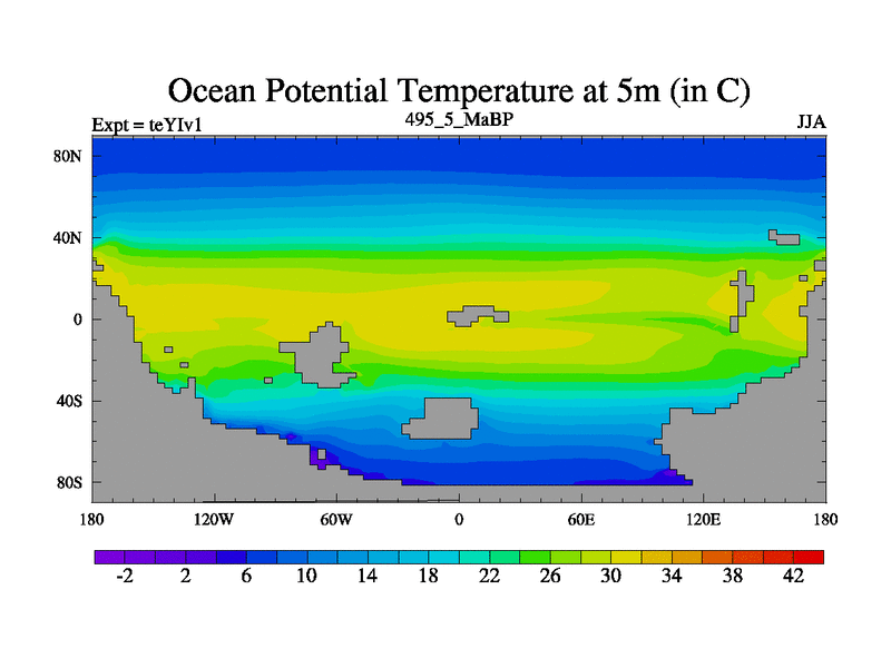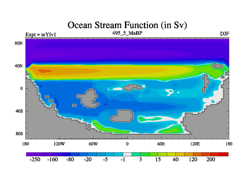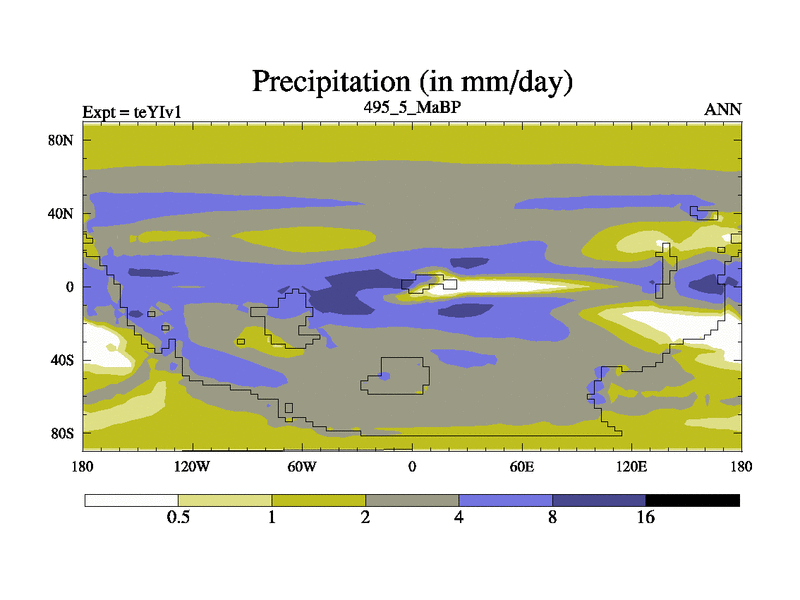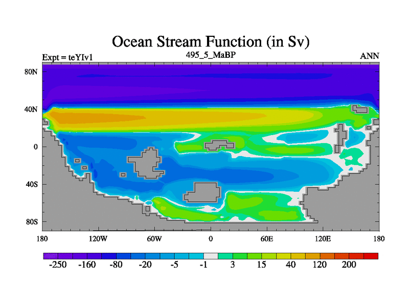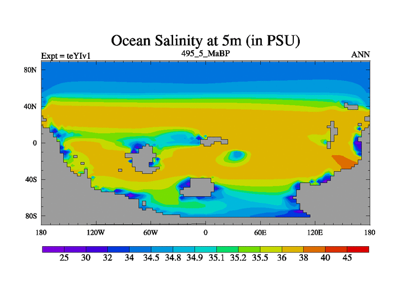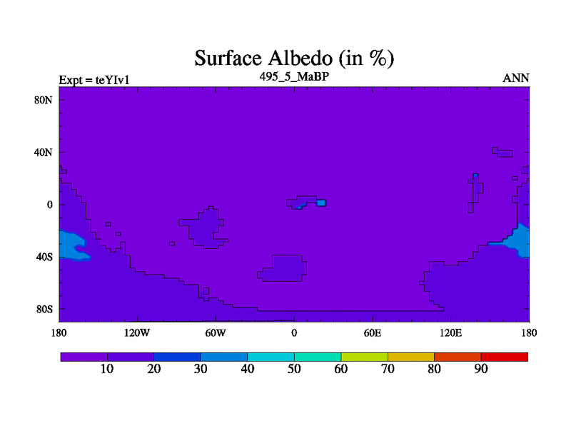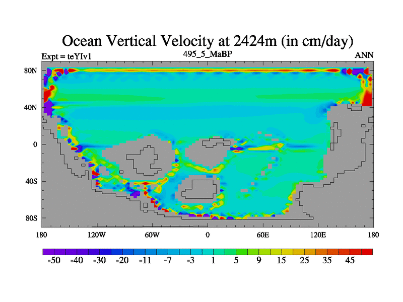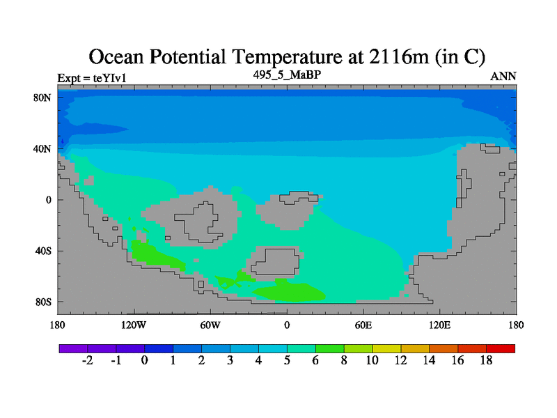 This is the 495.5 Ma simulation using the Scotese palaeogeographies and revised CCN etc. Now includes ocean biogeochemistry