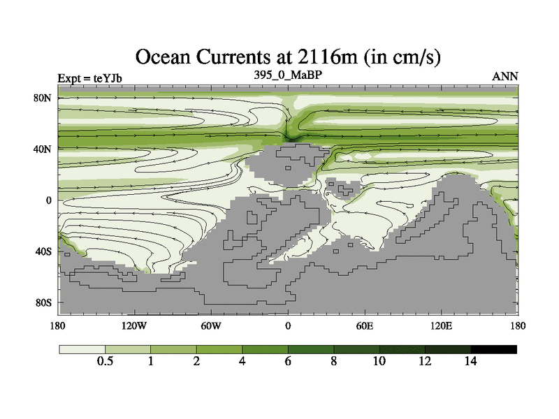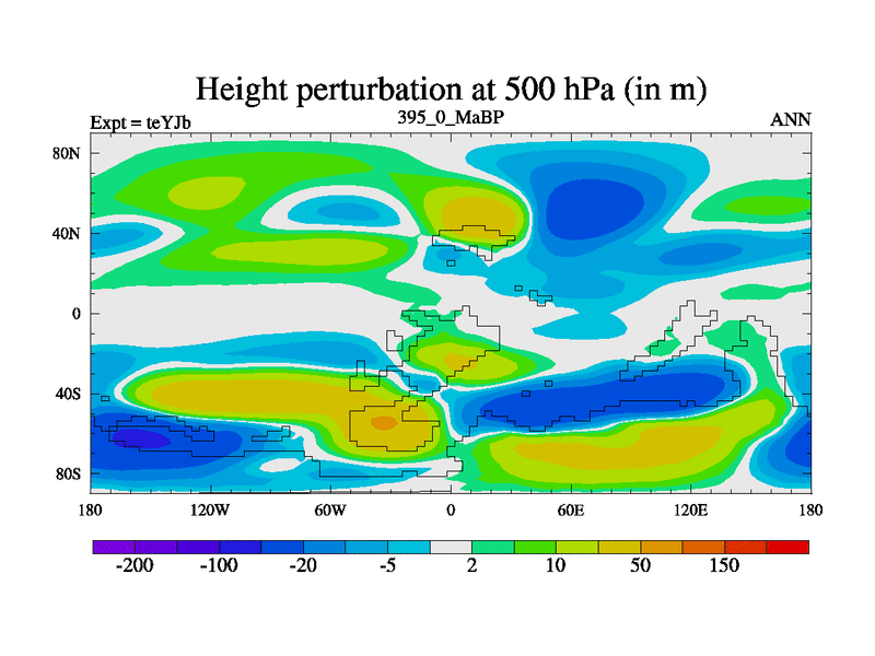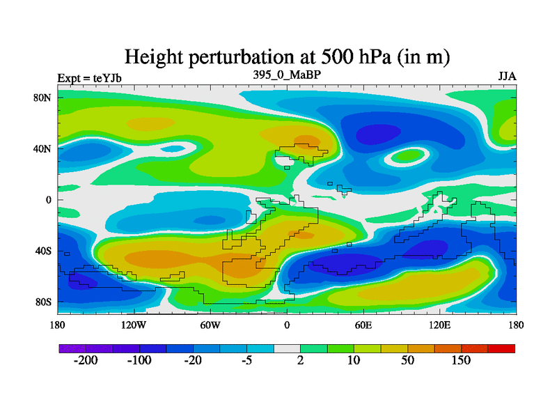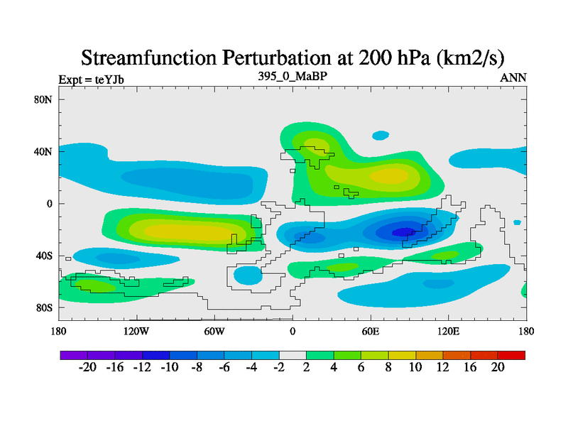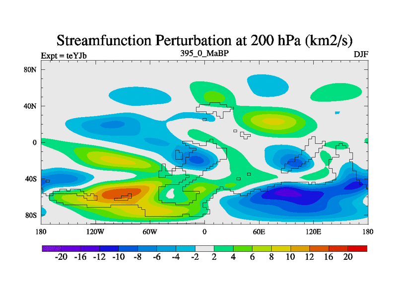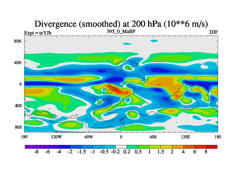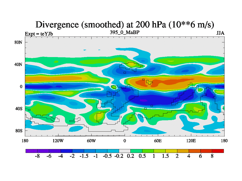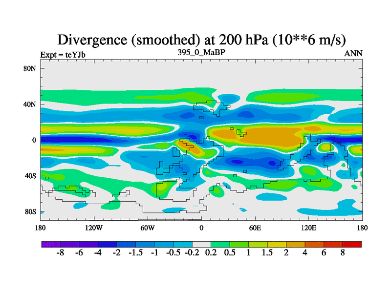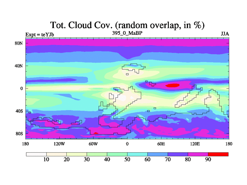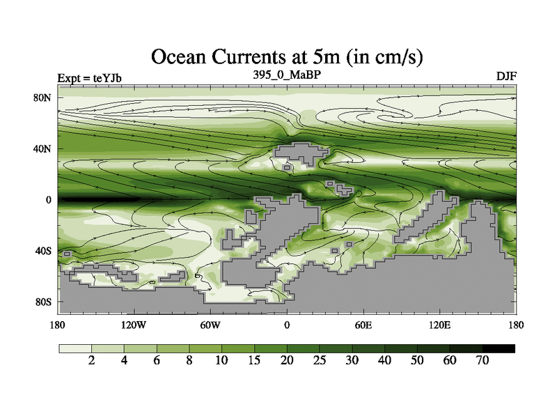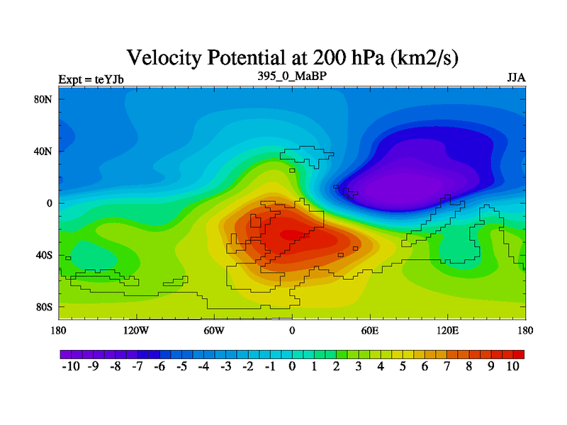 This is the 395.0 Ma simulation using the Scotese palaeogeographies and revised CCN etc. As teyfa3 but corrected orography problem over Antartartica. Now includes ocean biogeochemistry