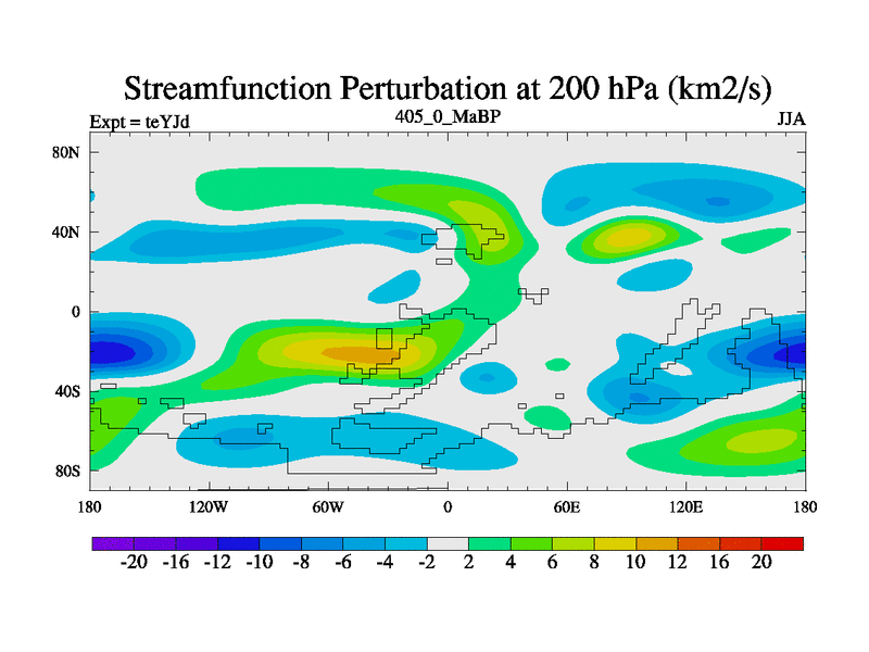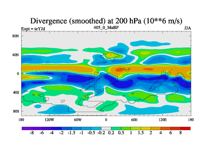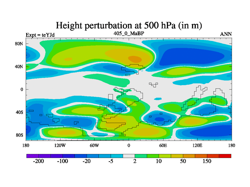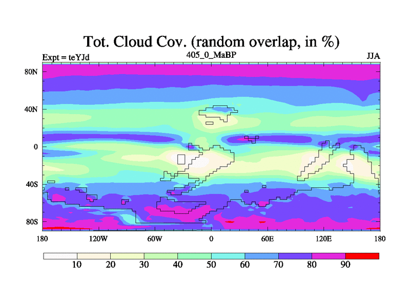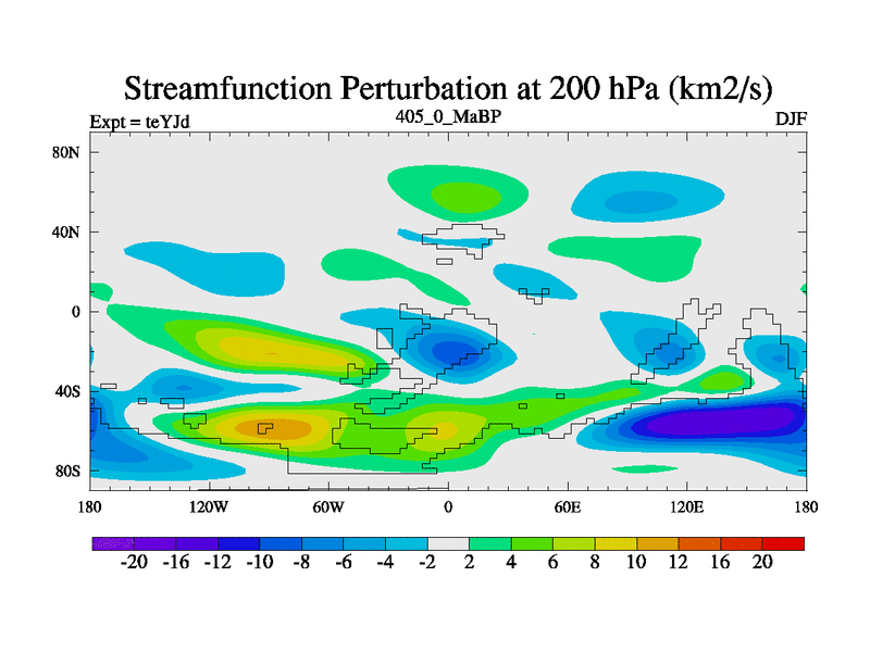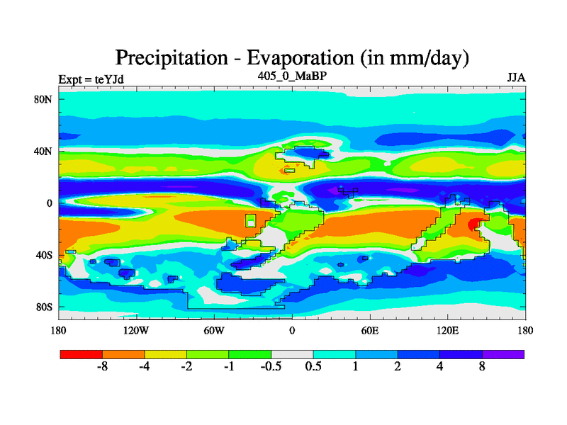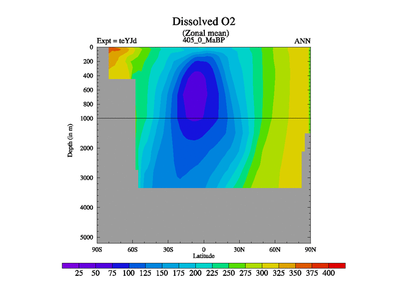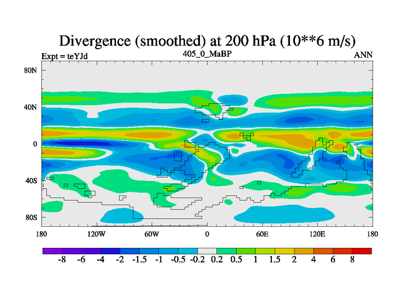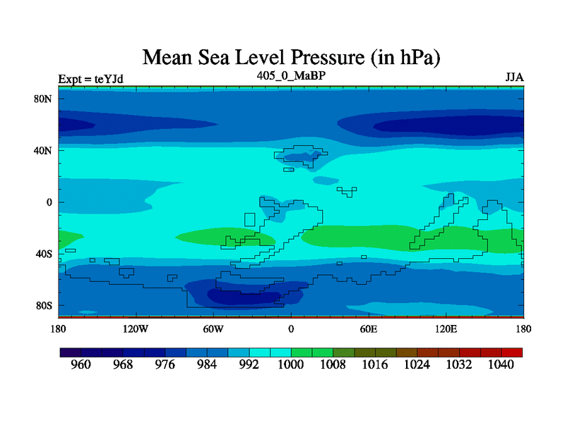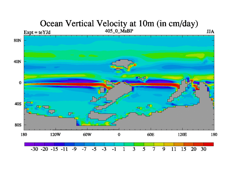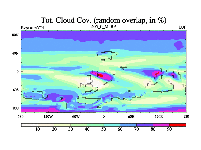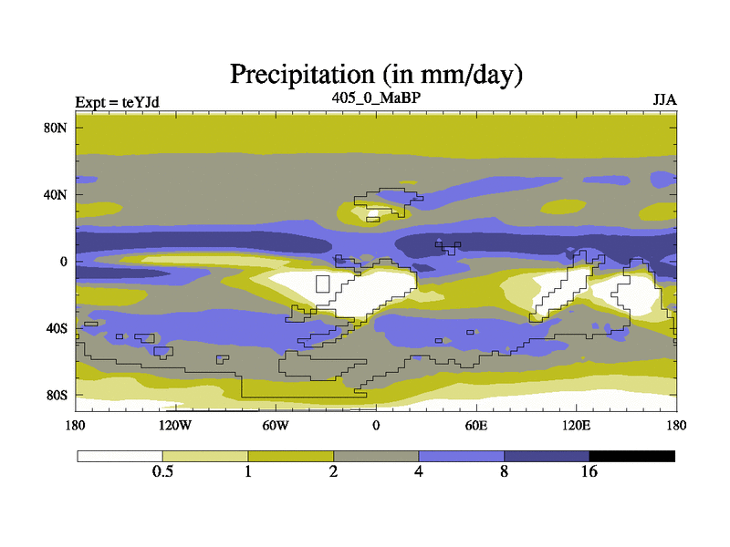 This is the 405.0 Ma simulation using the Scotese palaeogeographies and revised CCN etc. As teyfa3 but corrected orography problem over Antartartica. Now includes ocean biogeochemistry
